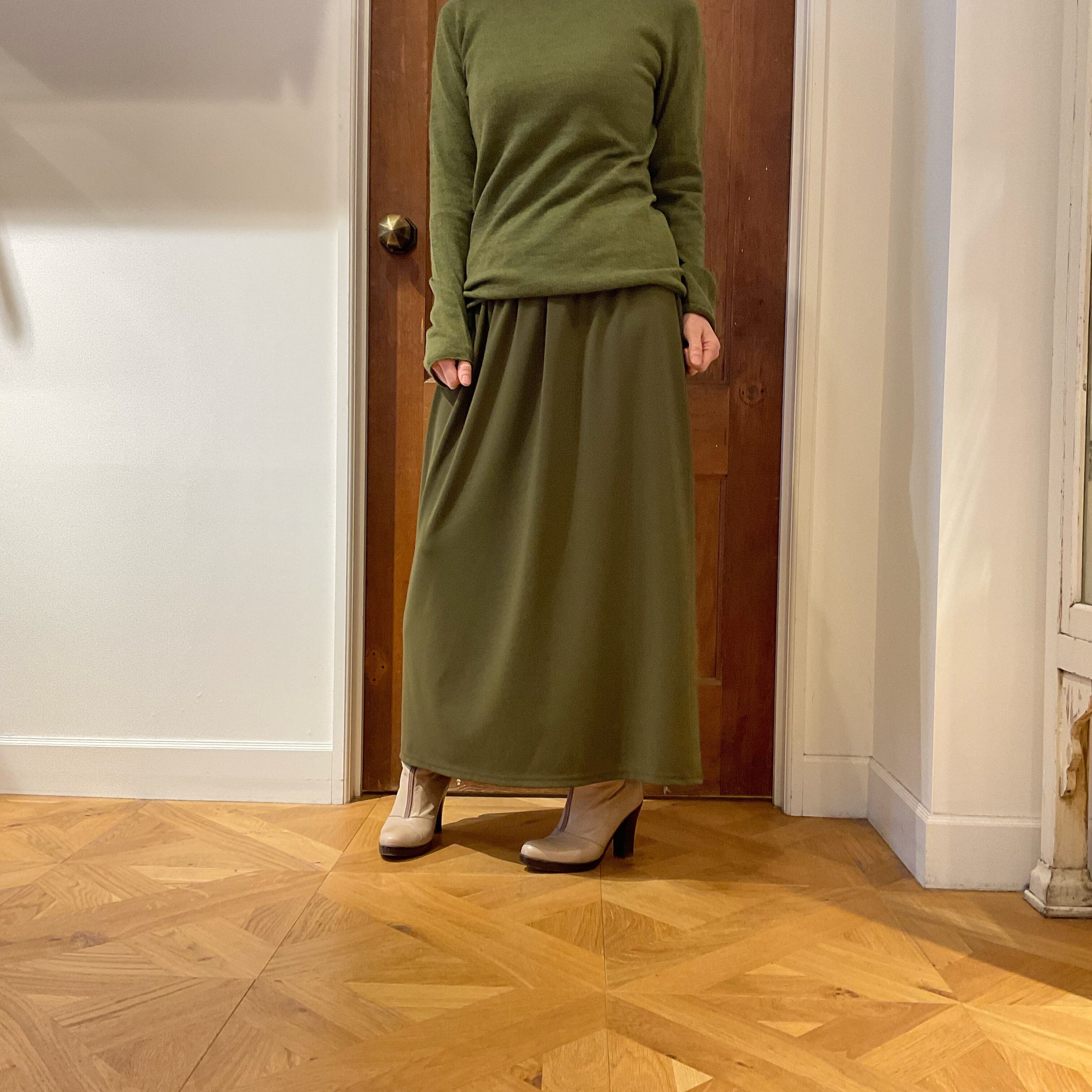 土台のスカートは素材感しっかり。一枚で履いても透けないし、体の線も拾いません