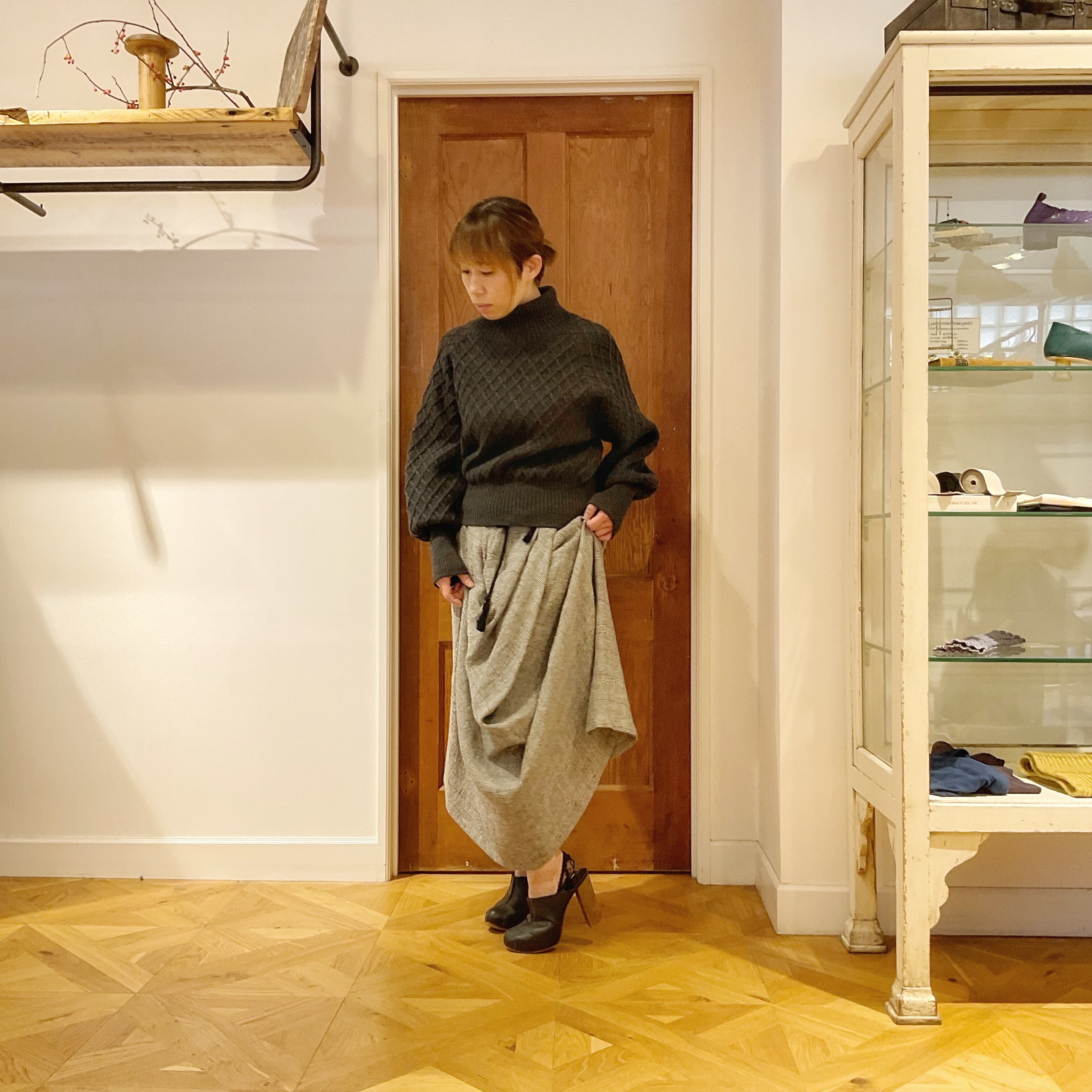 「普遍的な女性の気品を導きだすデイリーウエア」をコンセプトに掲げる京都ブランドSi:m(シーム)。生地の見た目の華やかさや特徴あるデザインというよりは、実際に袖を通した時の素材感や収まり感、体が動いた時にどう見えるかを大切にしています。デザイナーさんは、展示会に行くと、完璧な首周りの幅やプリーツやタックの入れ方によるボリュームの収まり具合をいかに研究したかなどを、いつも一生懸命熱弁してくれますw