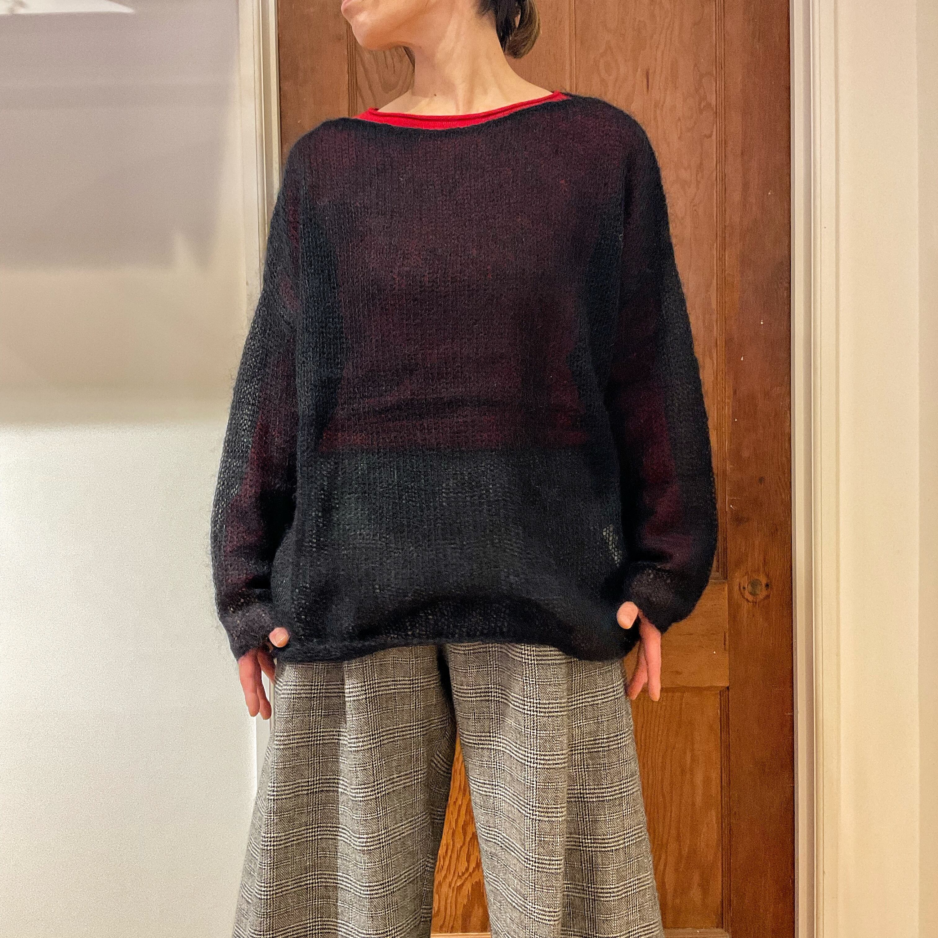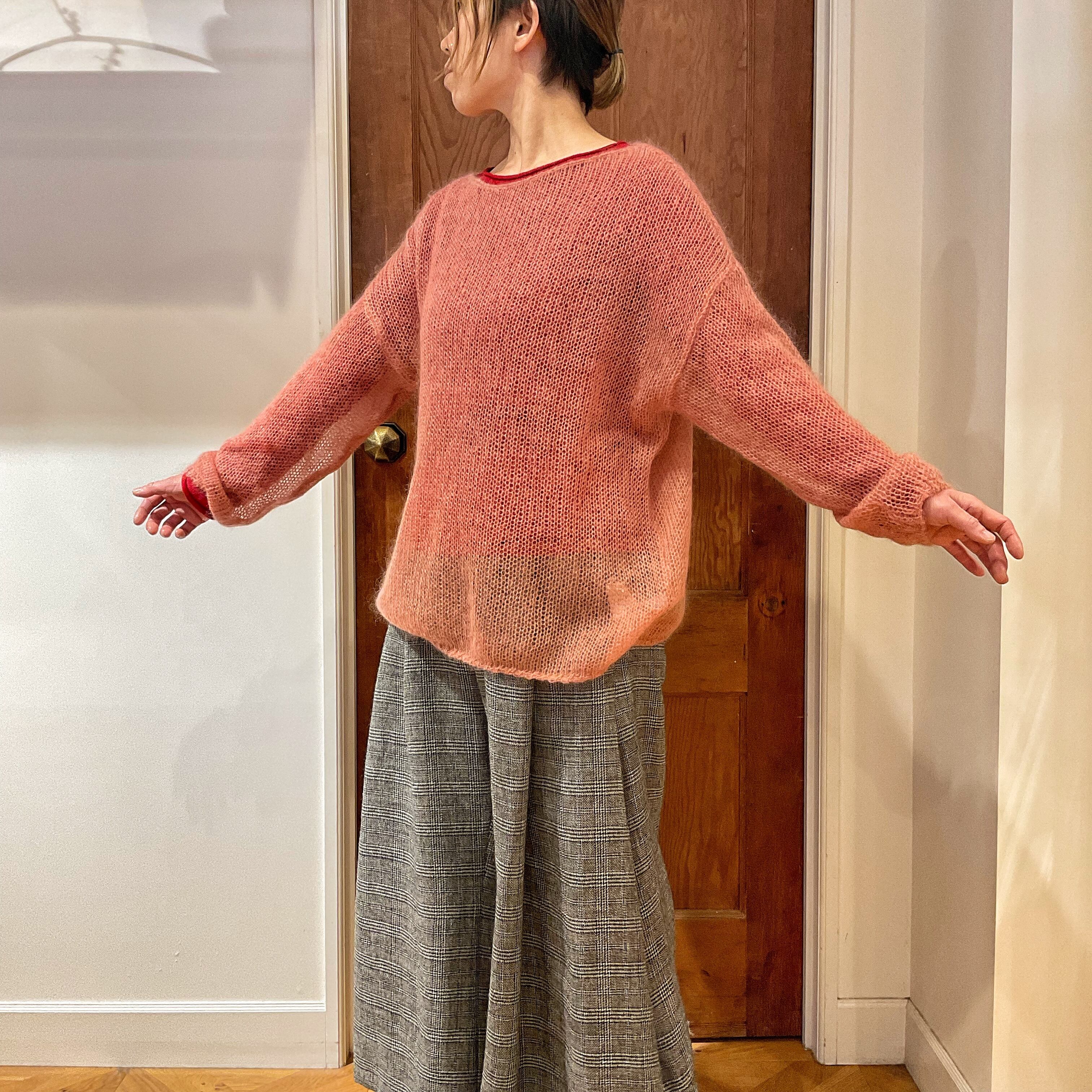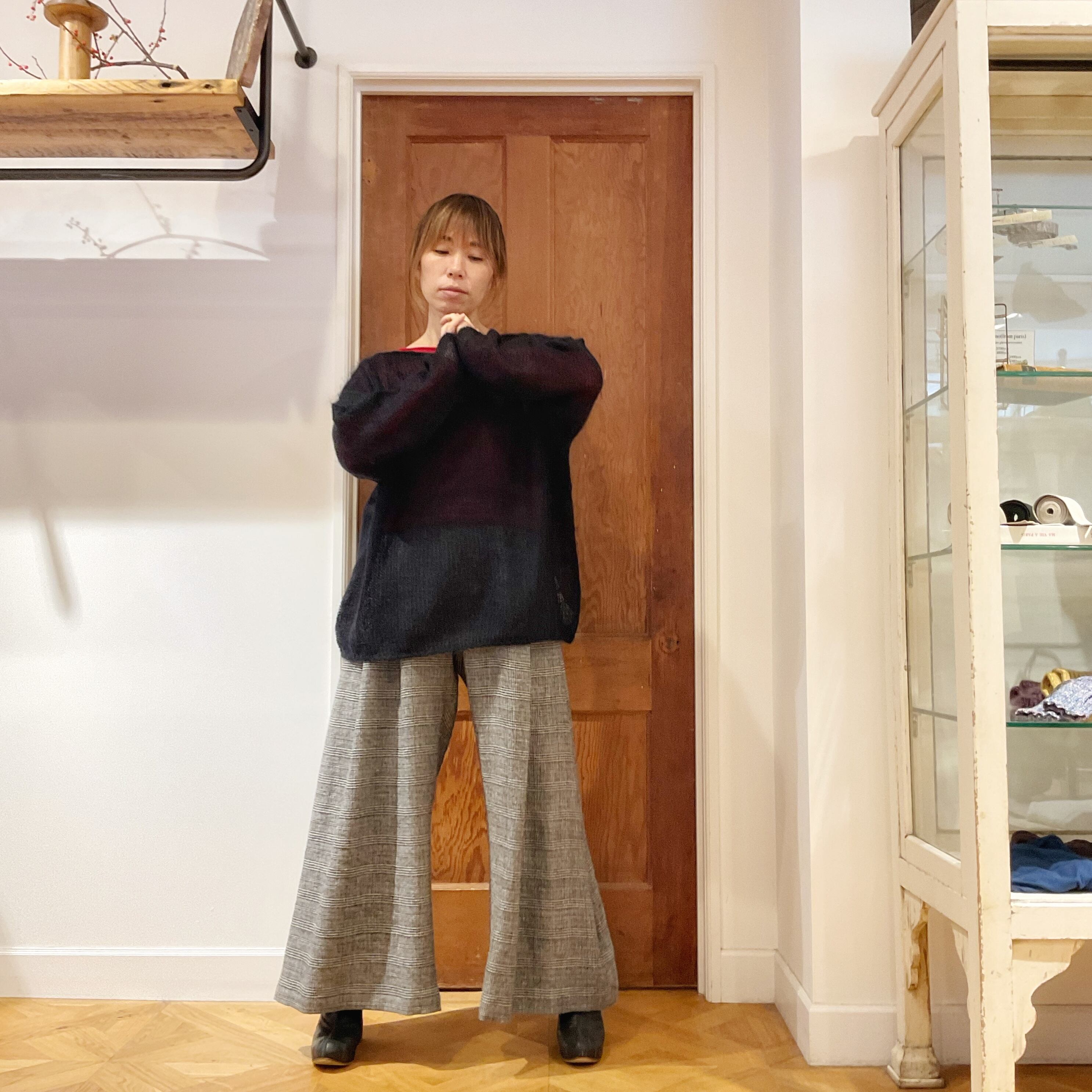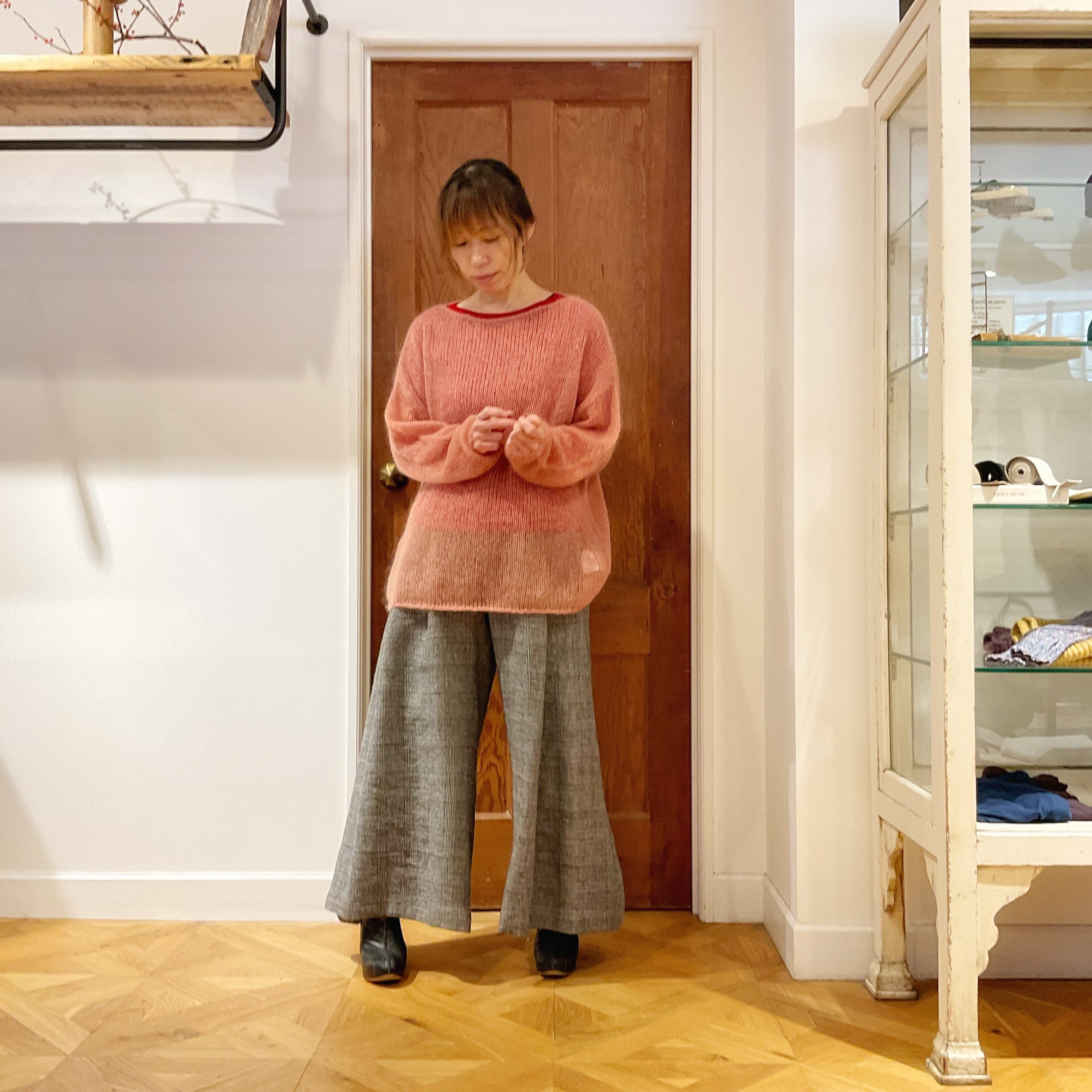 シアー感があってニットもとても軽い雰囲気なので、ワイドパンツでも