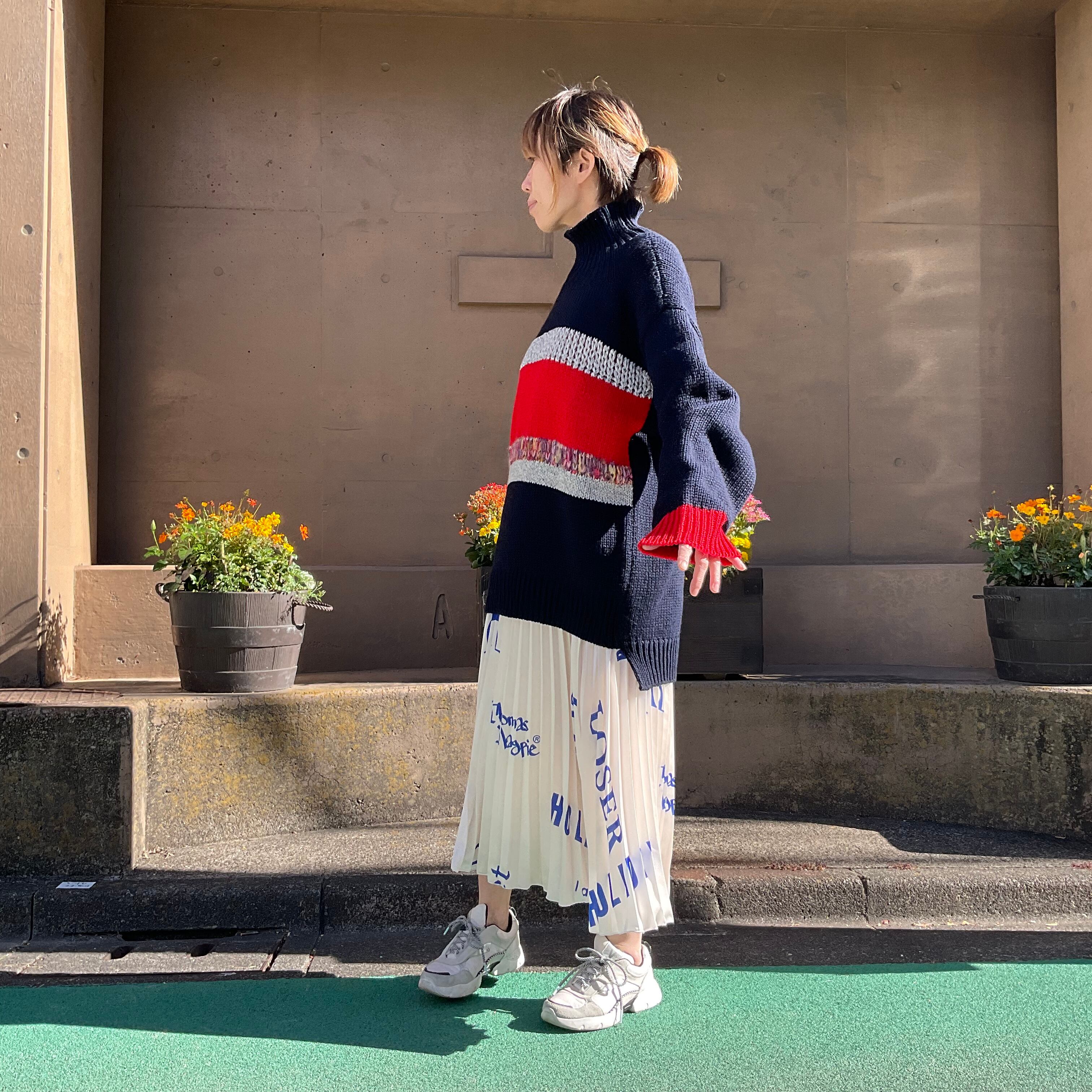ニットにボリュームがあるので、足元は華奢なのより、少しぼてっとしたモノが丁度イイ