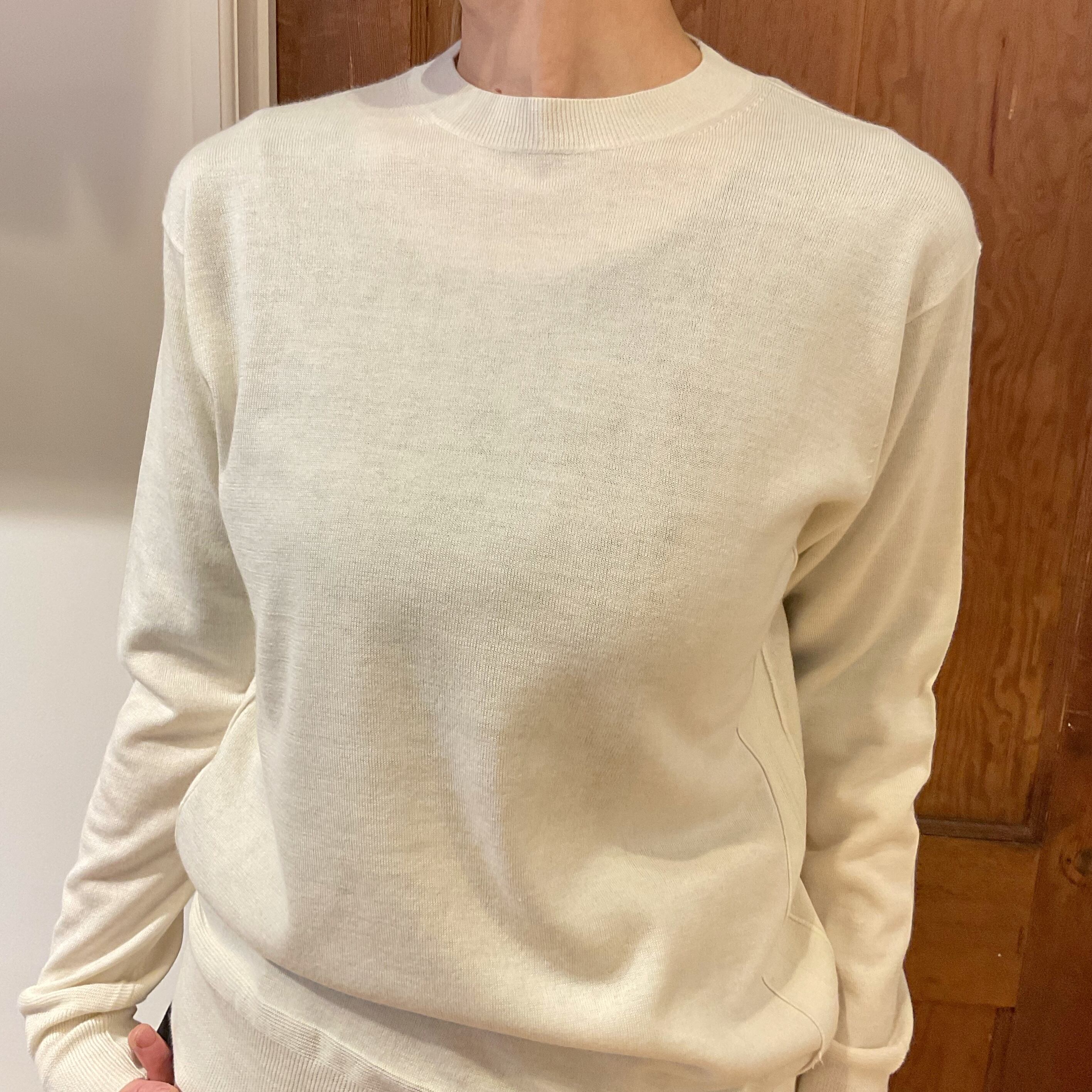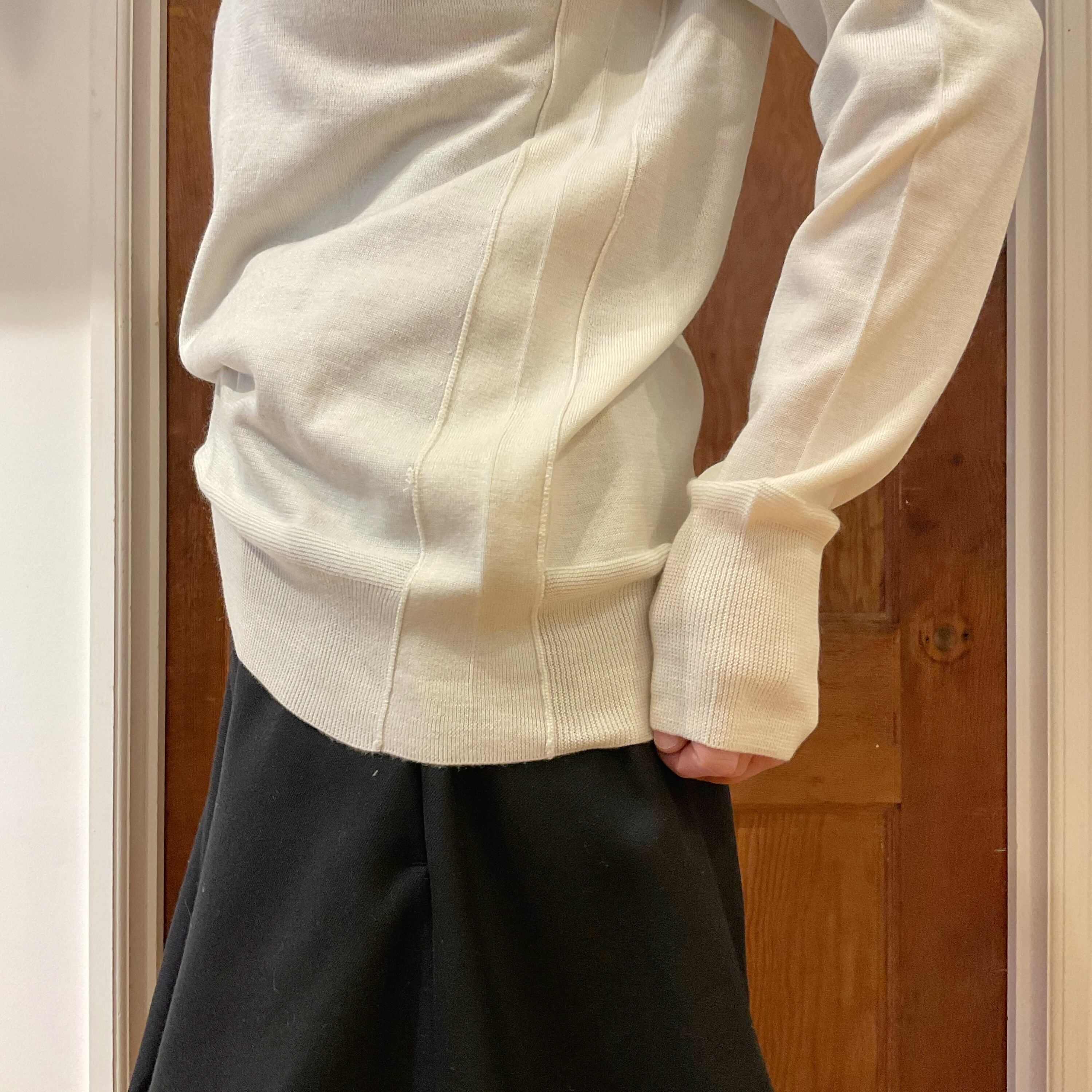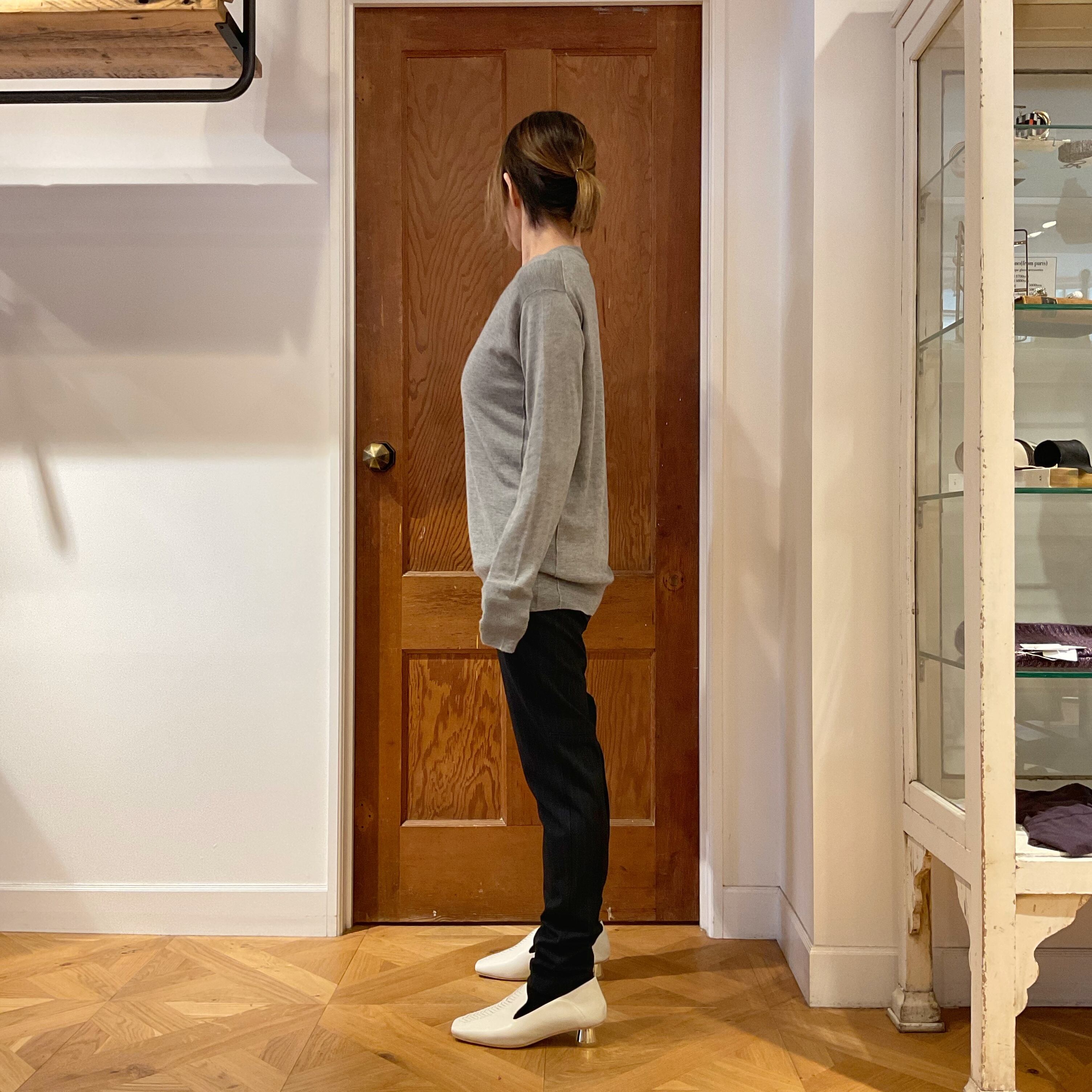 ベーシックなラウンドネックのセーターですが、両脇のリブアクセントや着用した際の分量感など、ディテールにKOFTAらしさを盛りまれてますよ
