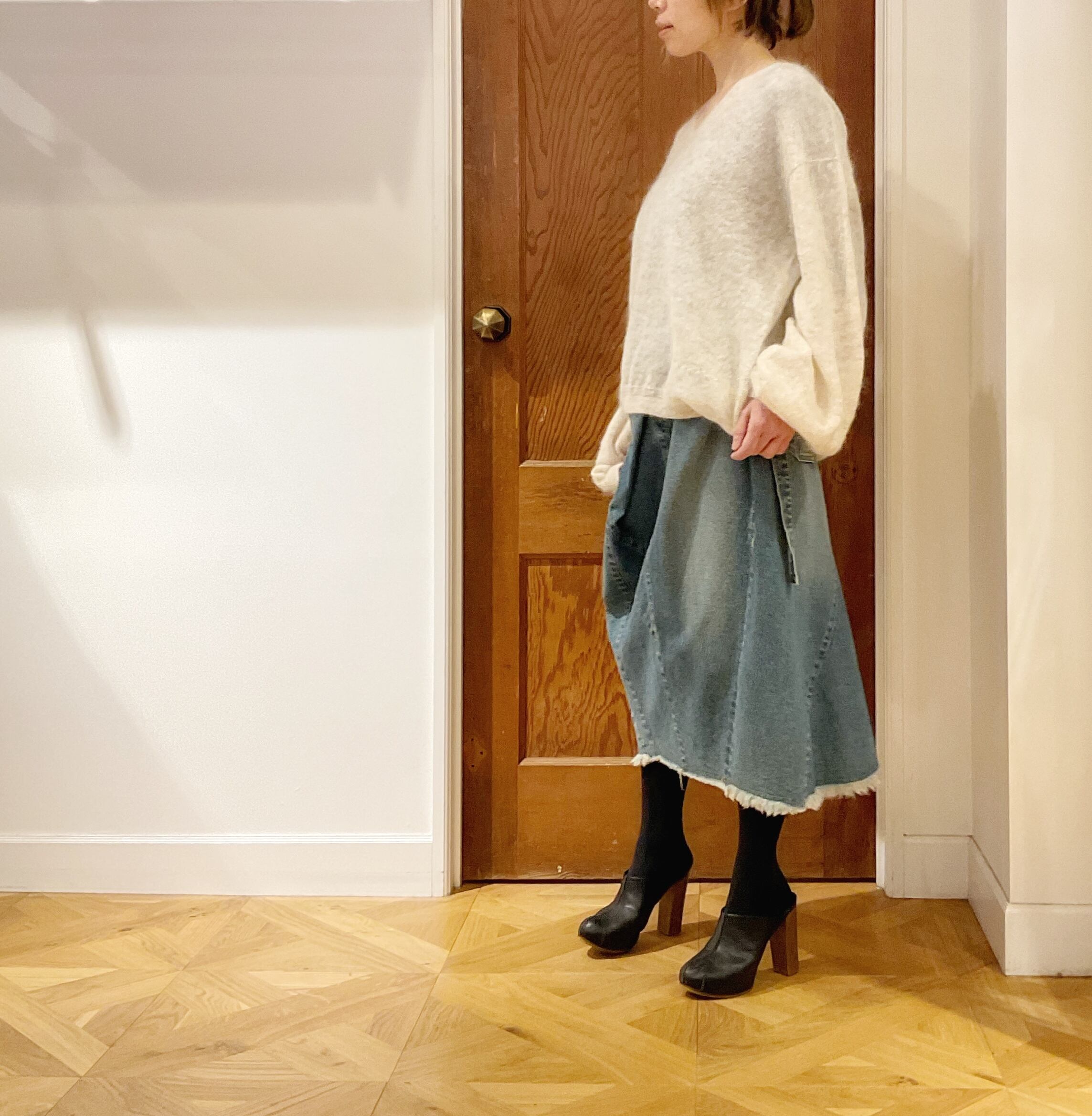 冬はブラウンやチャコール等の暖かみのあるトーンで合わせて、春先はデニムで軽快な雰囲気で楽しむのも。