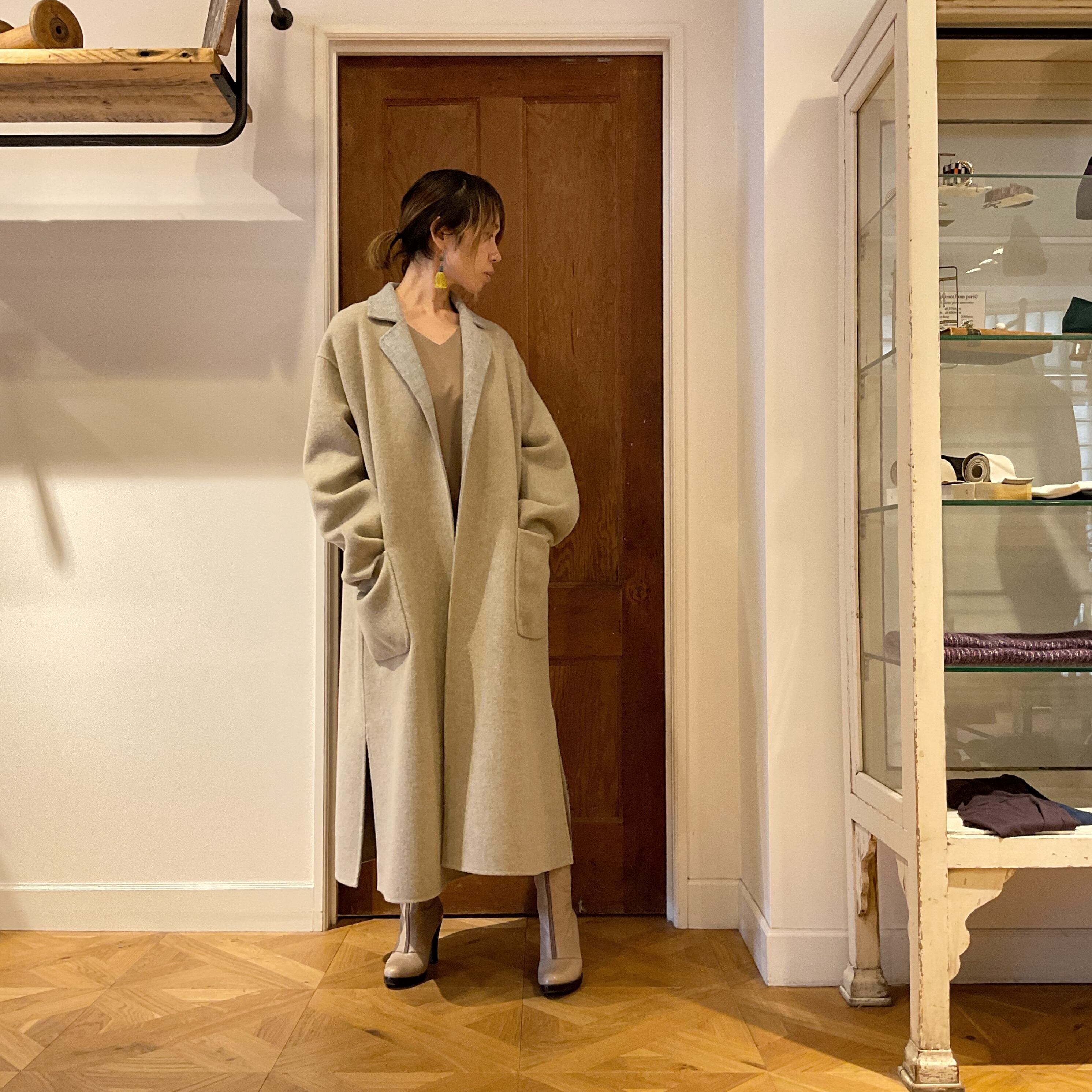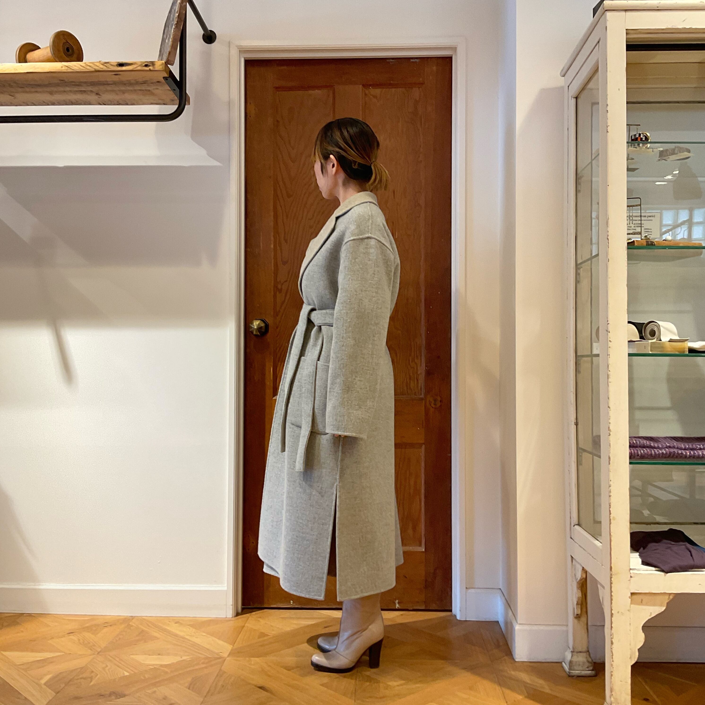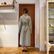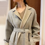ベージュxグレーのウール100%のリバーシブルガウンコート