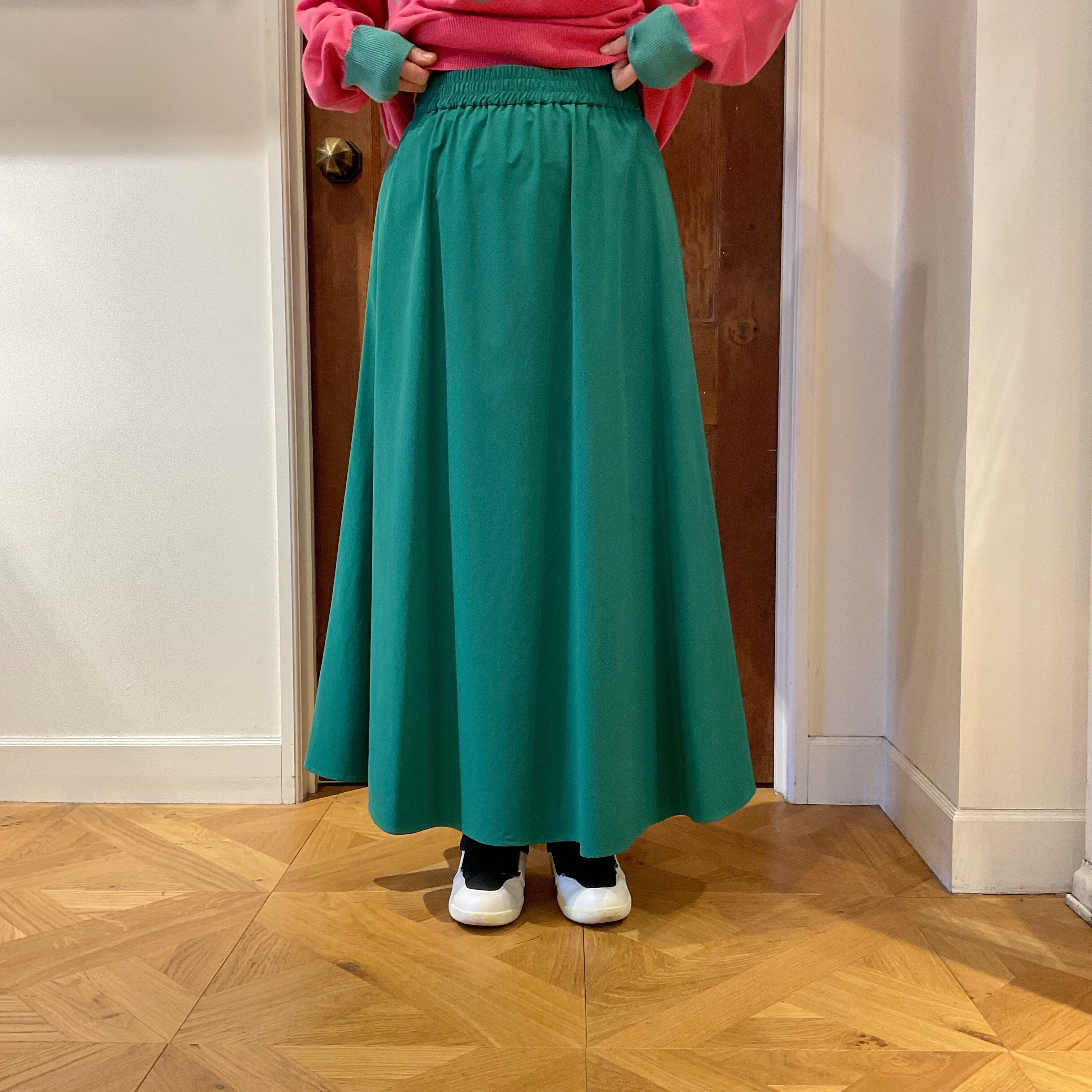 撥水加工が施された、ナイロンクロスのロングフレアスカート。