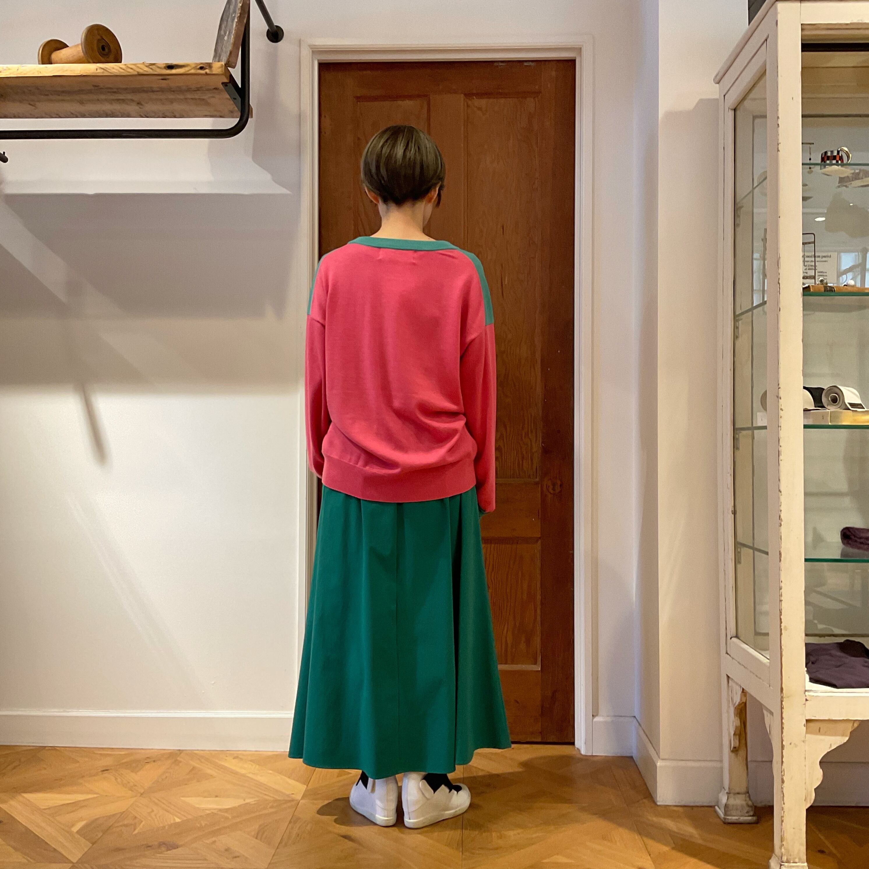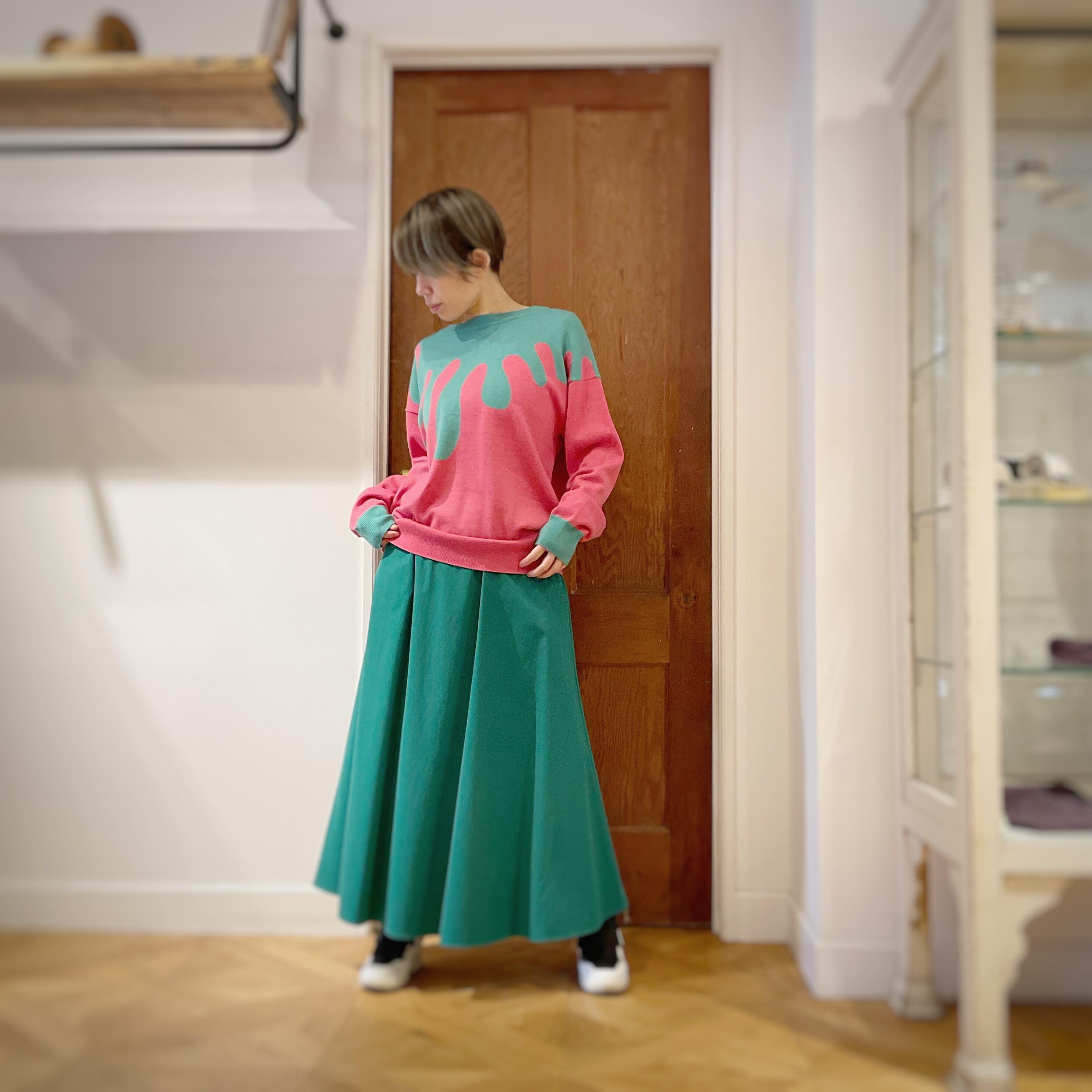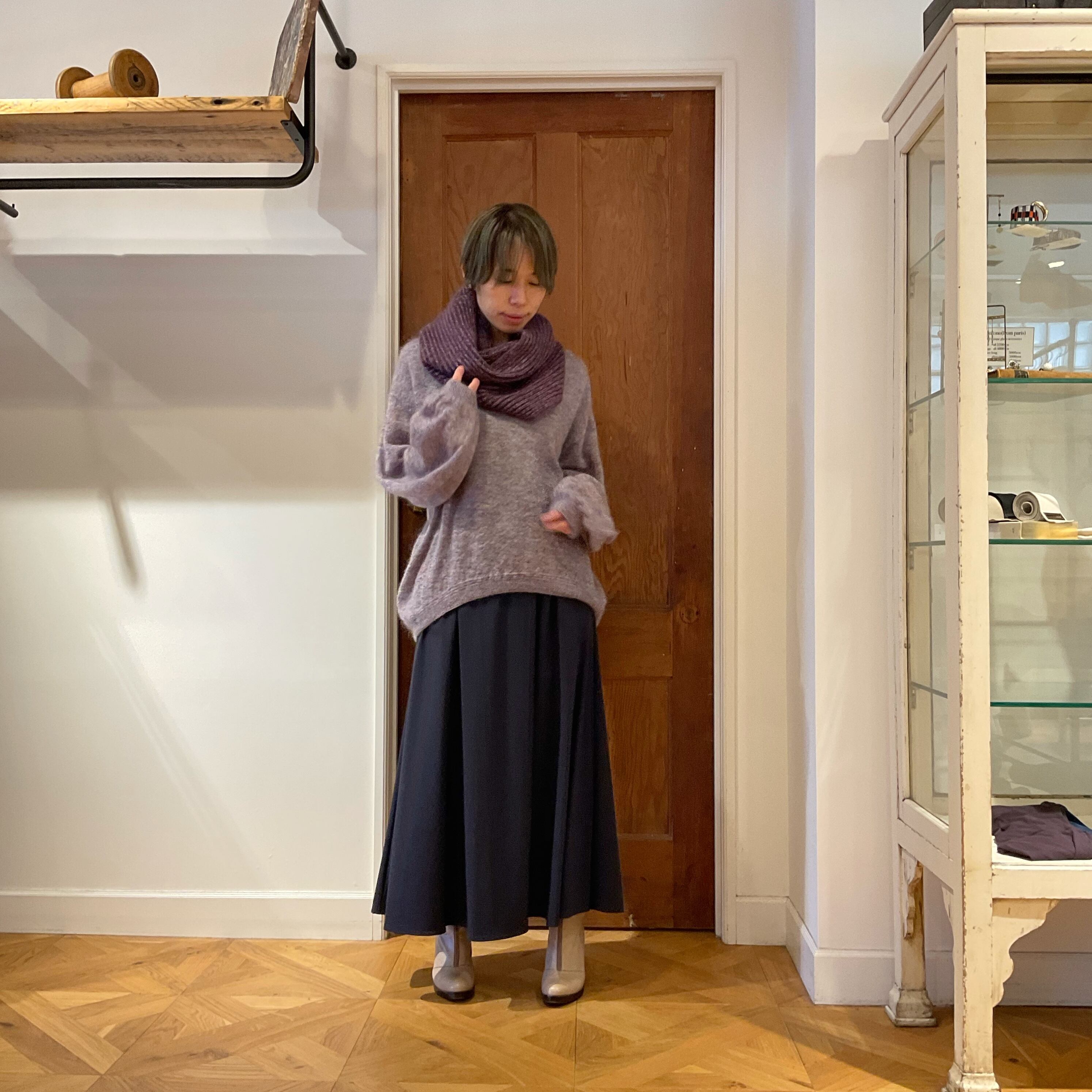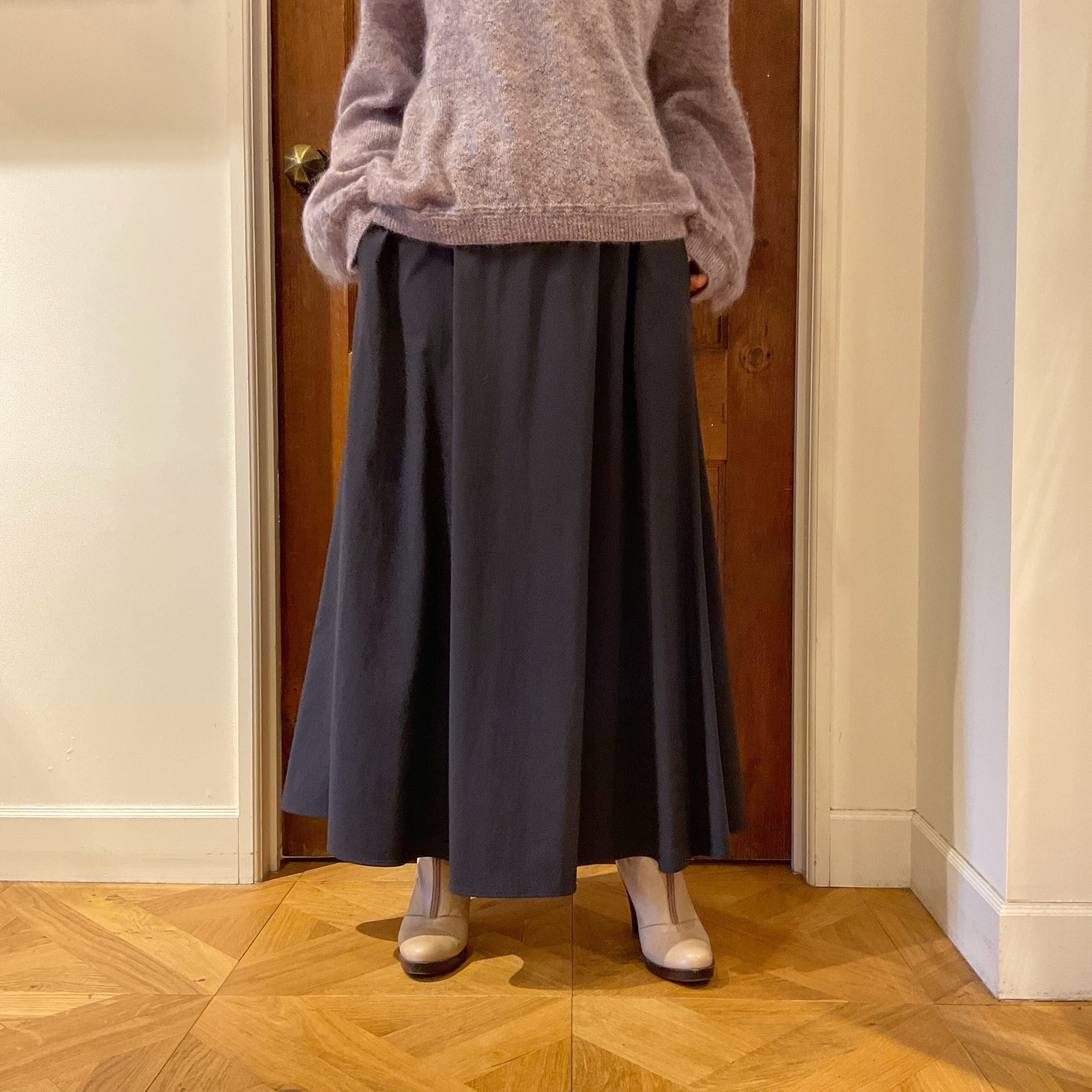 スカートの生地が綺麗めなので、カジュアルに着る時のスニーカーは余りボテッとした形より少しスッキリ綺麗めなスニーカーが良さそう