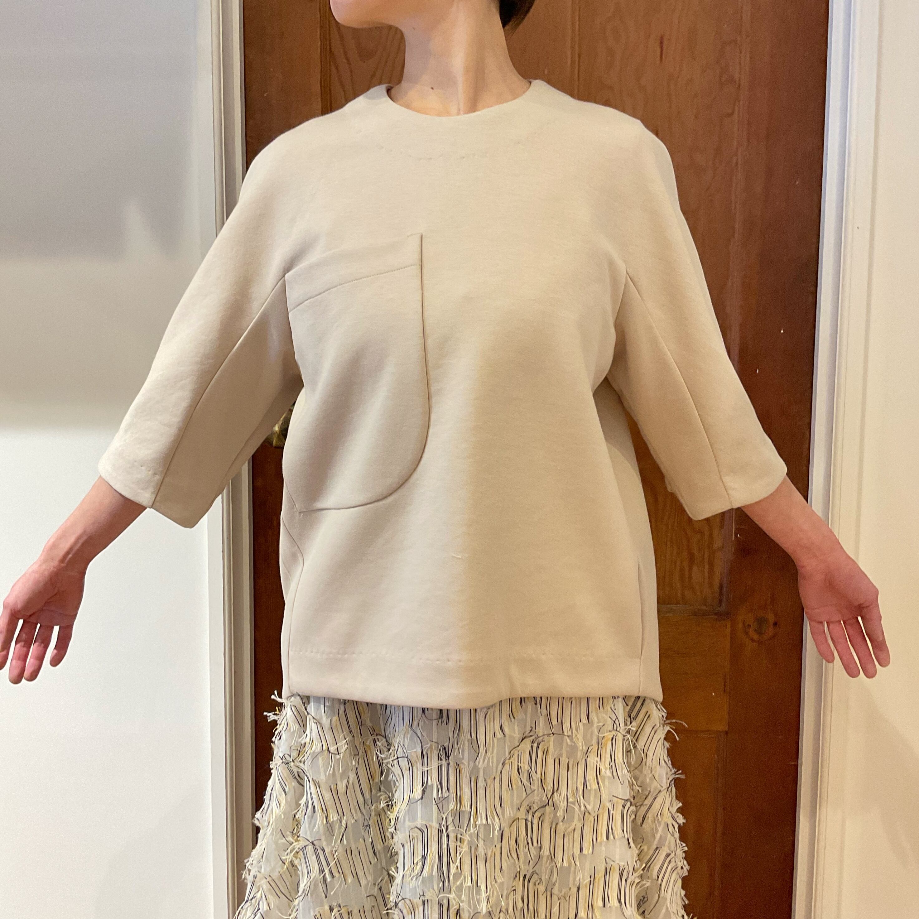生地は適度なボリュームとふくらみ、張り感、しなやかな伸縮性があるとてもバランスの取れたカットソー生地