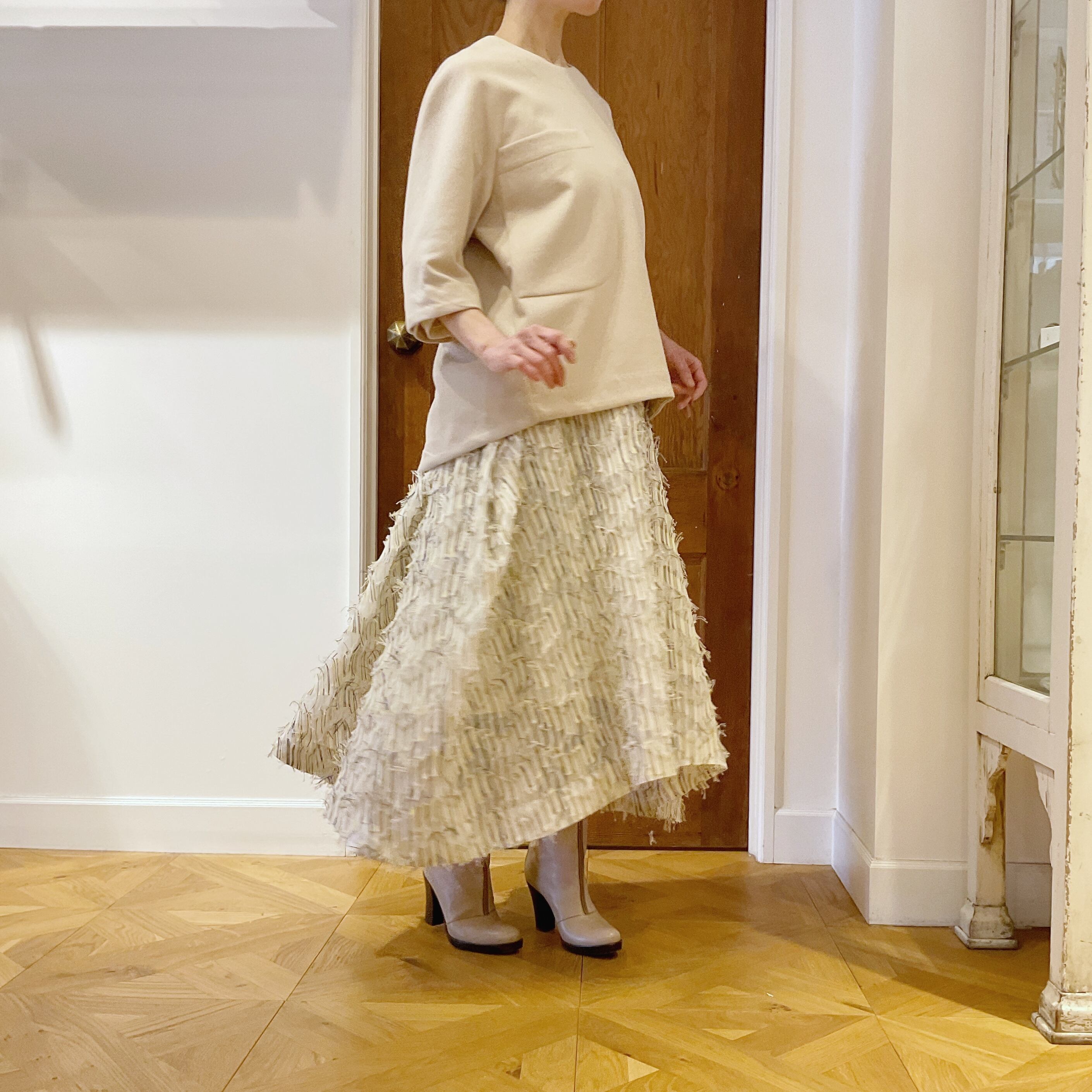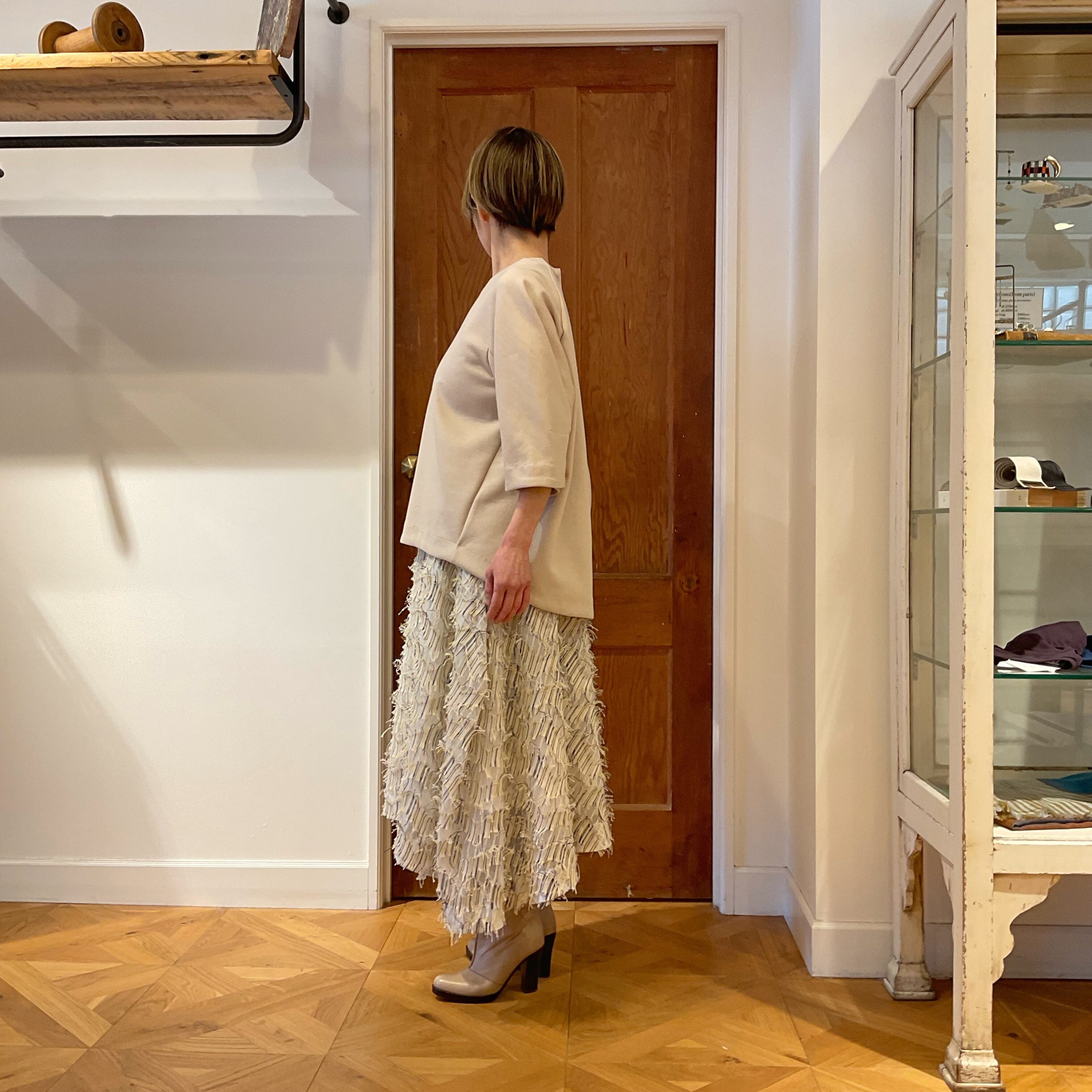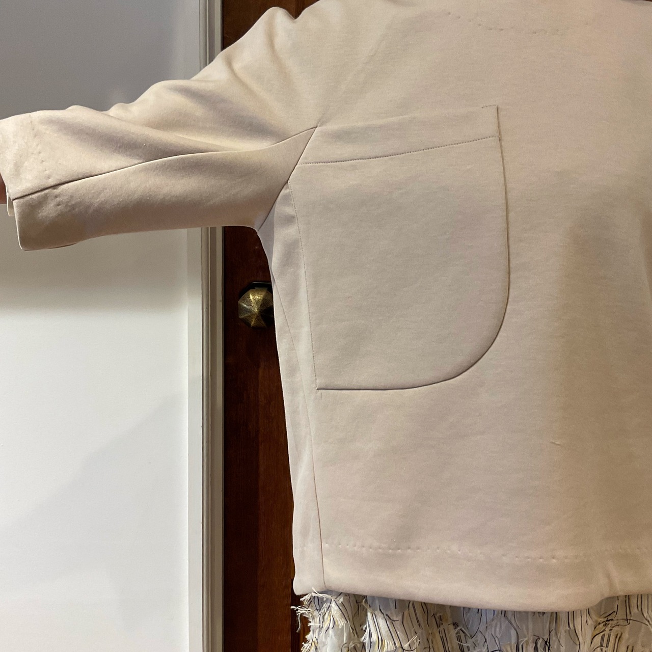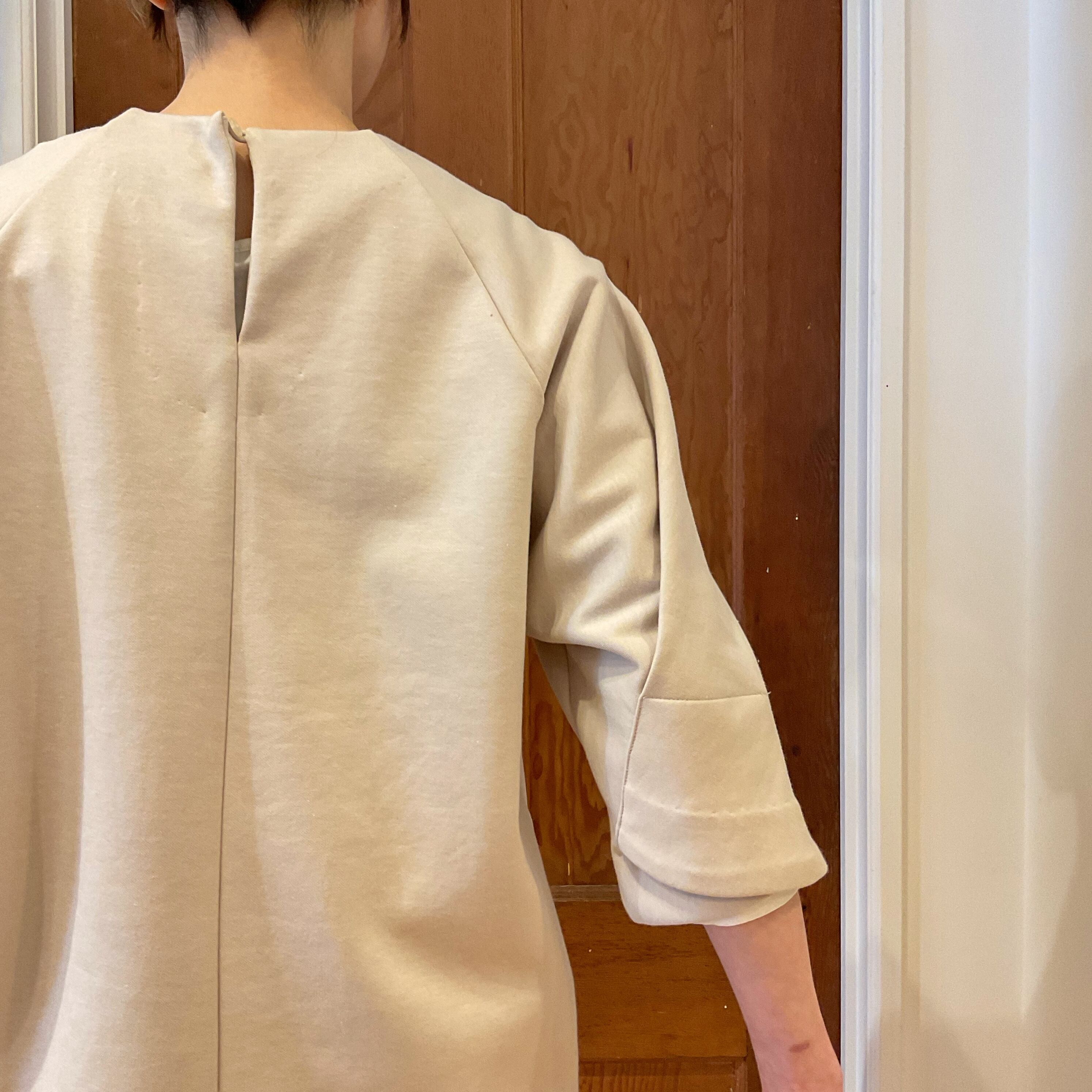そこに着物のようなお袖と、綺麗めな素材感のカットソー生地を使うことで、大人の女性の雰囲気を+