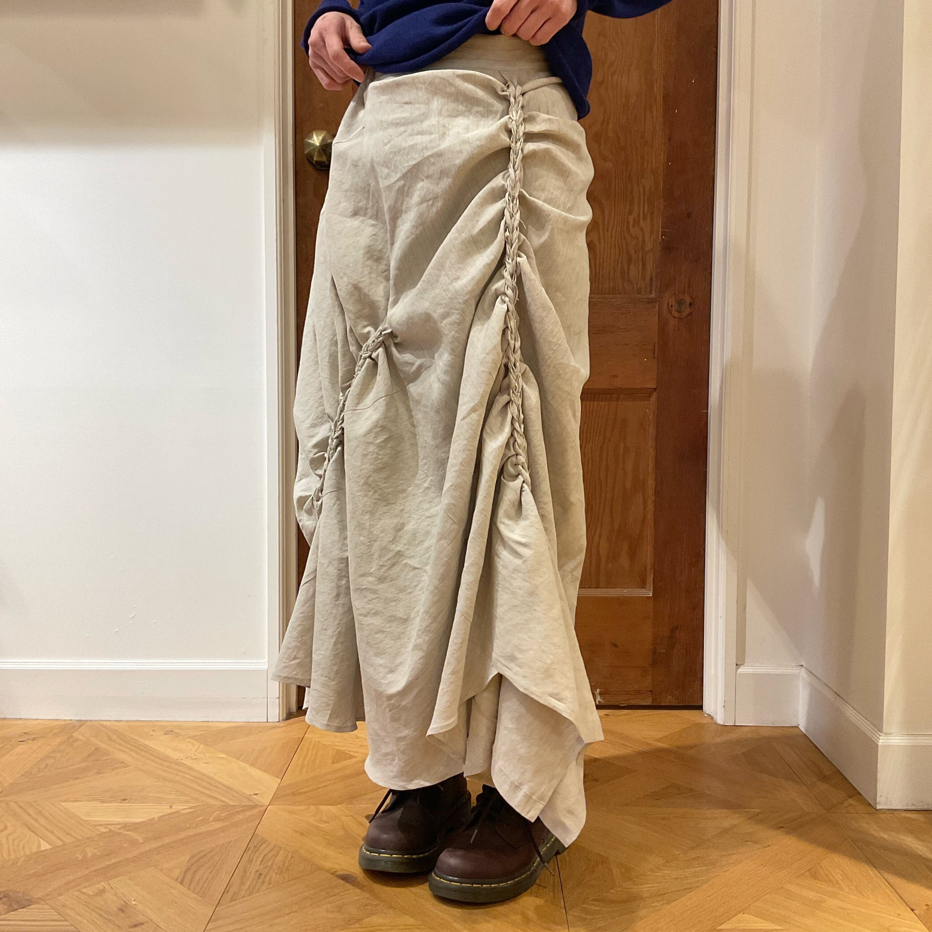 マーメイドスカートのようですが、ウエスト、ヒップ周りは決してタイトシルエットではなく、ちょうちんのようなイメージ