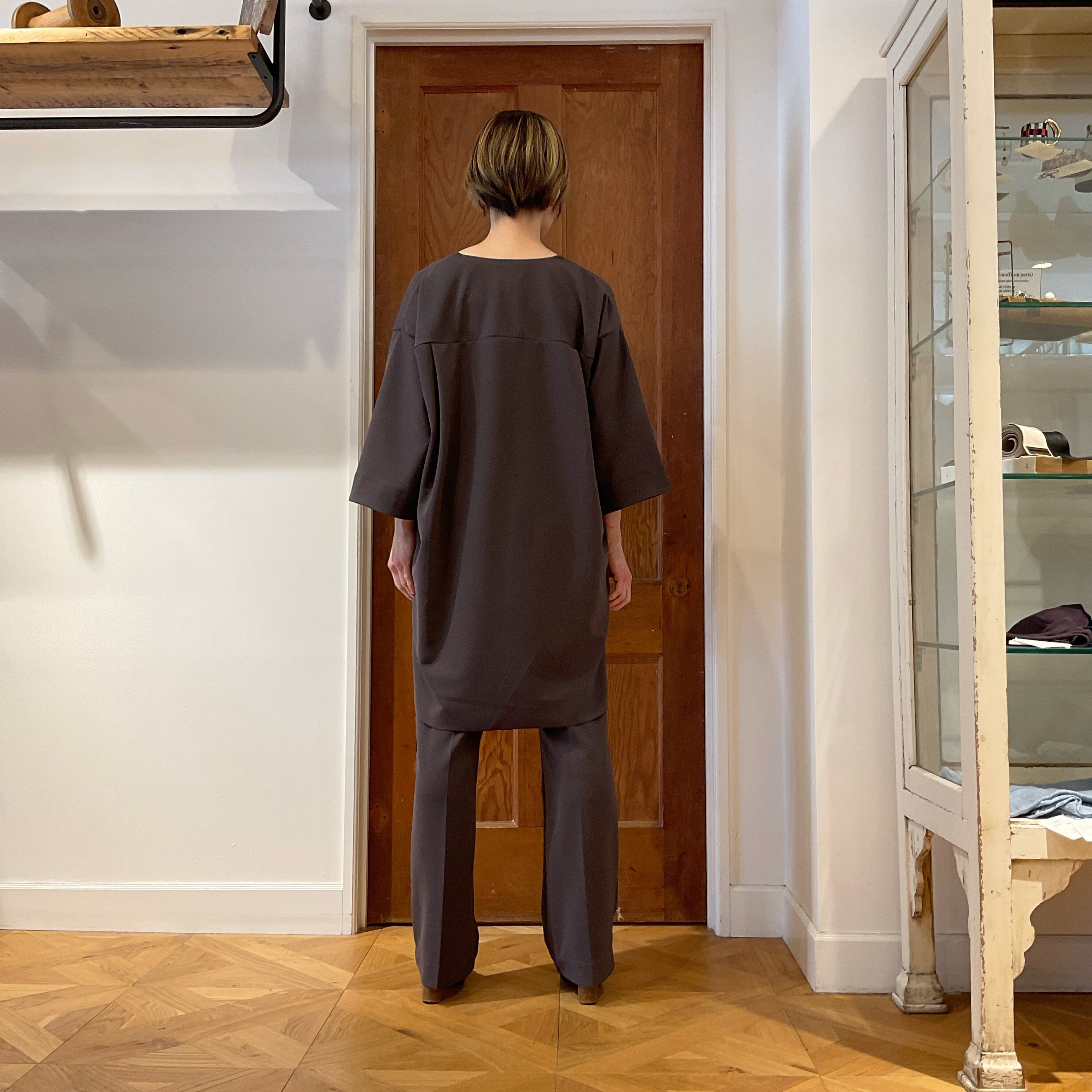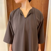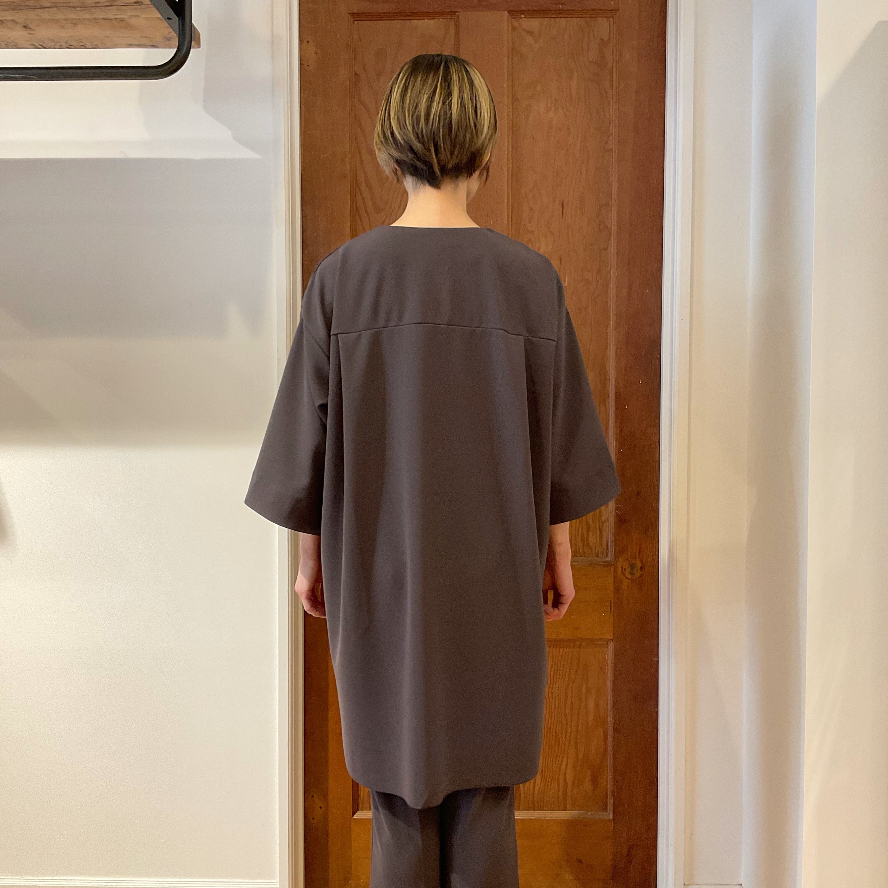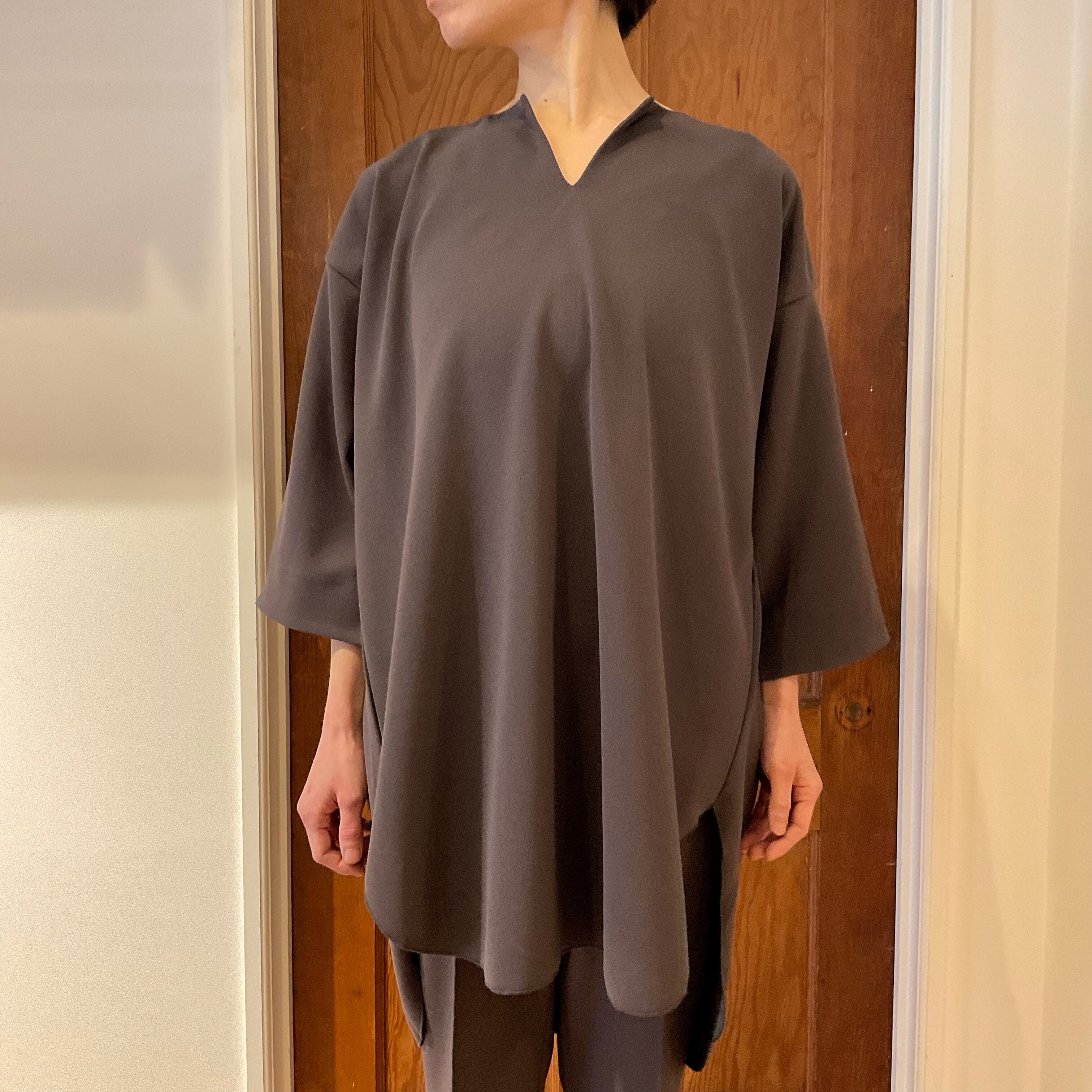 トロミ素材でゆったりシルエットのチュニックブラウス
