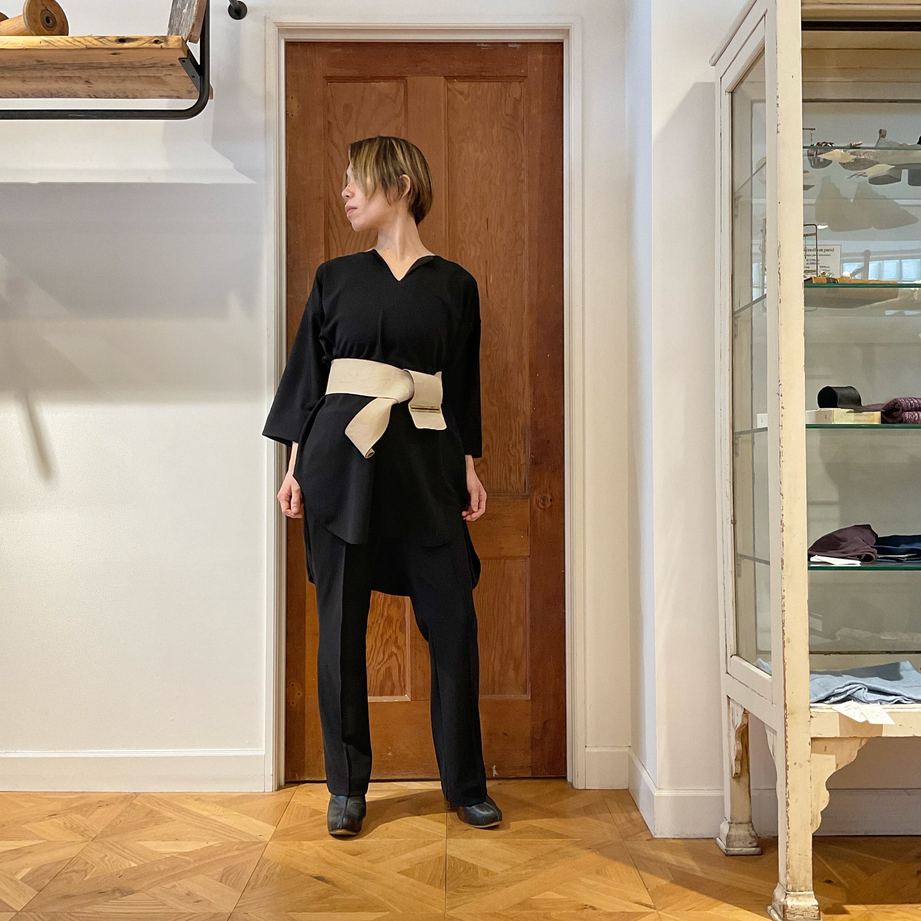 ネック、腕の裏にはブラックのサテン生地、腕をまくって着た時のポイントに