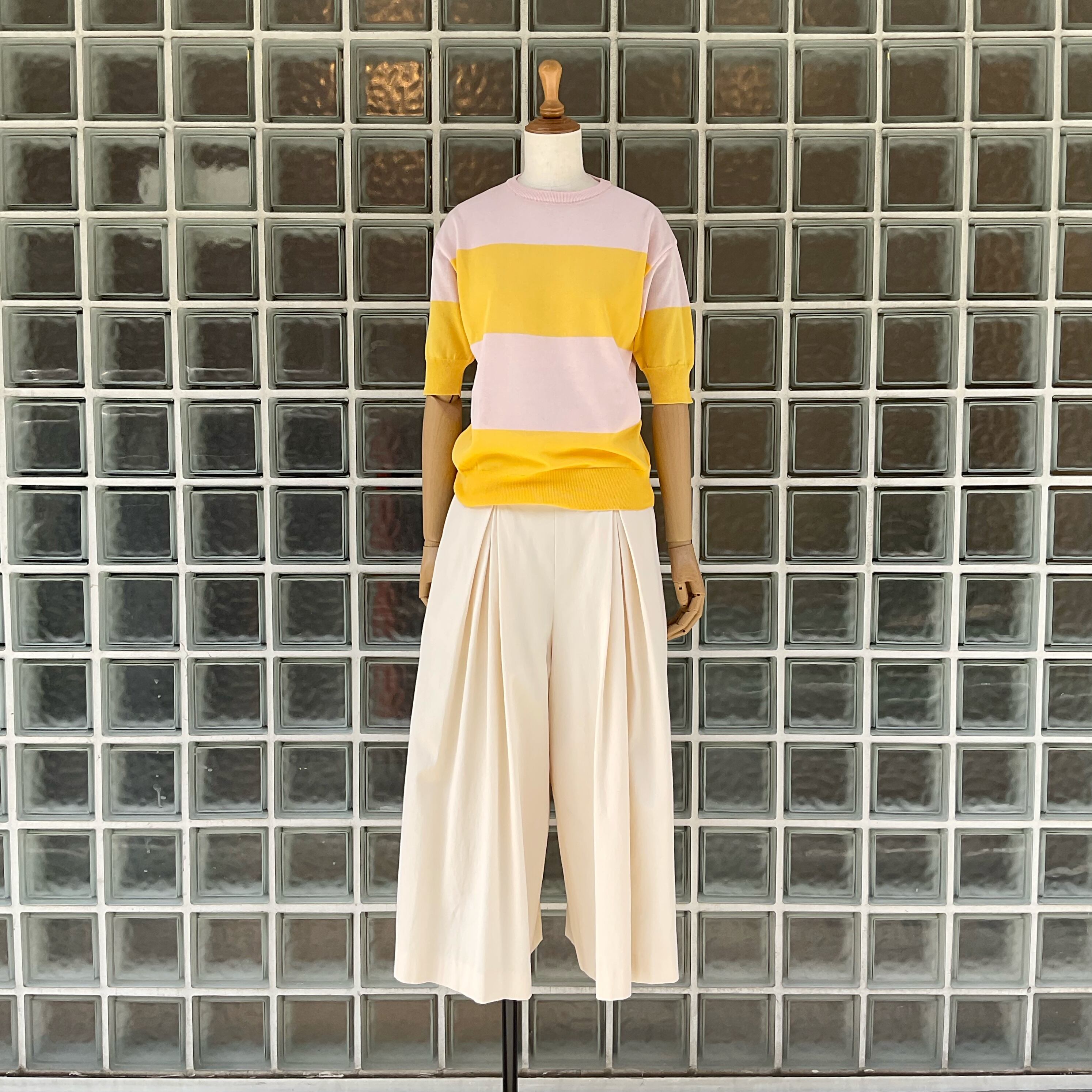 優しいピンクとピリッとしたイエローの配色が珍しいニット