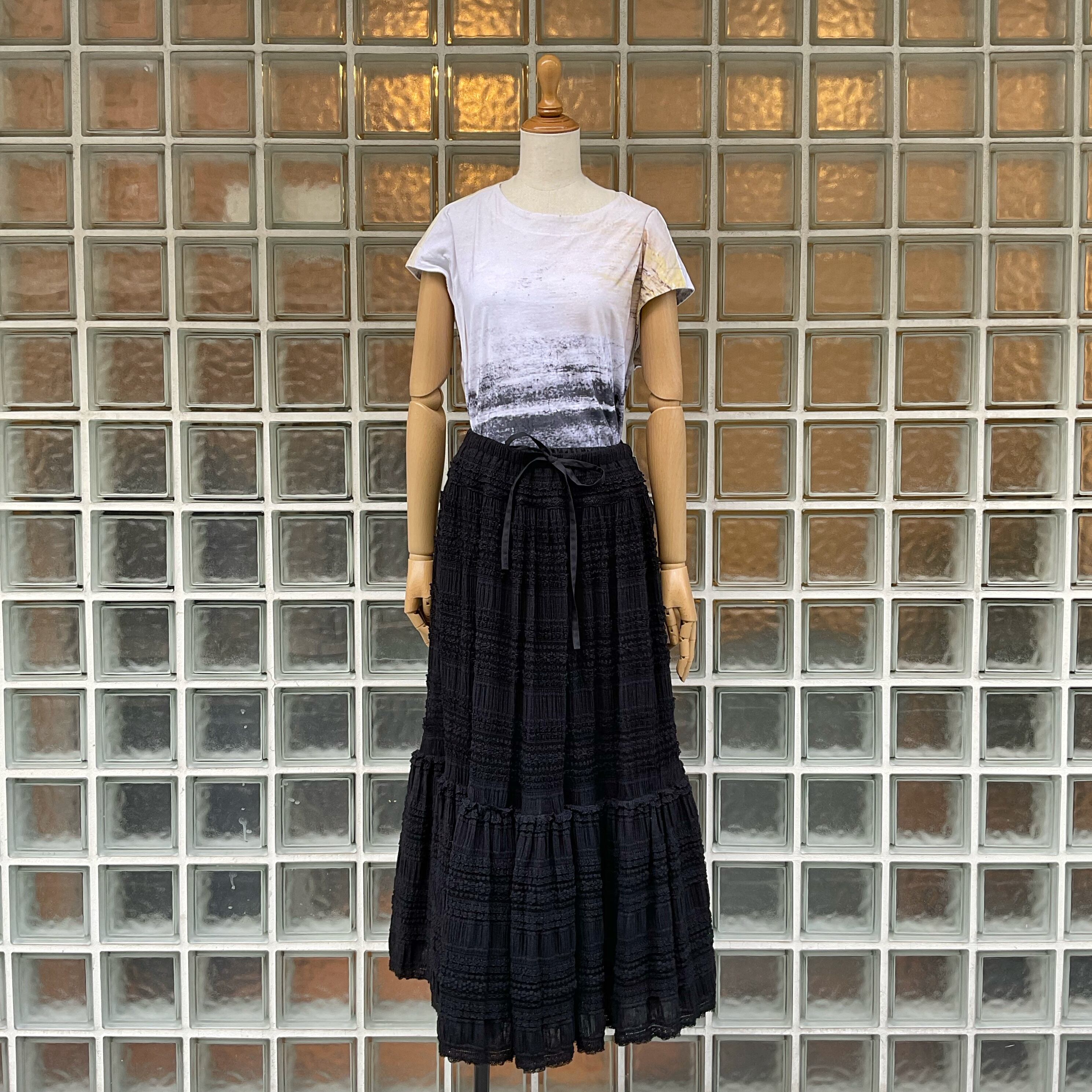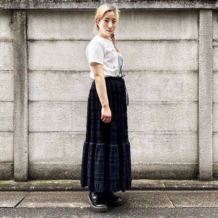 *こちらのスカートはウエストが紐での調節も可のですので、サイズを選ぶ際はウエスト周りより、着丈で選んで頂く方が良いと思います。
