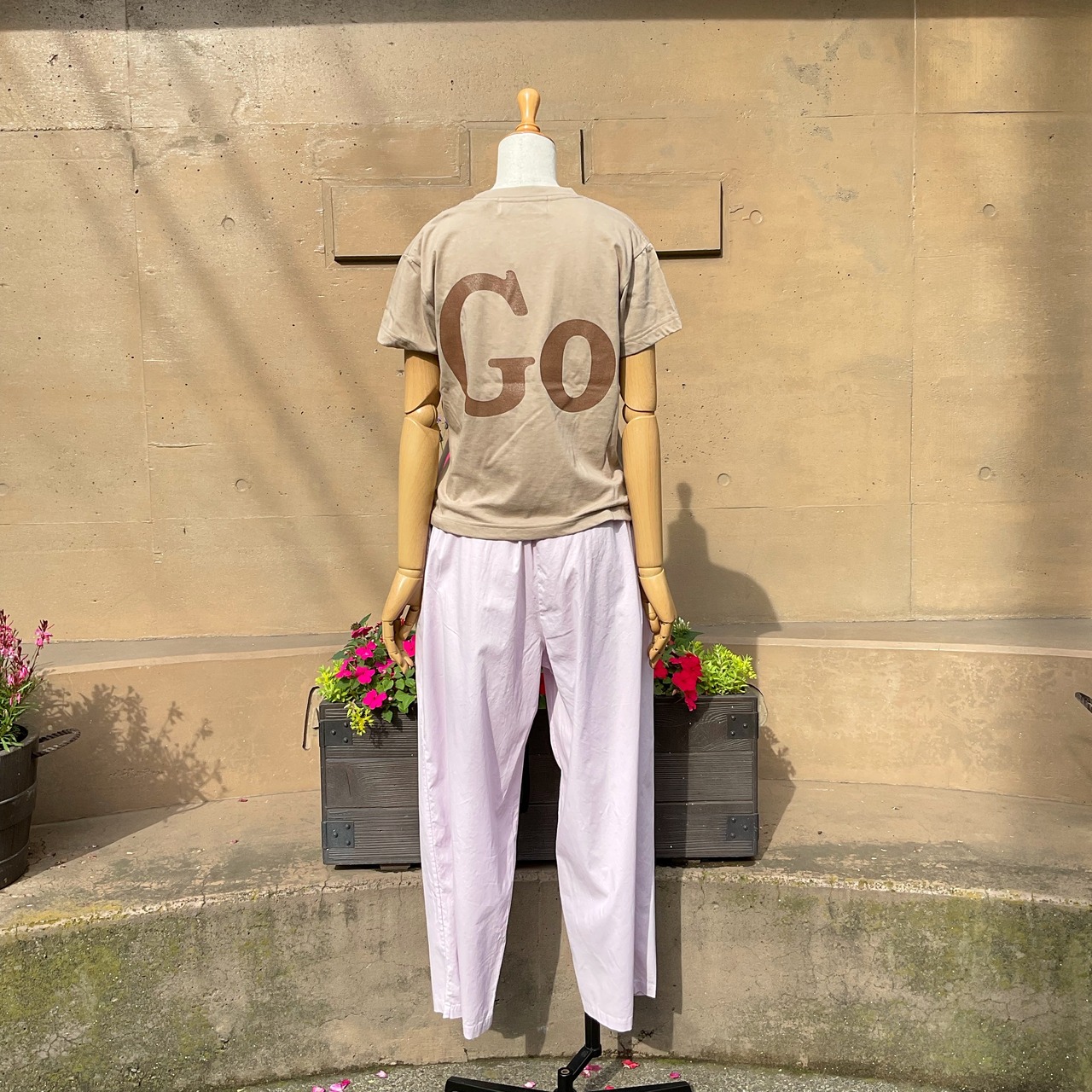太ももからのタックが立体的で綺麗なので、トップスはコンパクトな丈のモノか、インして着るのがお勧め