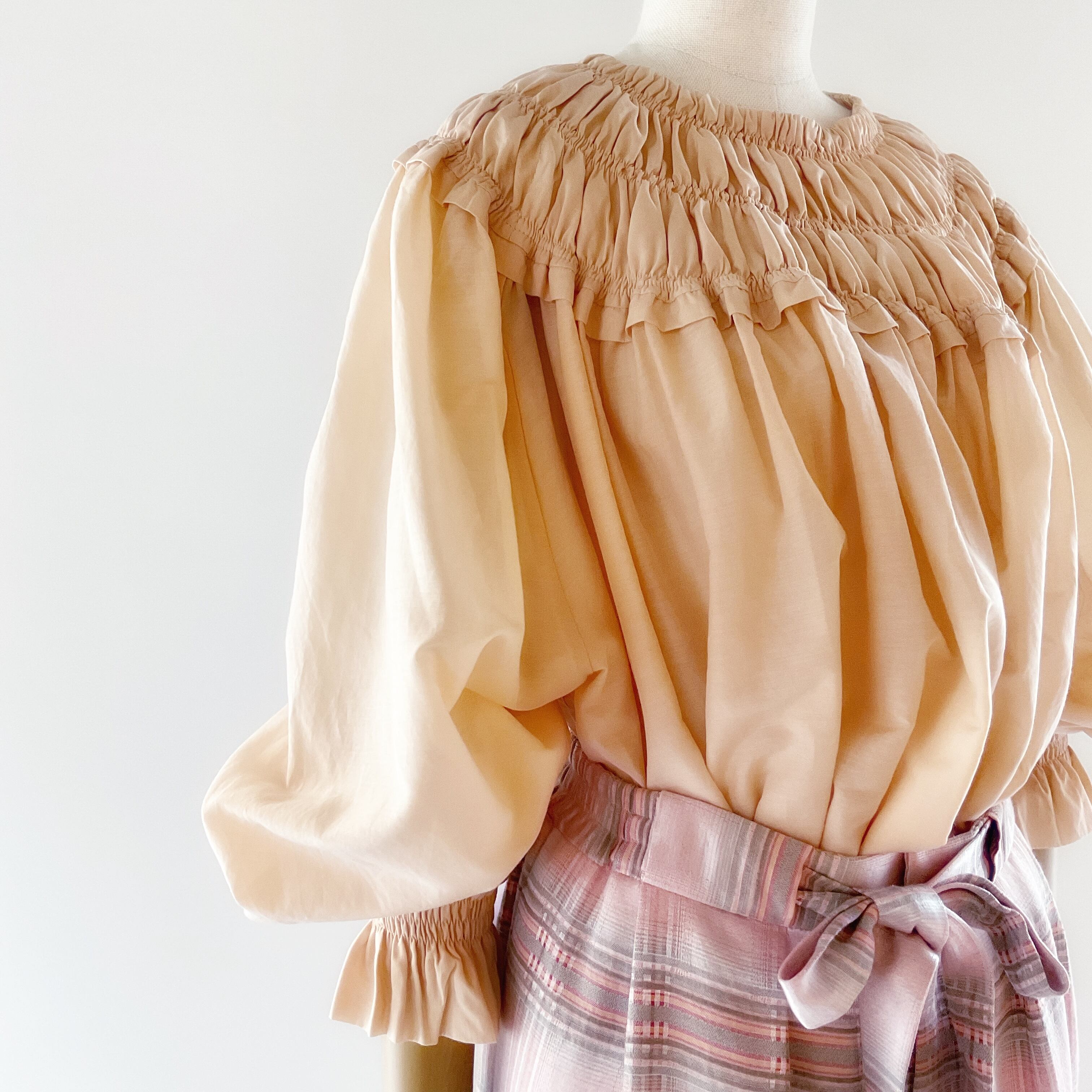 胸元にのギャザーが特徴のちょっとゴシックエレガントなブラウス