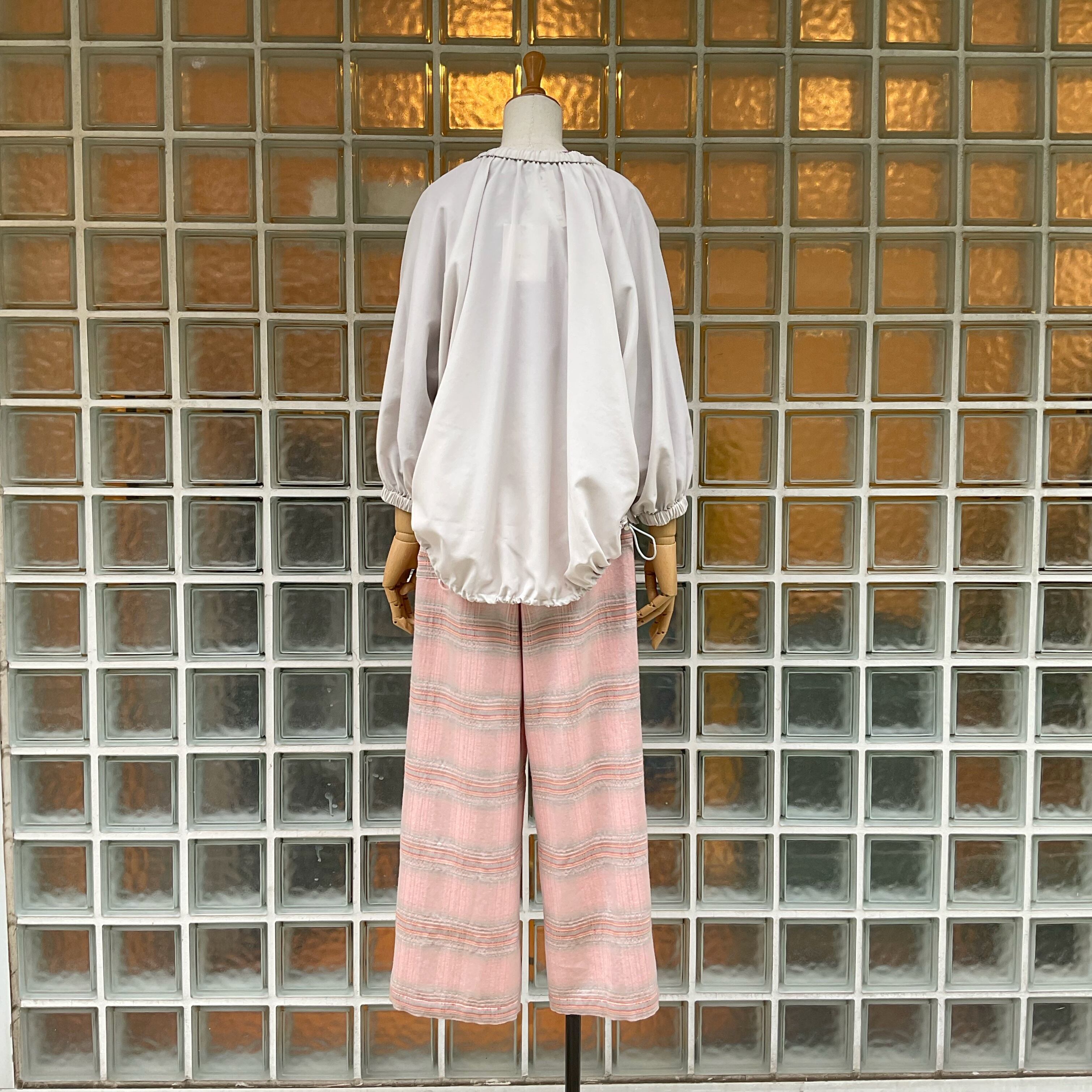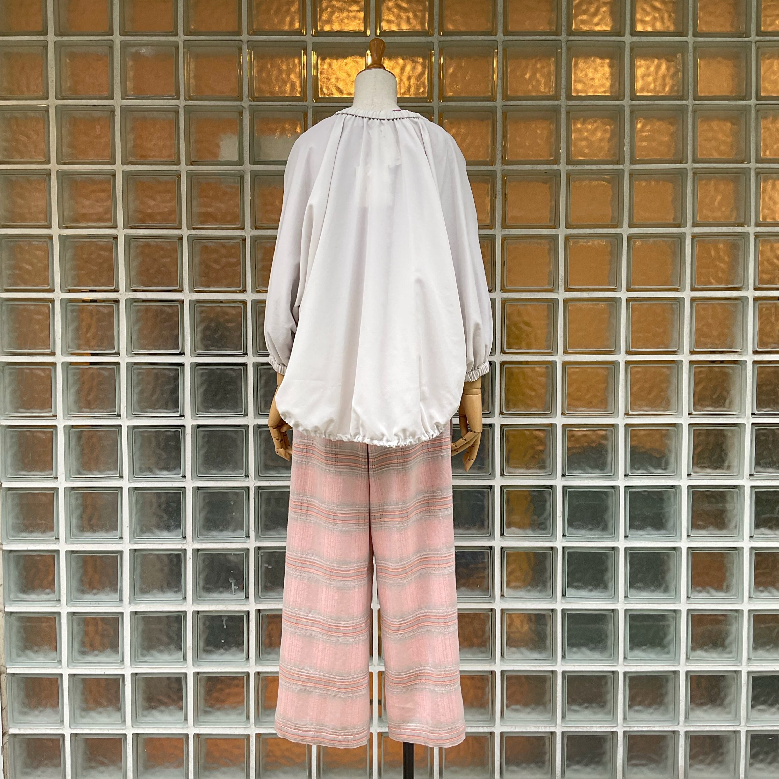 衿ぐりをゴムにすることで生まれる背中のドレープが立体的