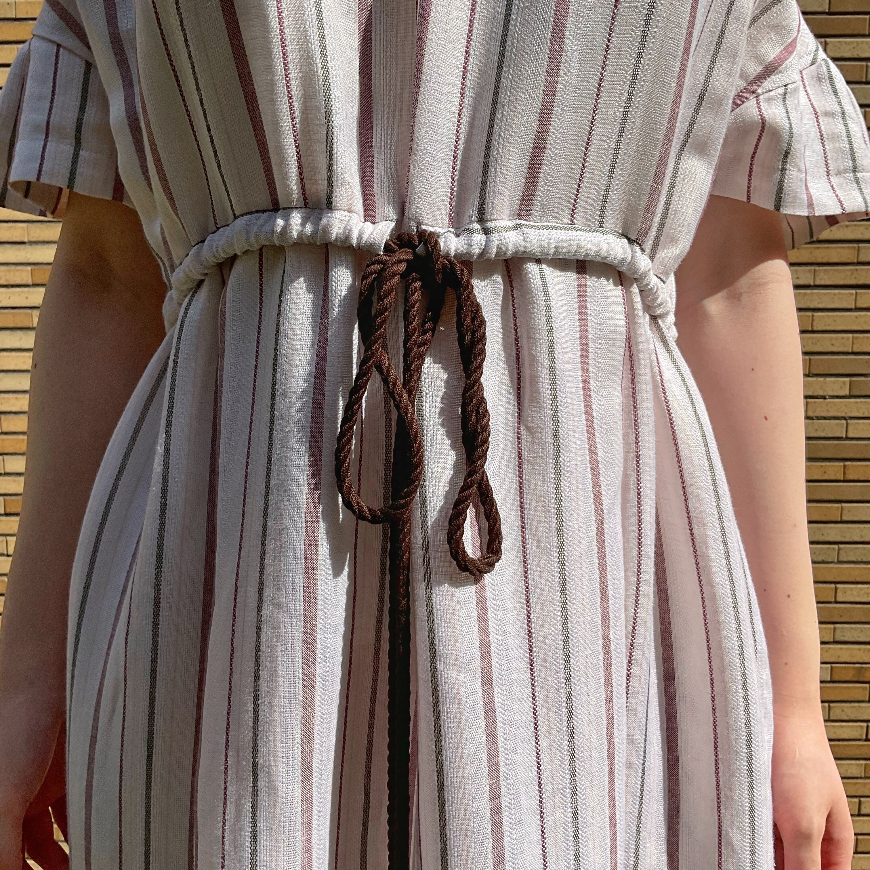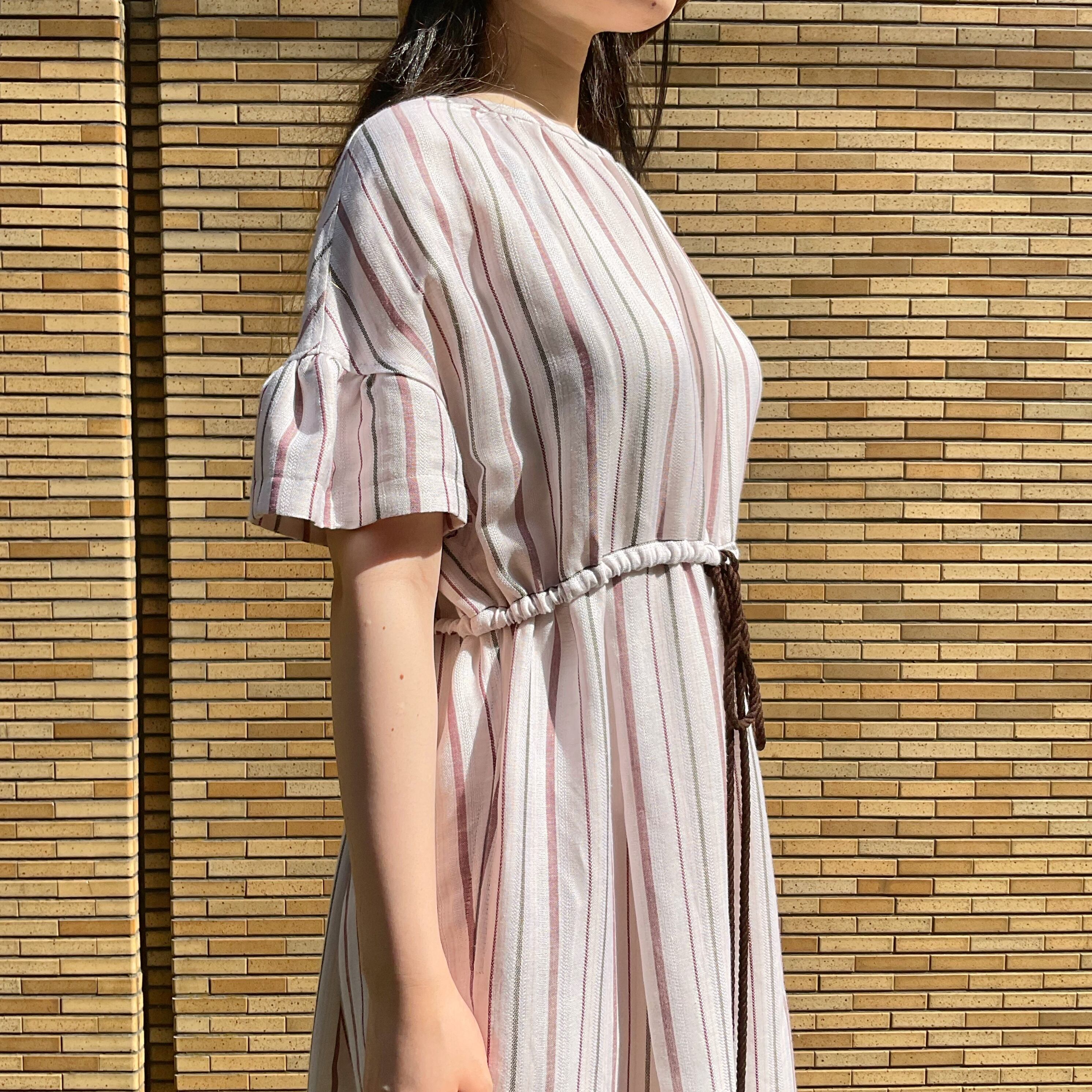 優しい配色のストライプとナチュラルな麻の生成りは麦ら帽子や籠バッグピッタリ