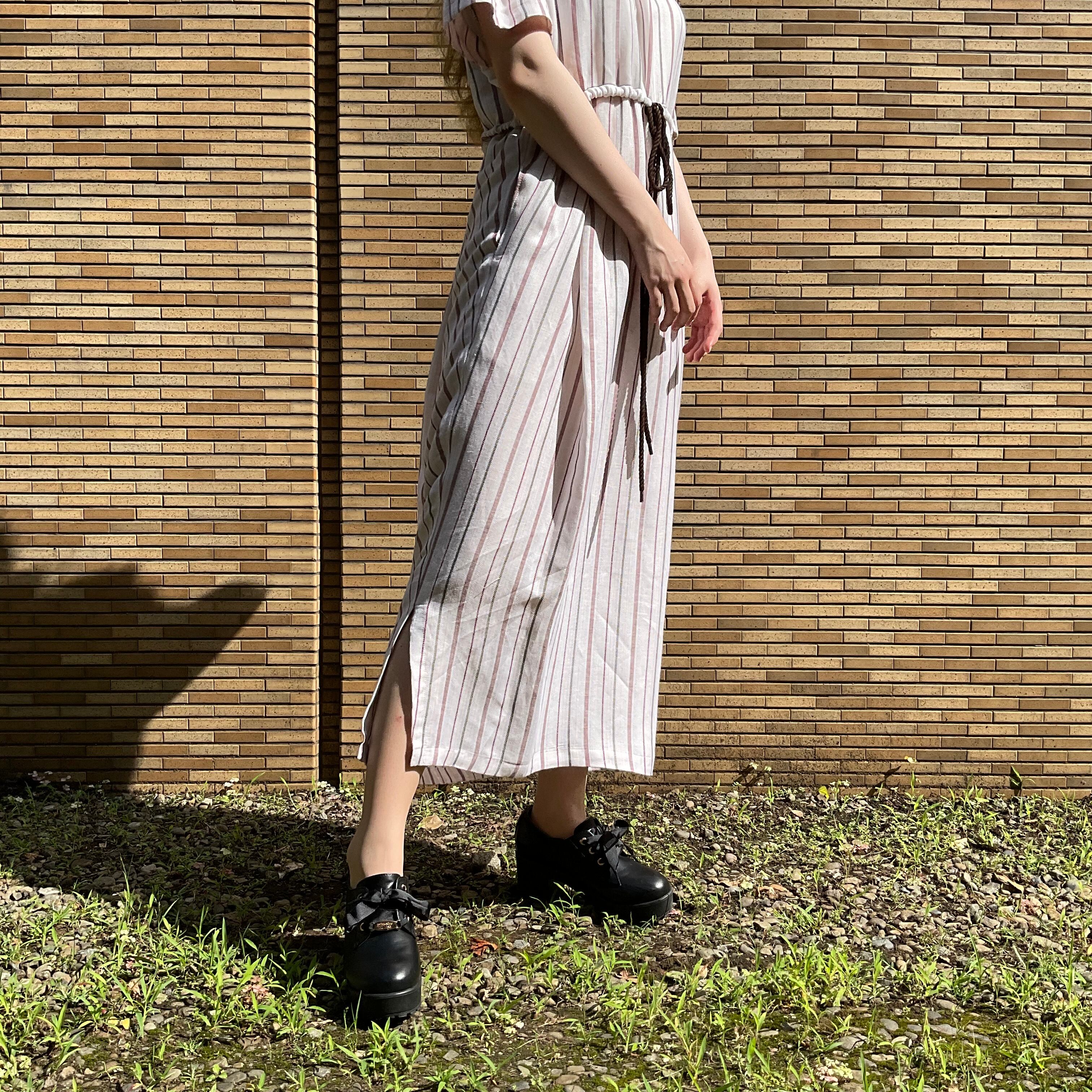 中東っぽさも感じる大人ストライプの楽ちんワンピ