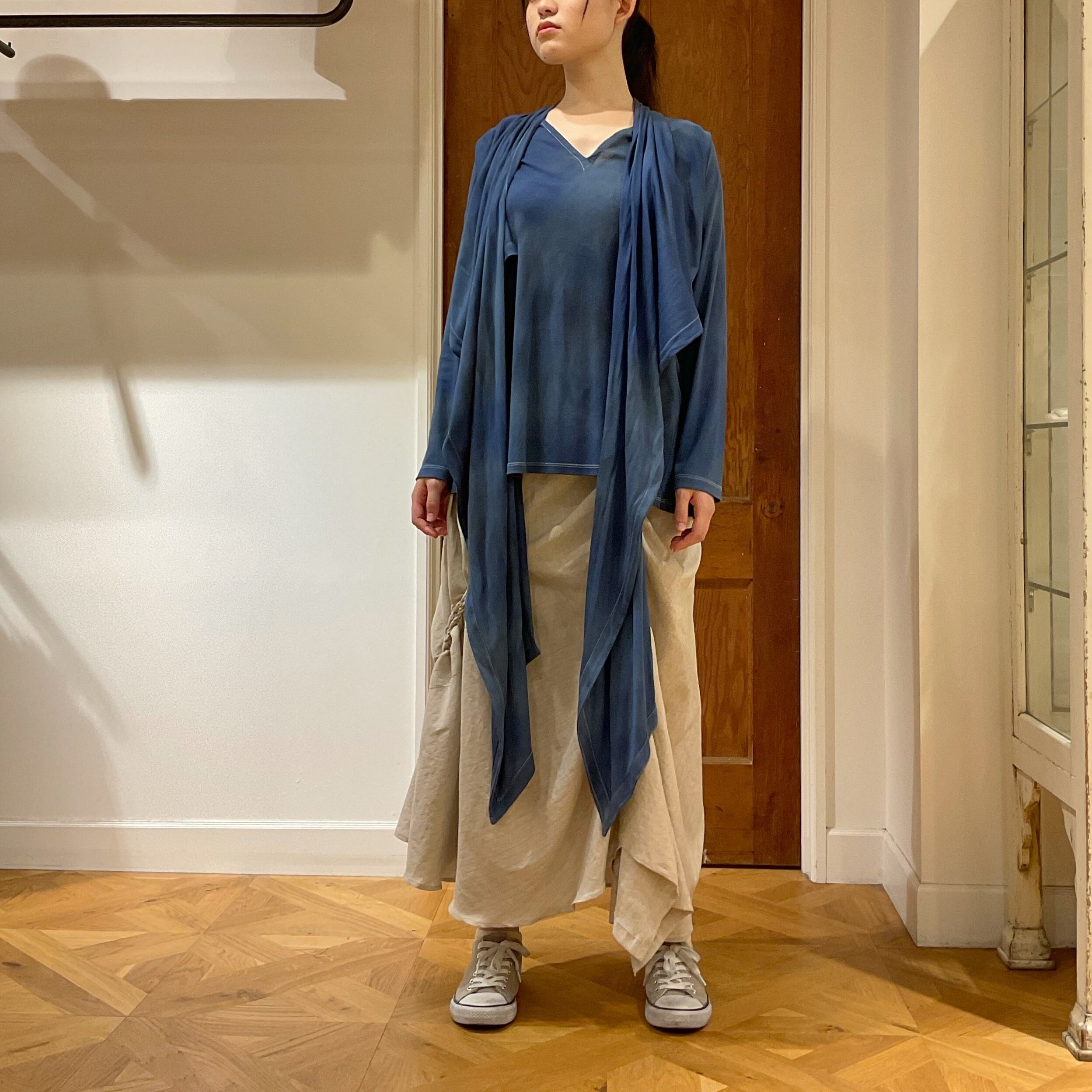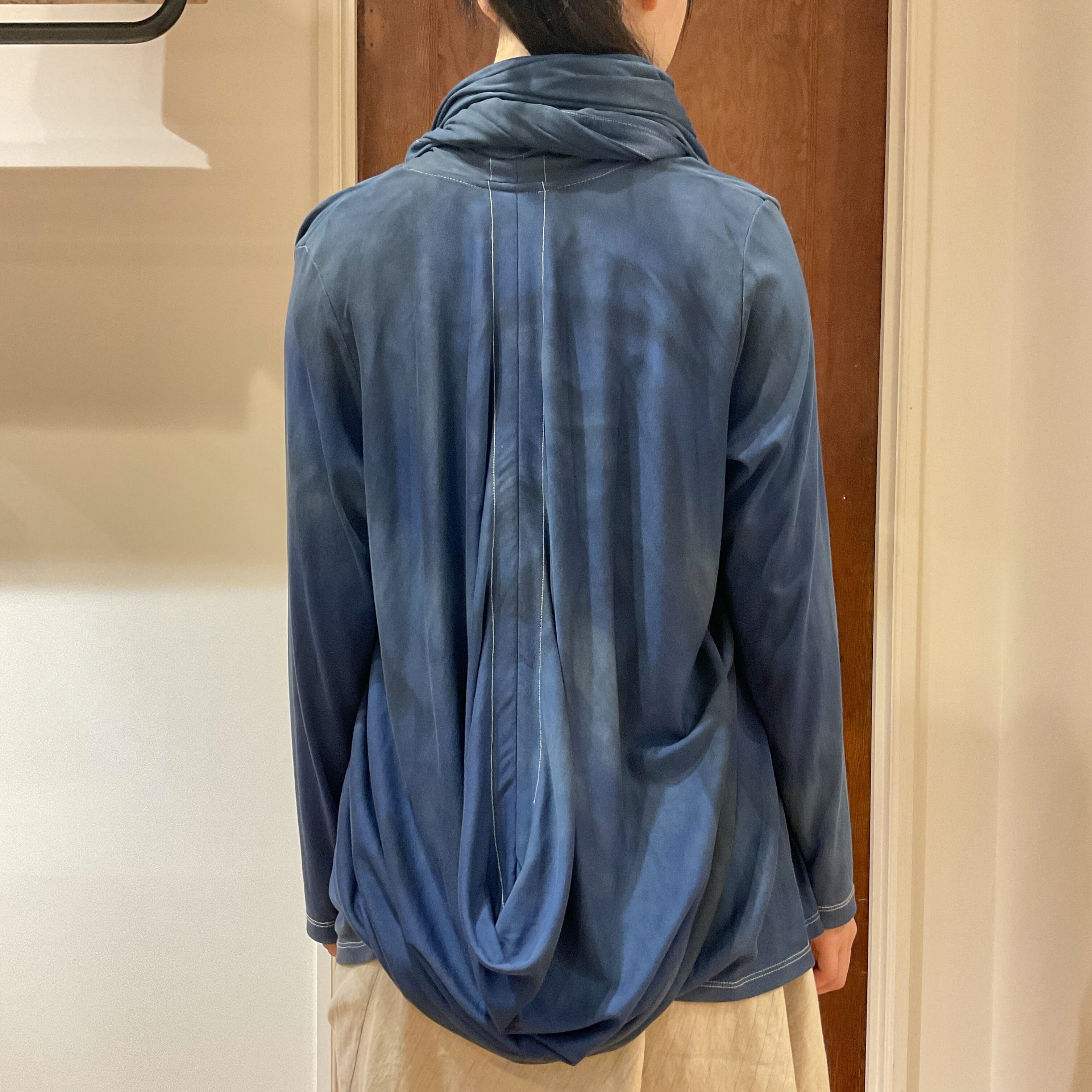 藍染めされたようにチャコールグレーが杢調に散りばめれています