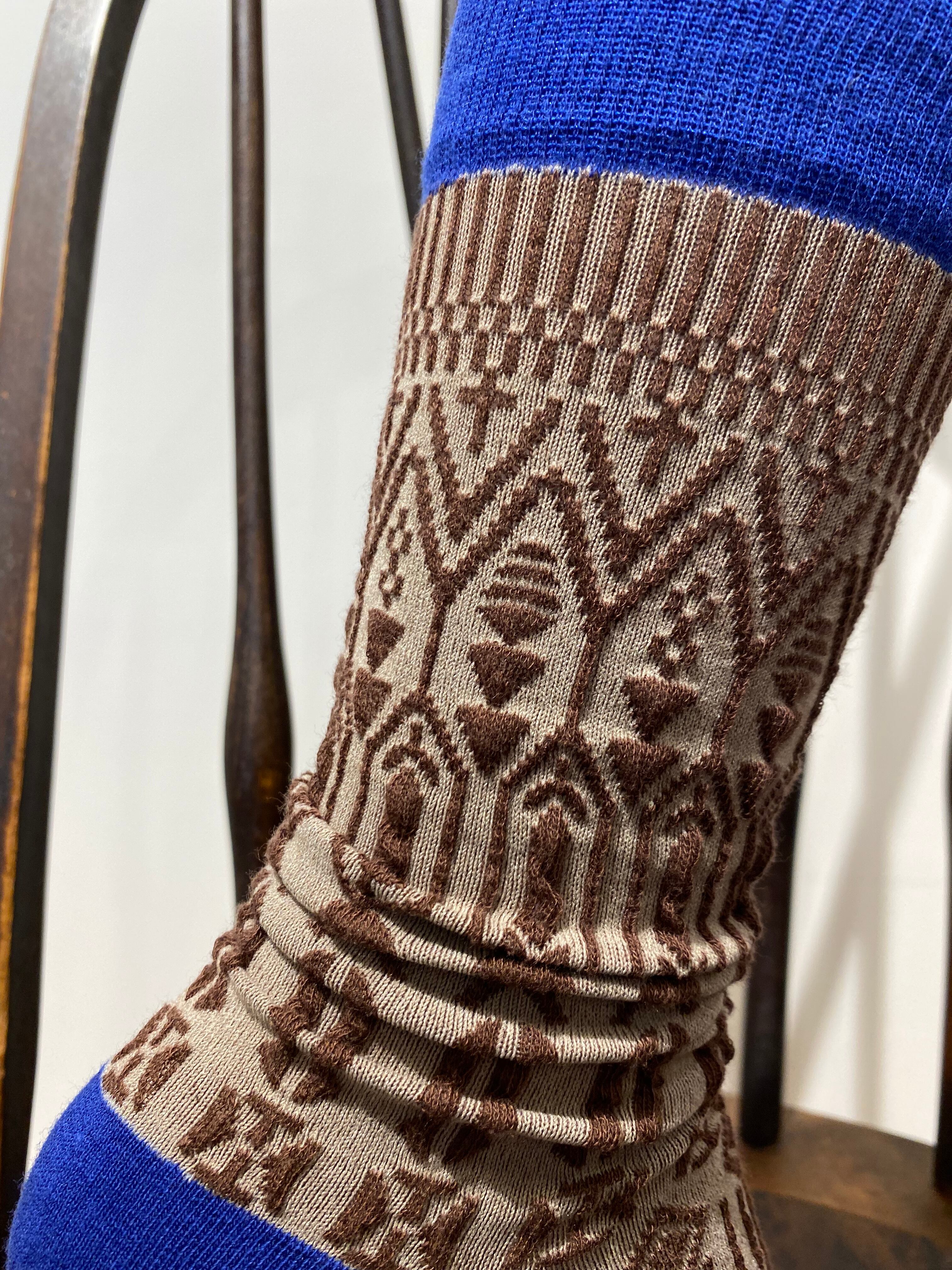 立体感のあるジャカード編みと色の配色が、とても可愛いらしいソックス
