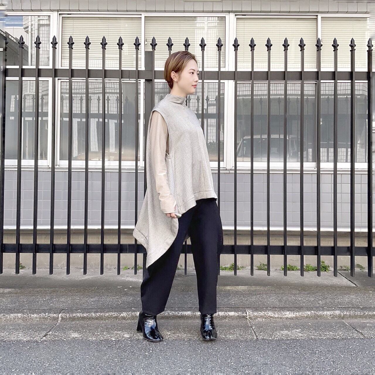 冬になったらハイゲージのニットをインして、その上にコートを着てもモコモコしません
