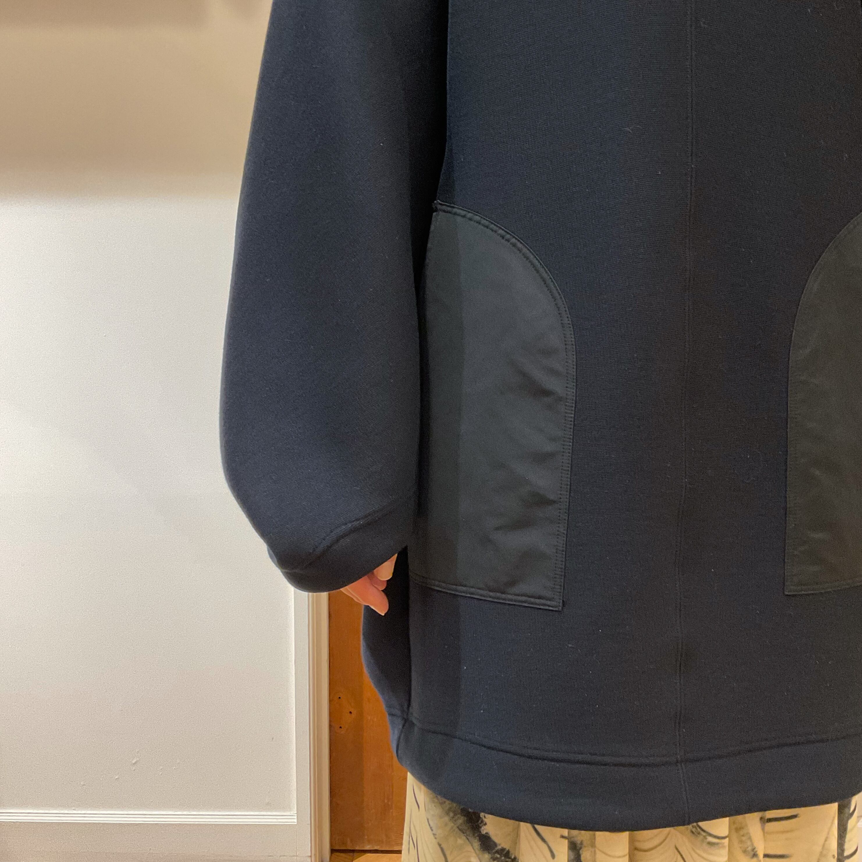 左右脇別素材のパッチポケット各一個つき。