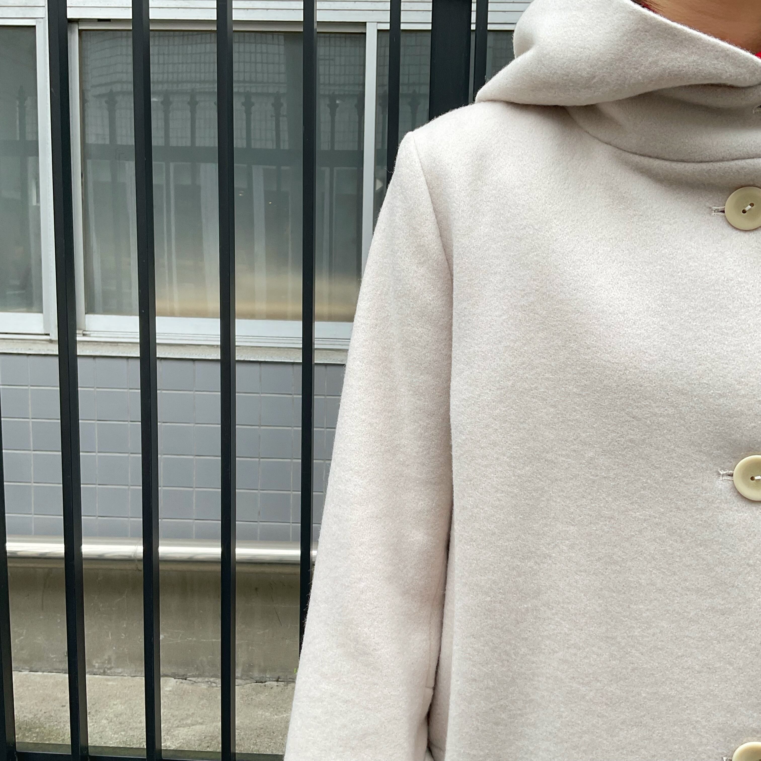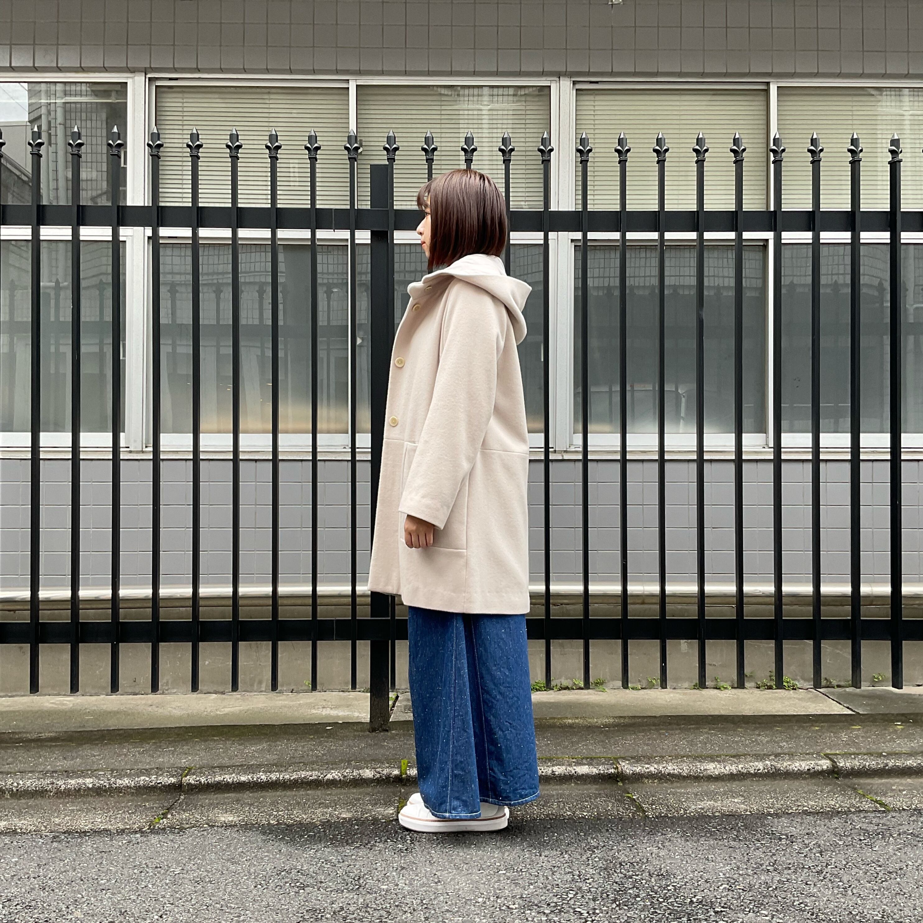 首回りのちょっとしたデザイン、フーディの立ち上がり方、ポケットの大きさといったパーツのデザインにこだわることで、ダッフルコート風の見た目でも、スッキリと快適な雰囲気に