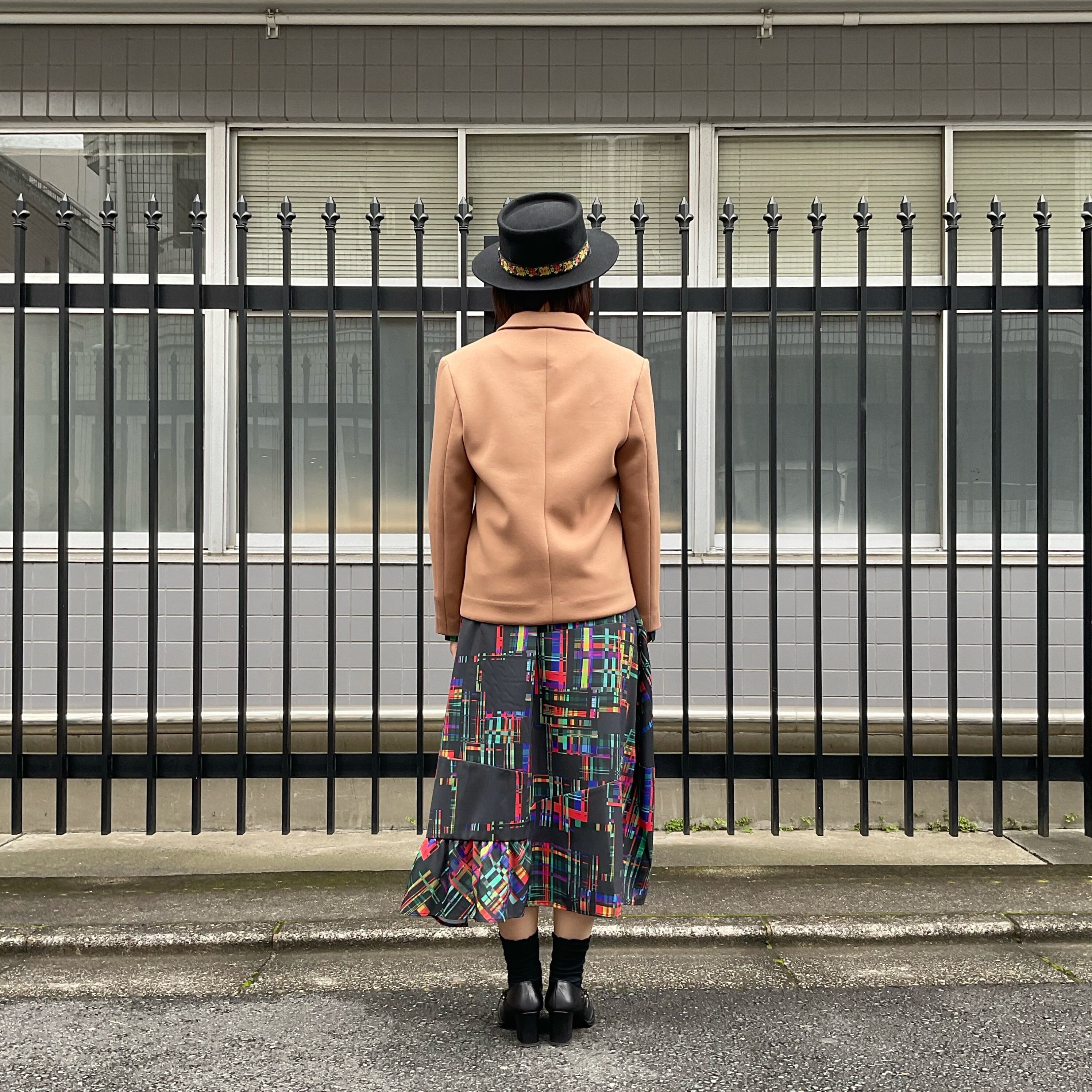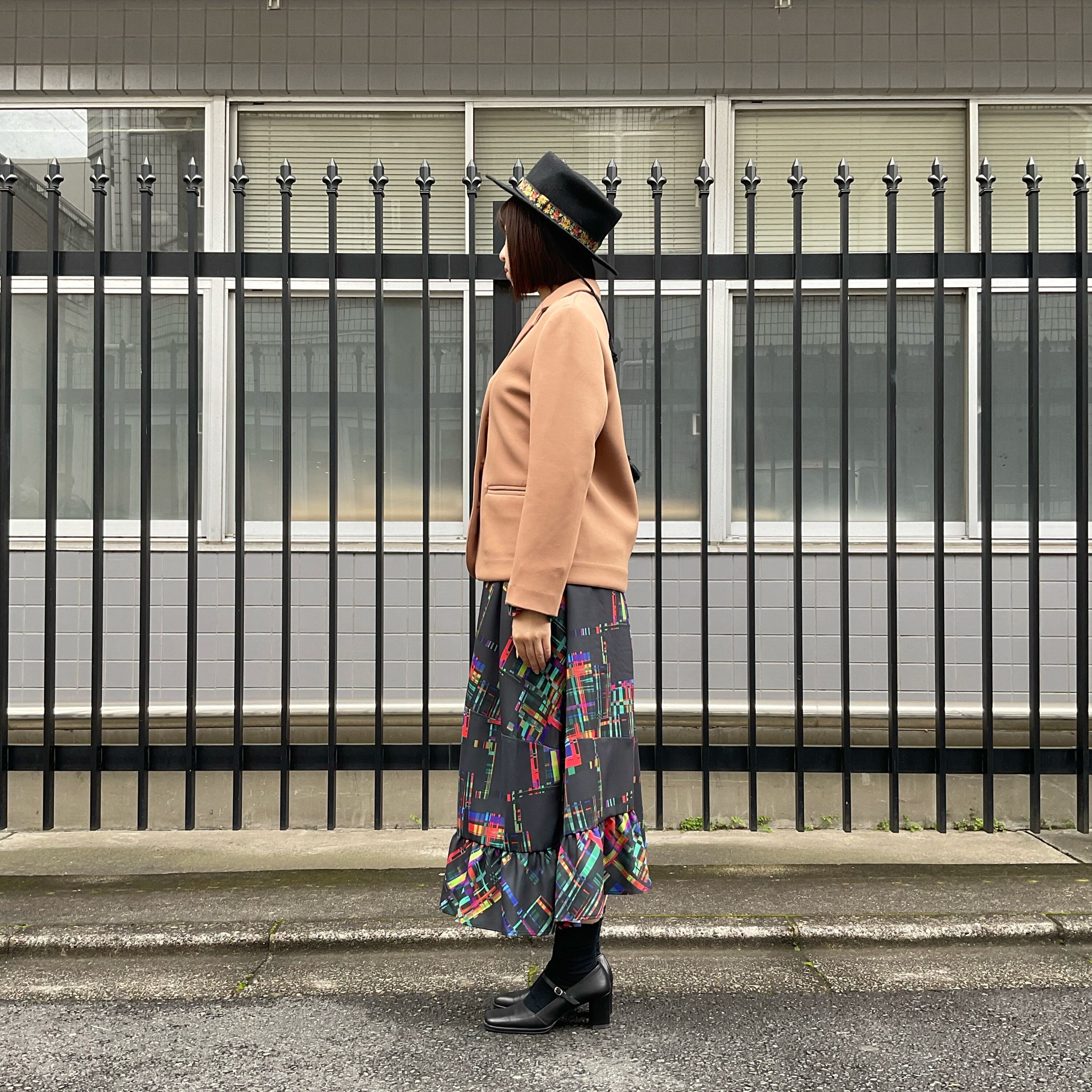 フレアスカートとちょっとツバのあるウールの帽子で、ちょっと古き良きアメリカンな雰囲気
