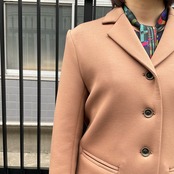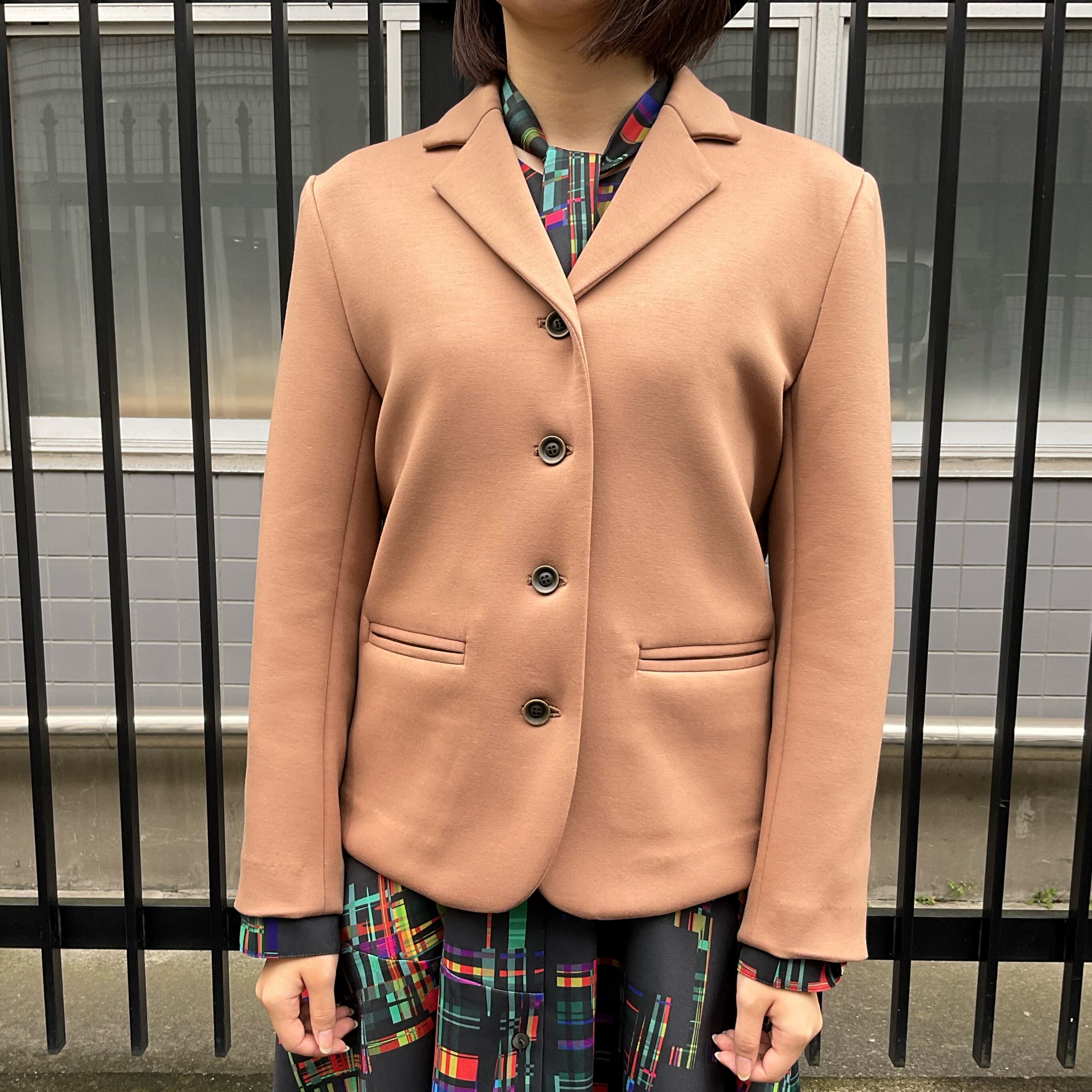 詰まった小ぶりのテーラードカラーと、キャラメルのようなブラウンがなんともレトロ可愛い