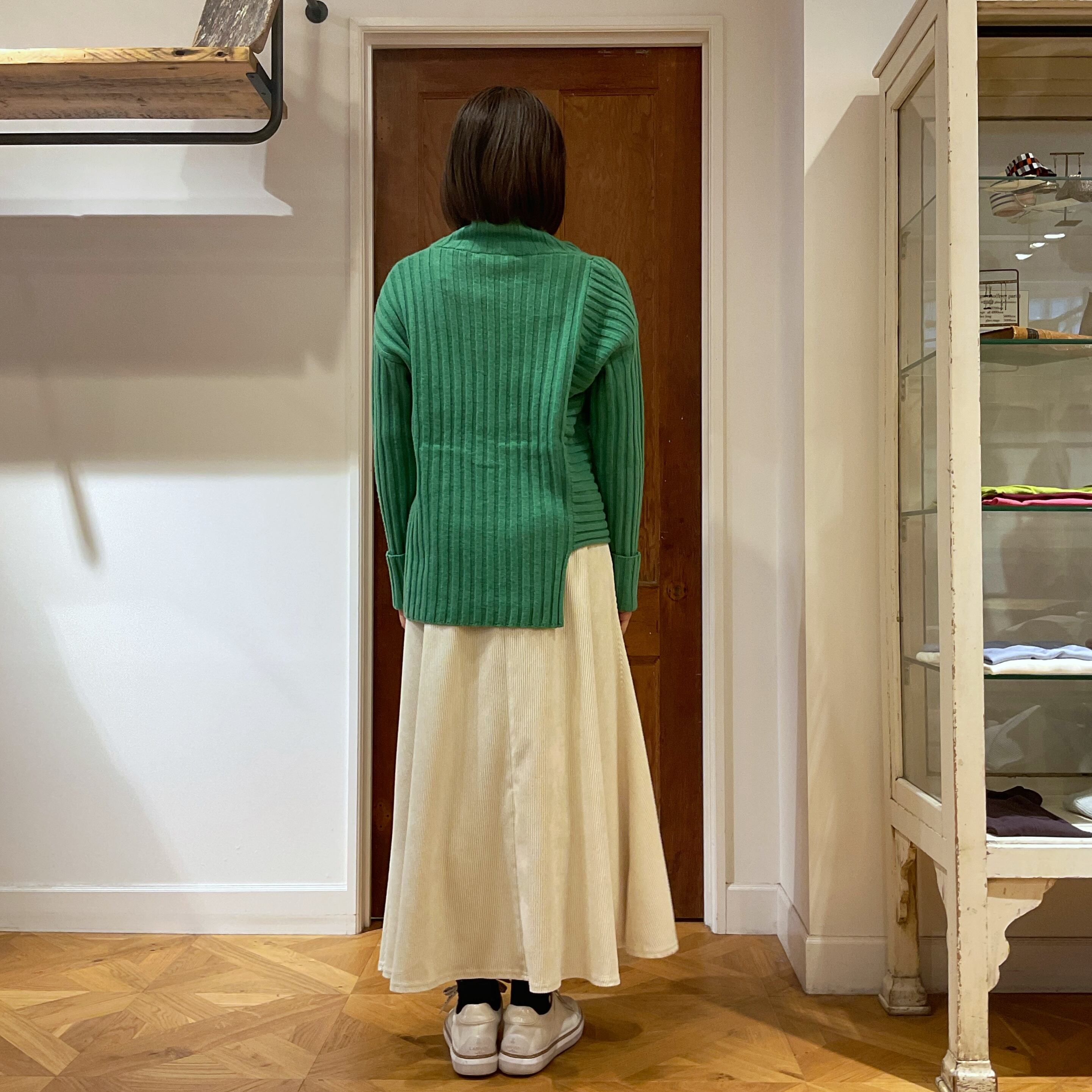 編地の切り替え部分で着丈に段差を付けることでエッジの効いた動きのあるデザインに