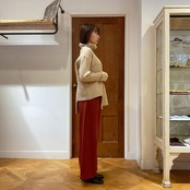 ざっくりとしたニットなので、デニムやチノ素材など、カジュアルな雰囲気でコーデするのもありだし