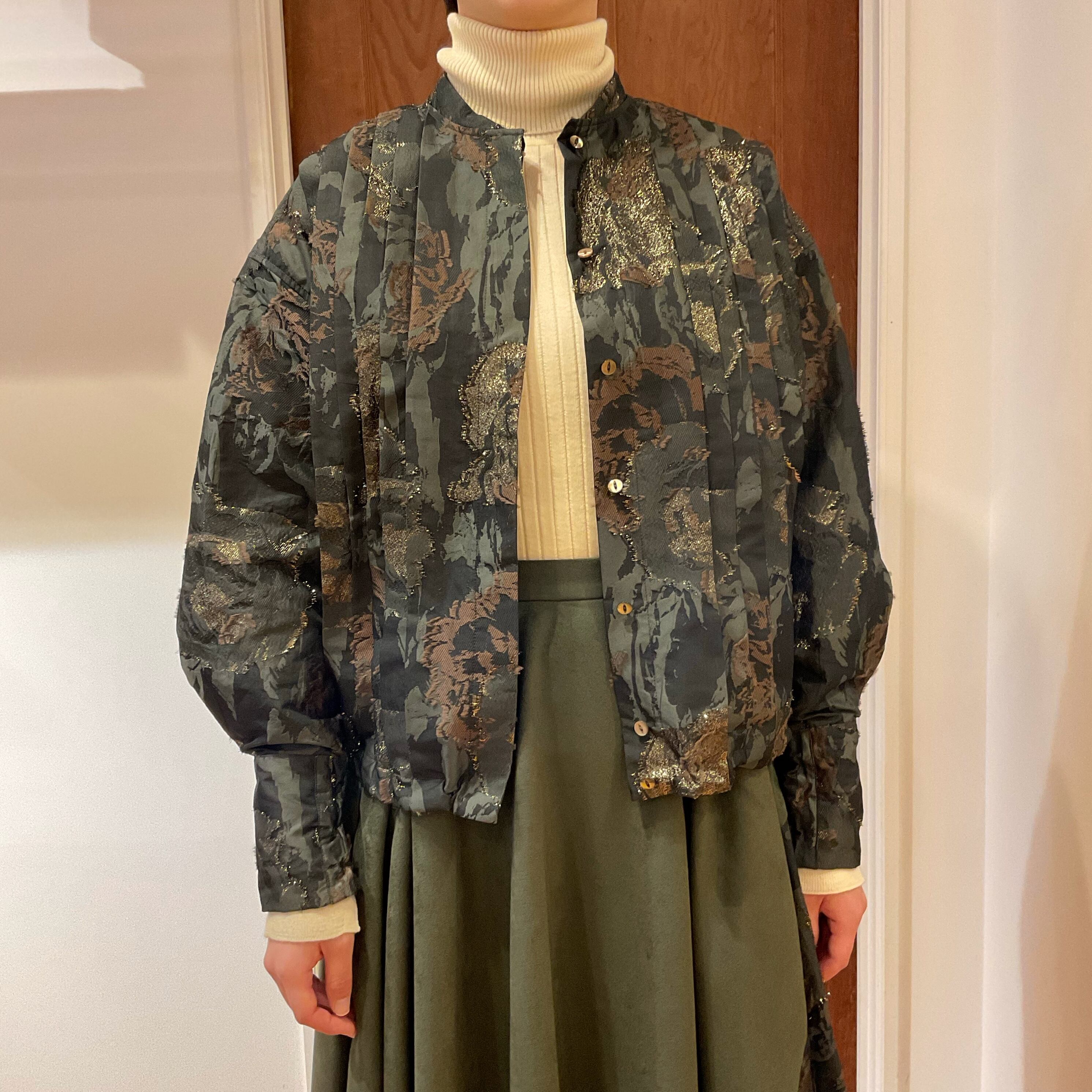 ナンキュラスをラメの糸で形どったオリジナルのカットジャガードを使用したブルゾン。