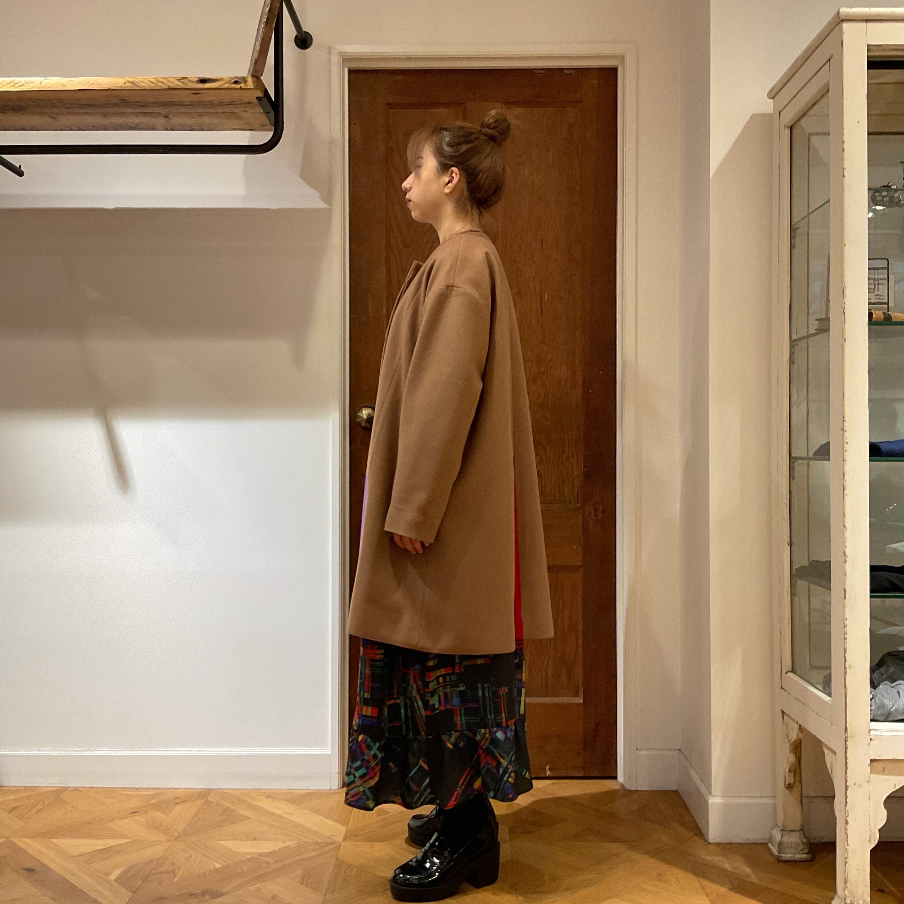 着用した時は少しフワッとケープのような雰囲気も持つ、Aラインのシルエットはとっても大人カワイイ!