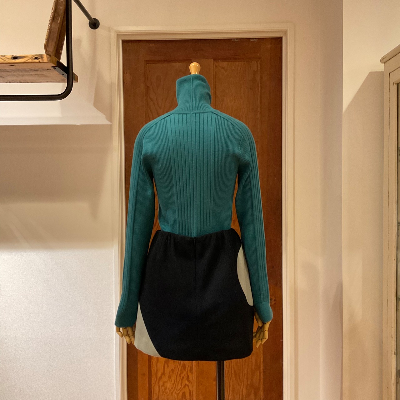 ハイゲージのハイネックをインしたり、コンパクトな着丈のニットをコーデすれば