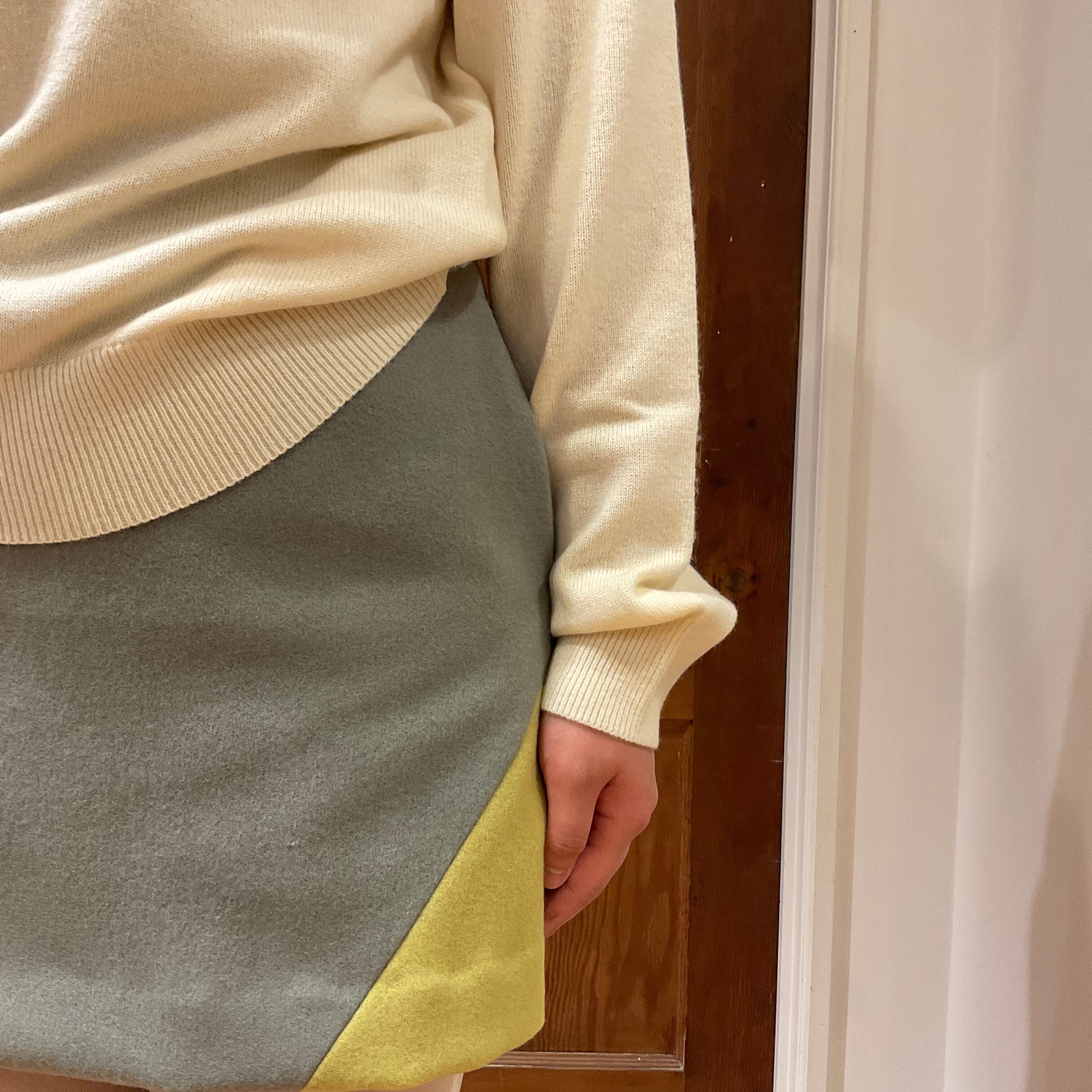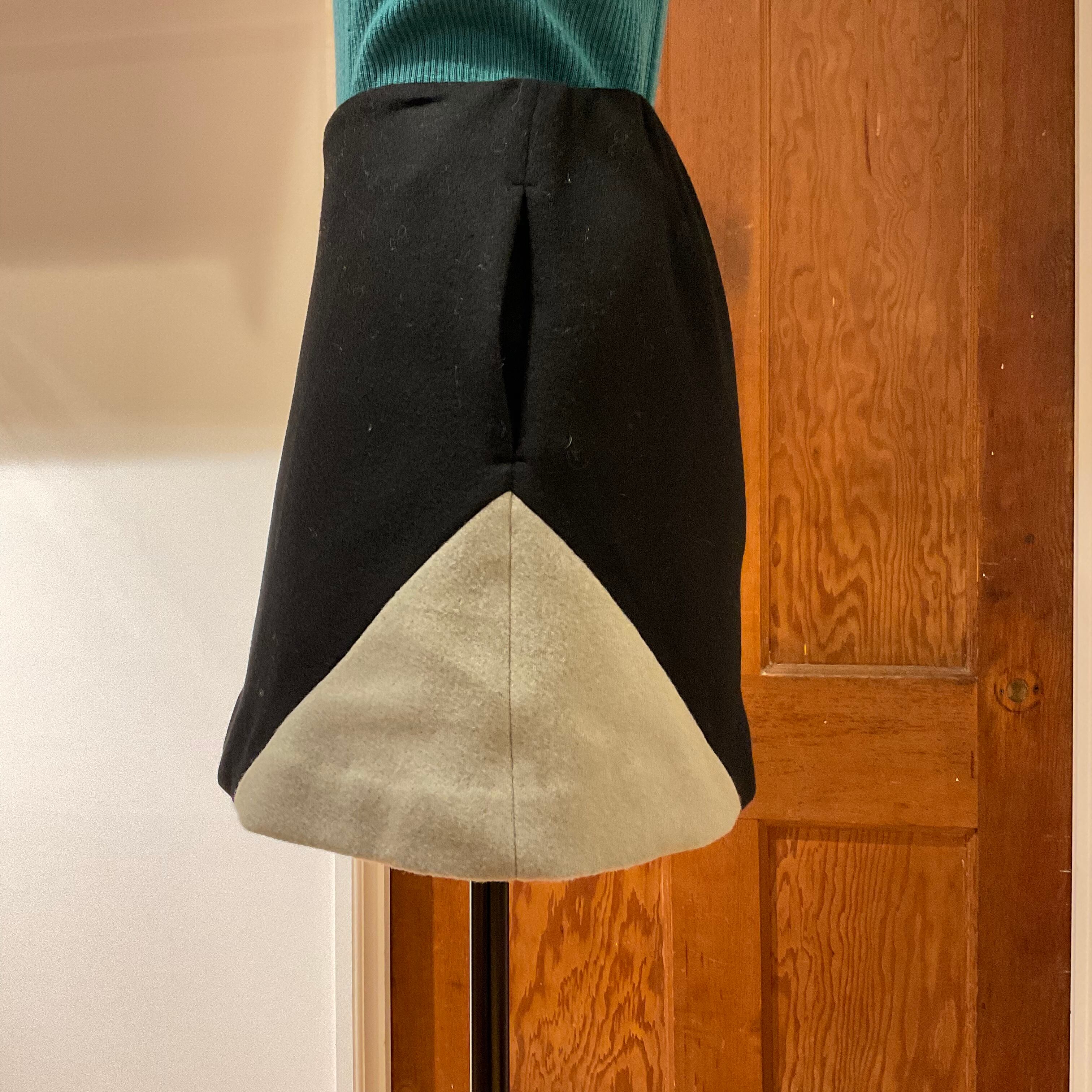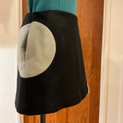 Simple trapezoid mini skirt with circle and line motif, like the same fabric coat.
