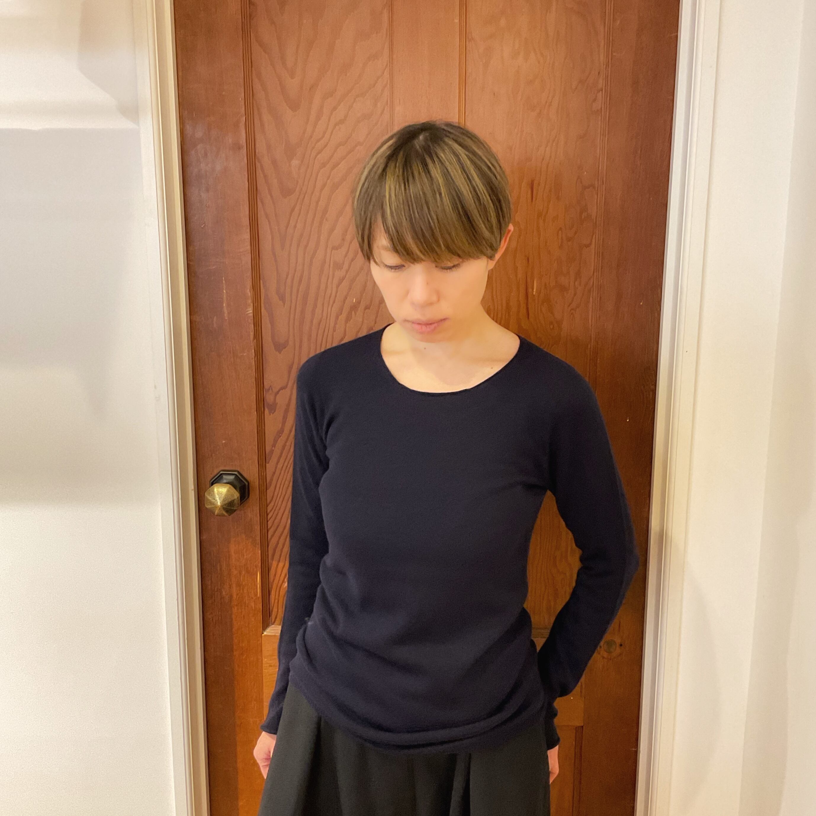 とにかく薄手なのに暖かく肌当たり抜群、一度着るとやめられません!10月から~3月迄の長い期間お使いいただけるベーシックニットです。
