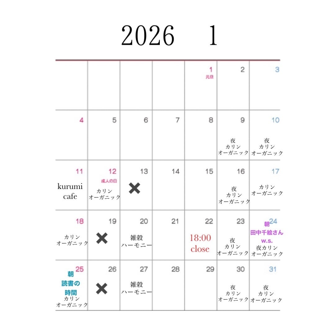 1月カレンダー