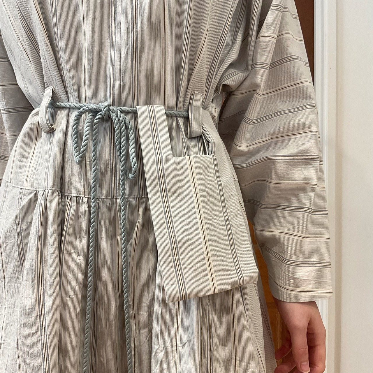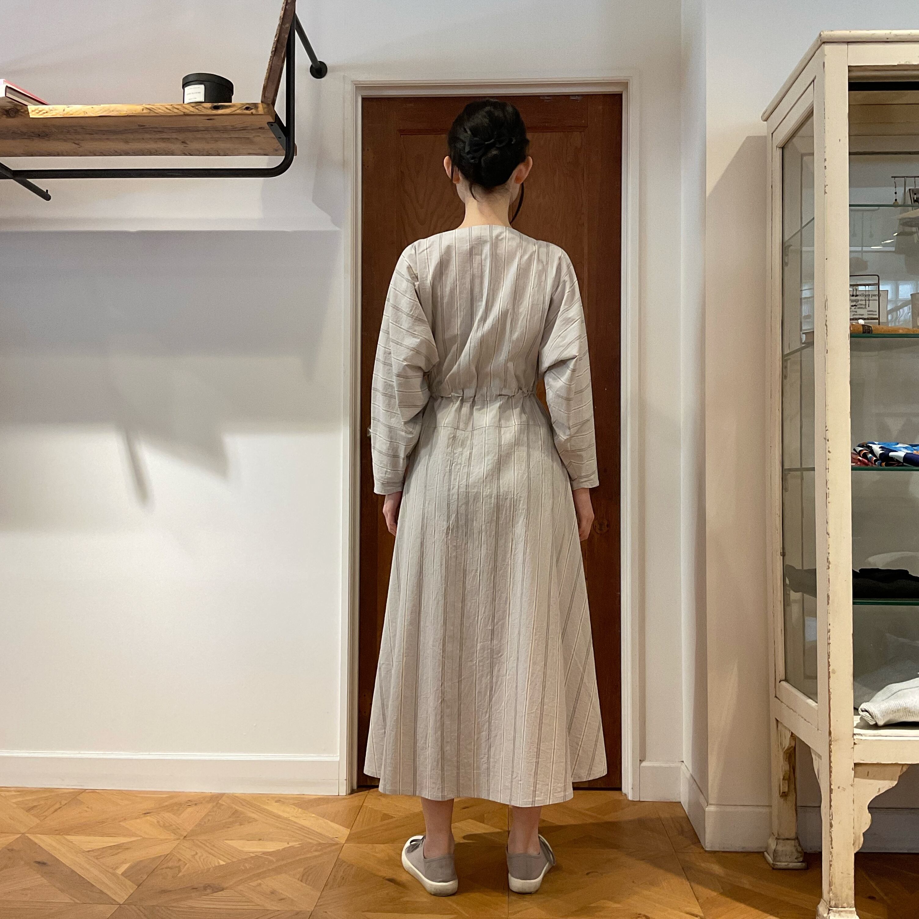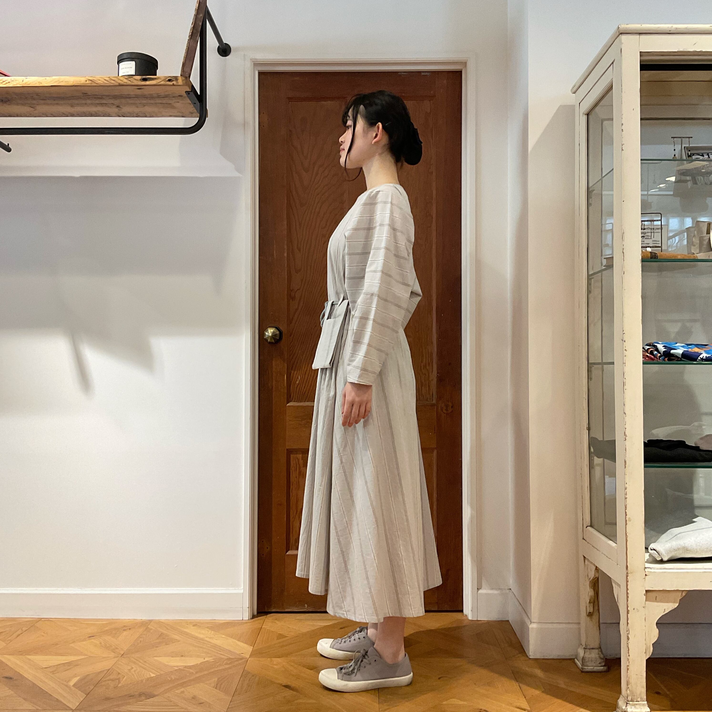 KOFTA 綿100% ヴィンテージ ストライプ ロングスリーブ ワンピース