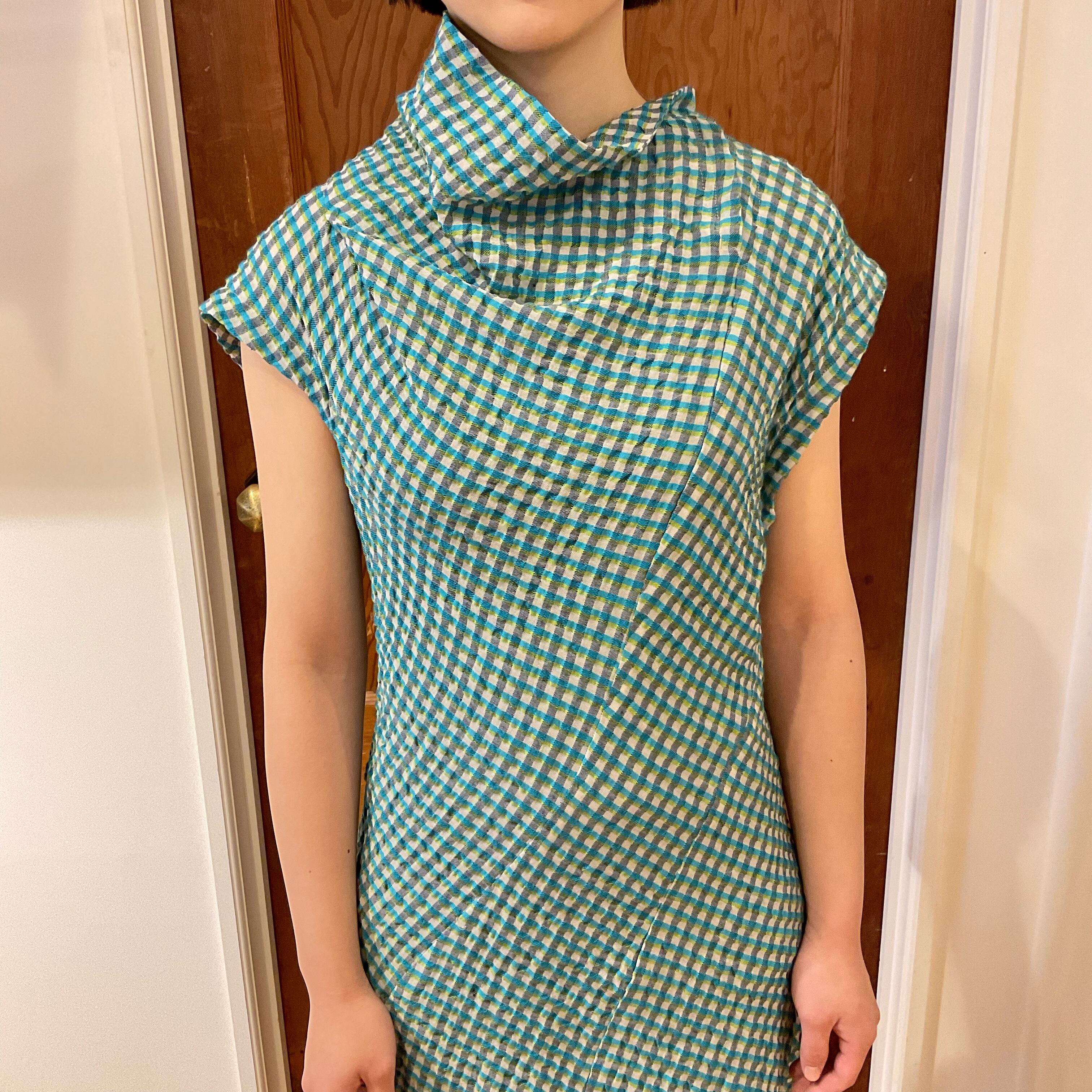 意匠に凝ったこちらのマルチカラーのチェックは表面に凹凸があり、肌離れがよく、