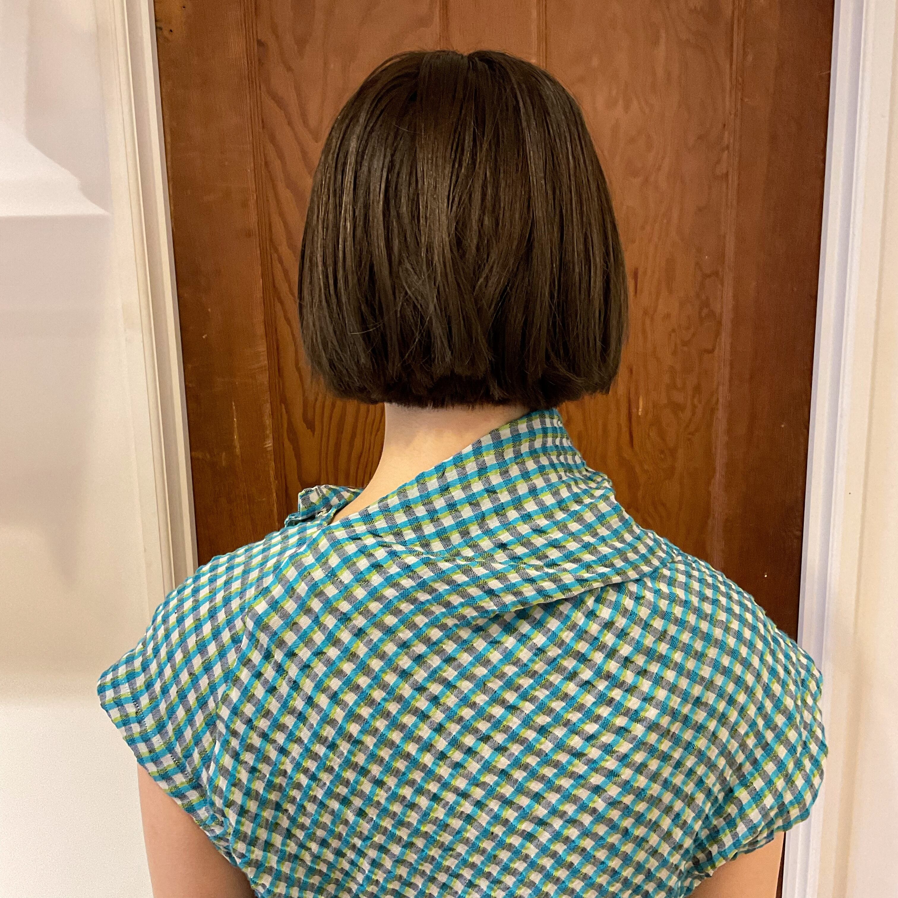 左肩スナップボタンあき。左脇コンシールファスナーあき。