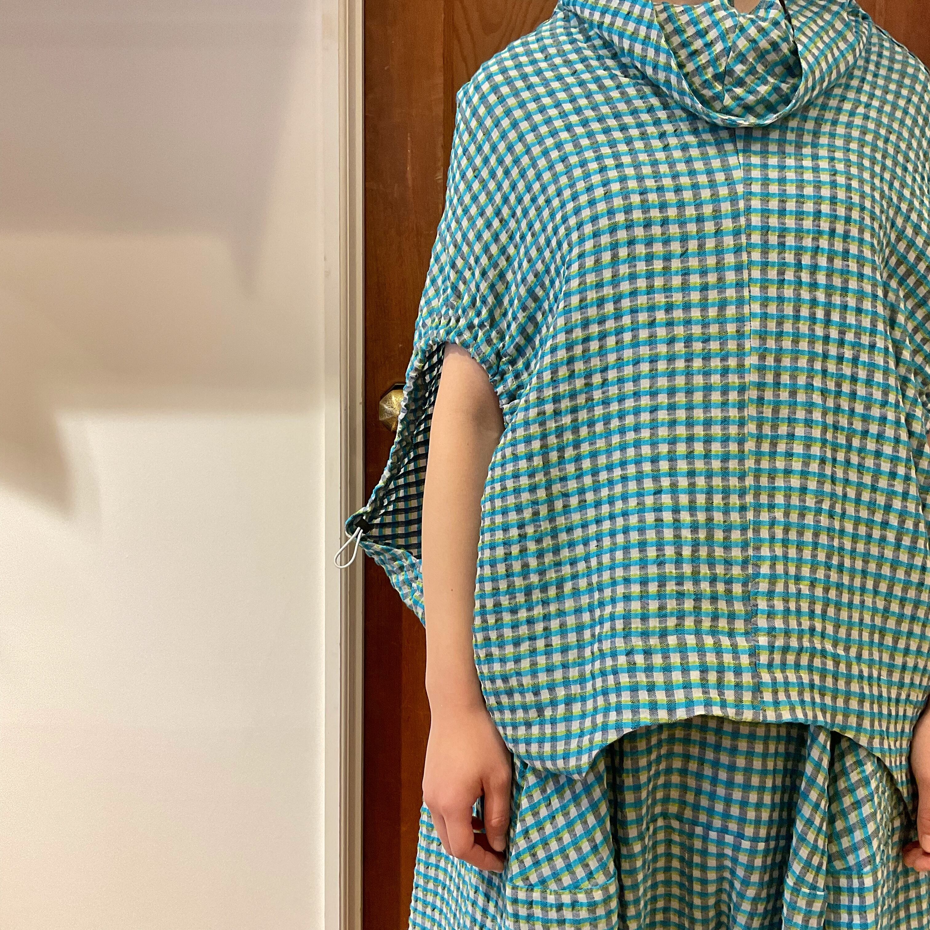意匠に凝ったこちらのマルチカラーのチェックは表面に凹凸があり、肌離れがよく、