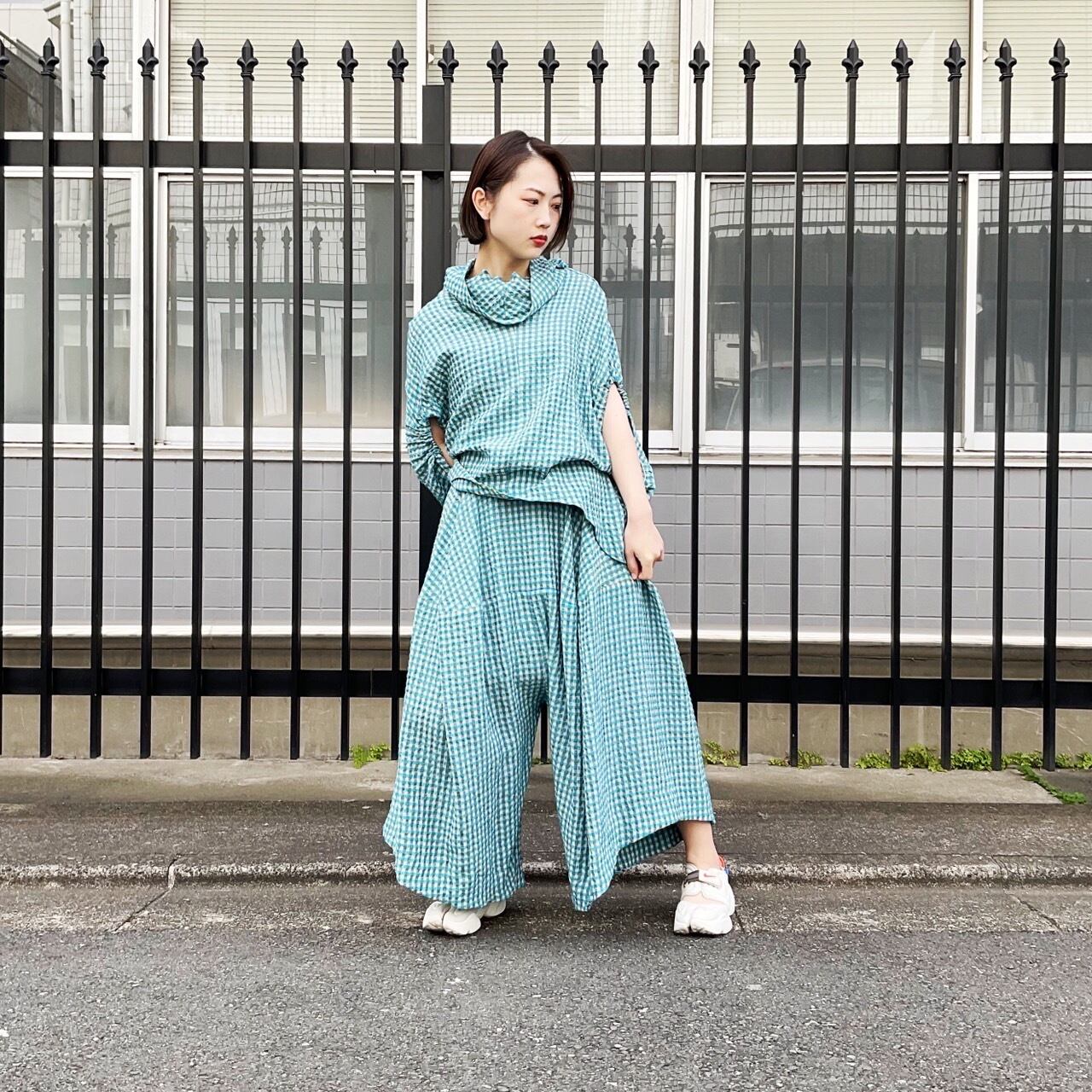 ブラウスもパンツもデザインがとてもユニークなのに、セットアップ特有の硬さを感じさせない、でもとっても優雅な雰囲気