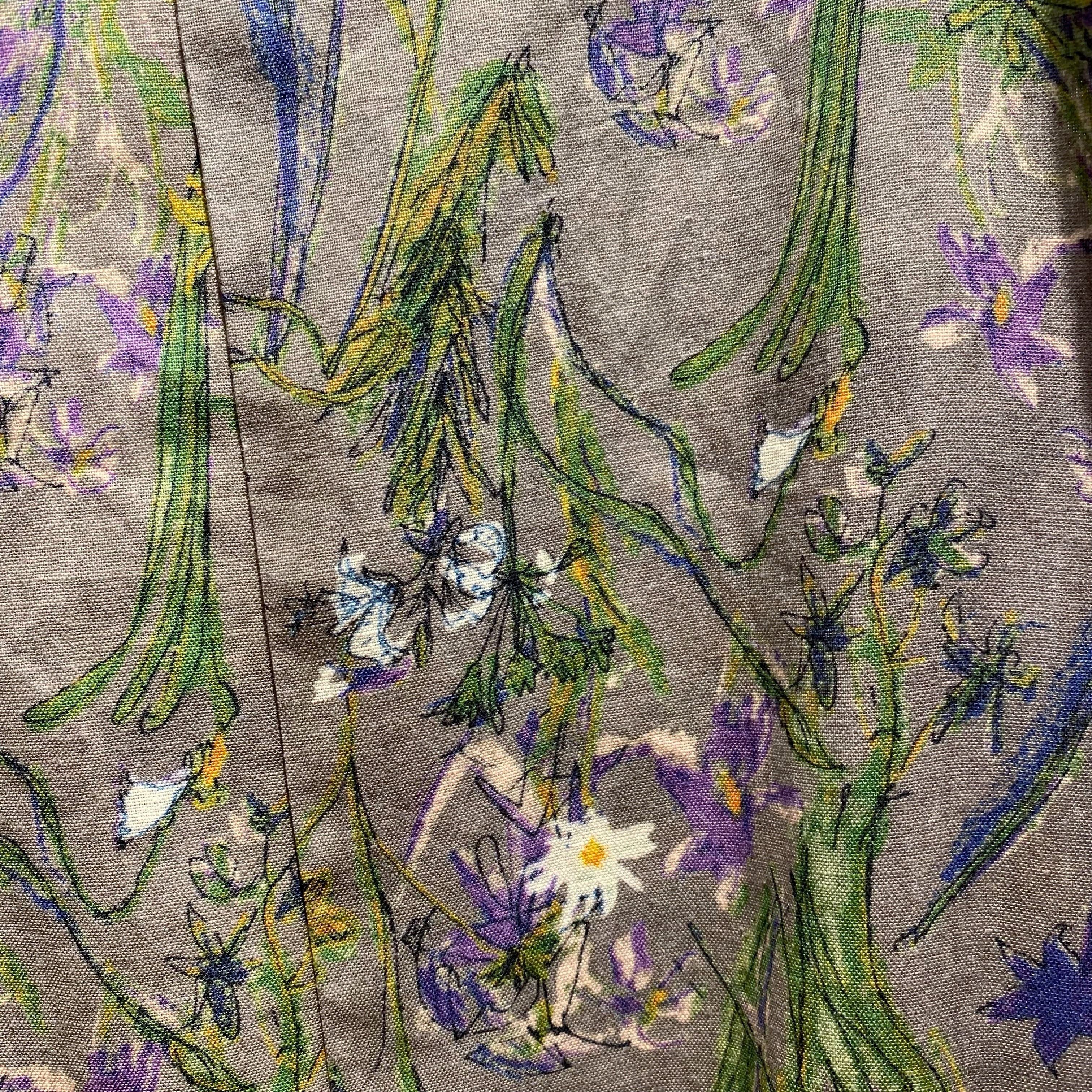 ベースのシックなグレーに映える鮮やかなボタニカルプリントで、春の気分を表現しています。ご家庭での手洗い洗濯が可能