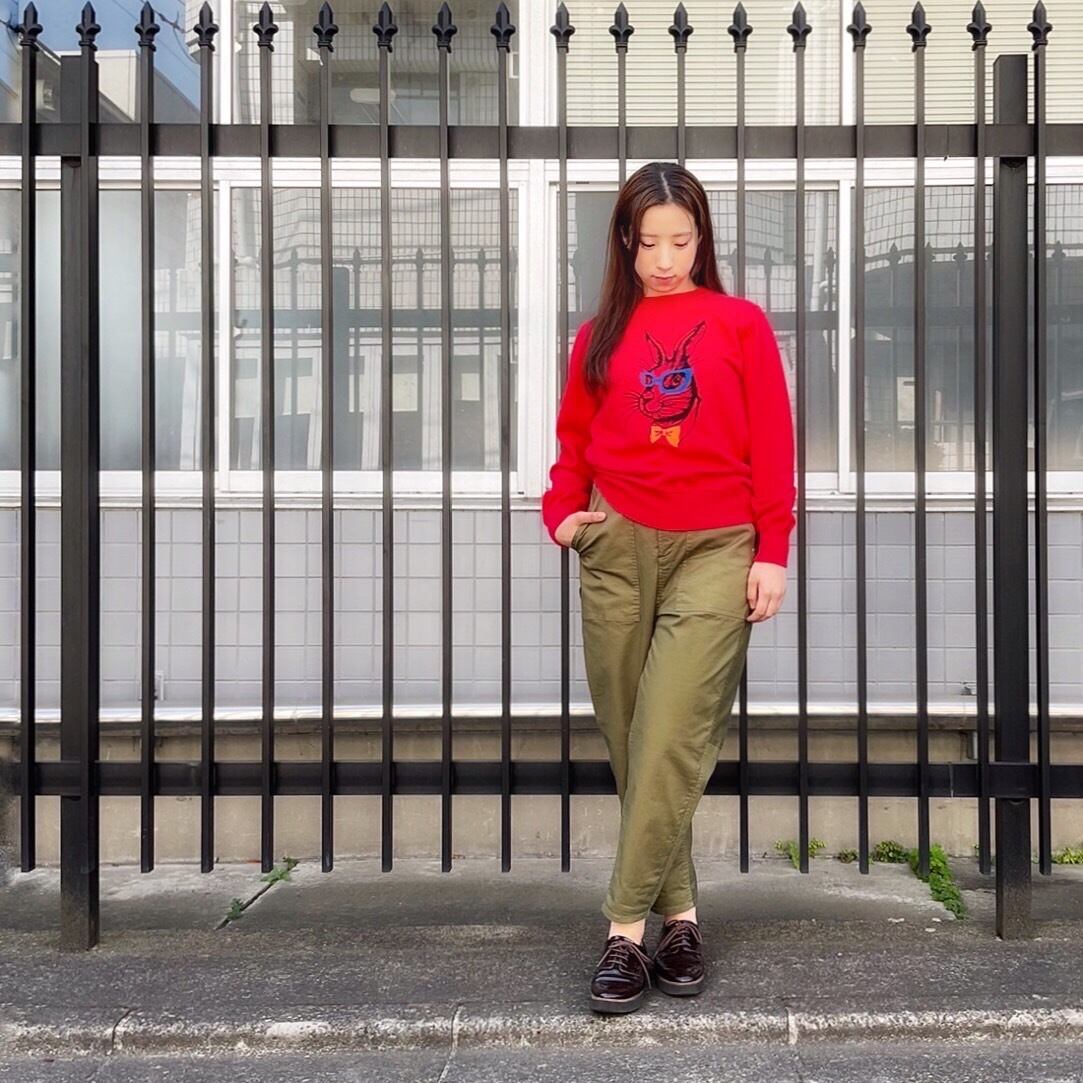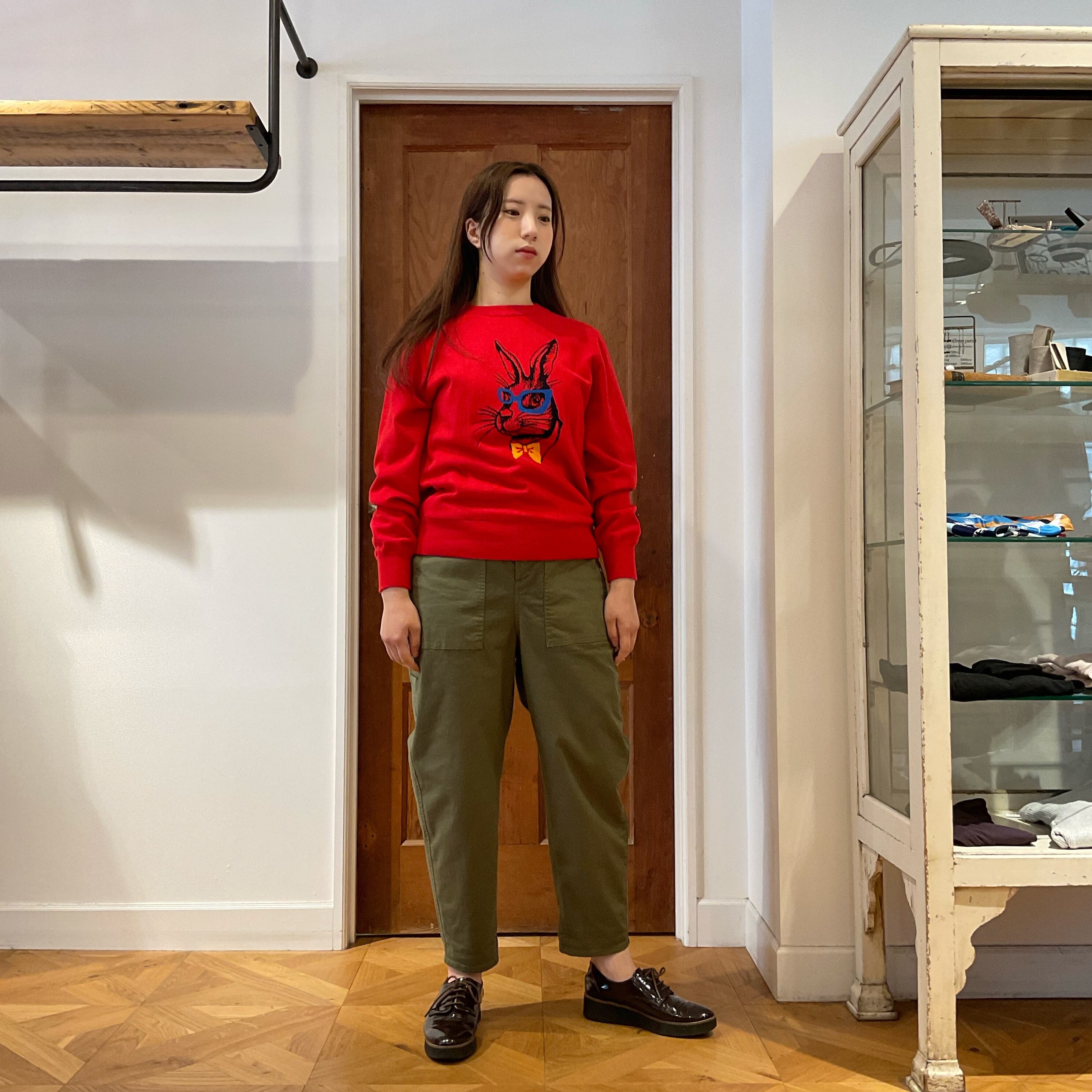 Basic pullover which the rabbit is woven into the knit.