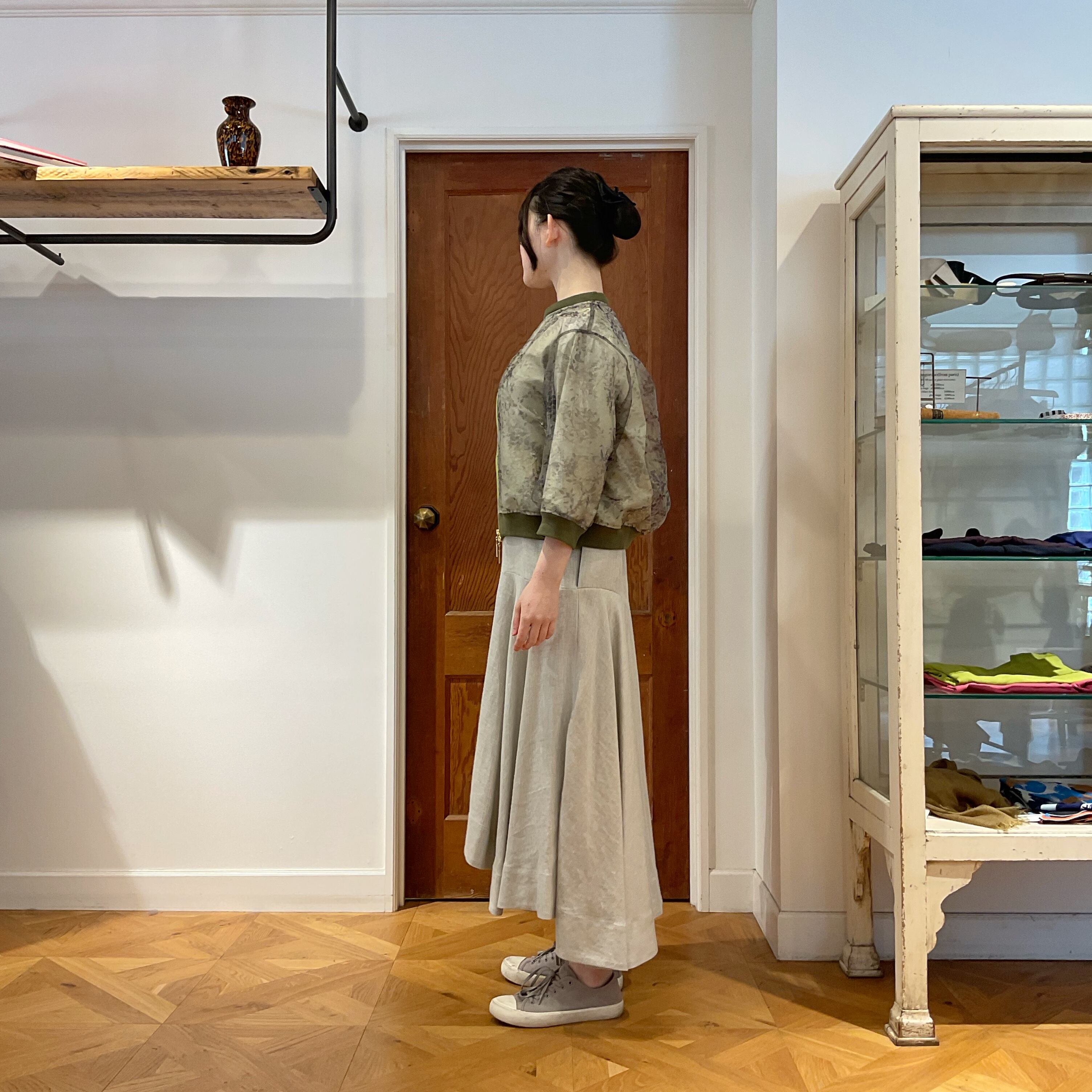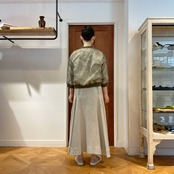 一見した形や色使いは、とても日本人的な雰囲気を感じるのですが、実際に着ると思いのほか華奢に見せるテクニックに、パリの空気も感じます。