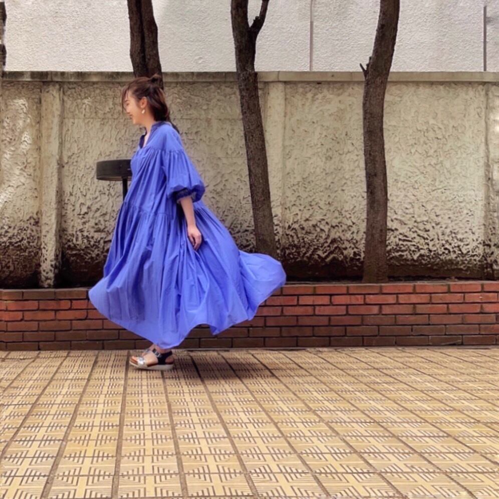 Thomas Magpie cotton and silk tiered dress volume sleeve frill neck ギャザーワンピース コットンシルク 長袖 真夏対応