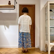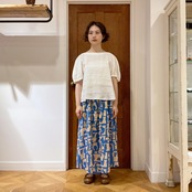 白のワイドパンツとのコーデはとっても夏らしく涼し気。
