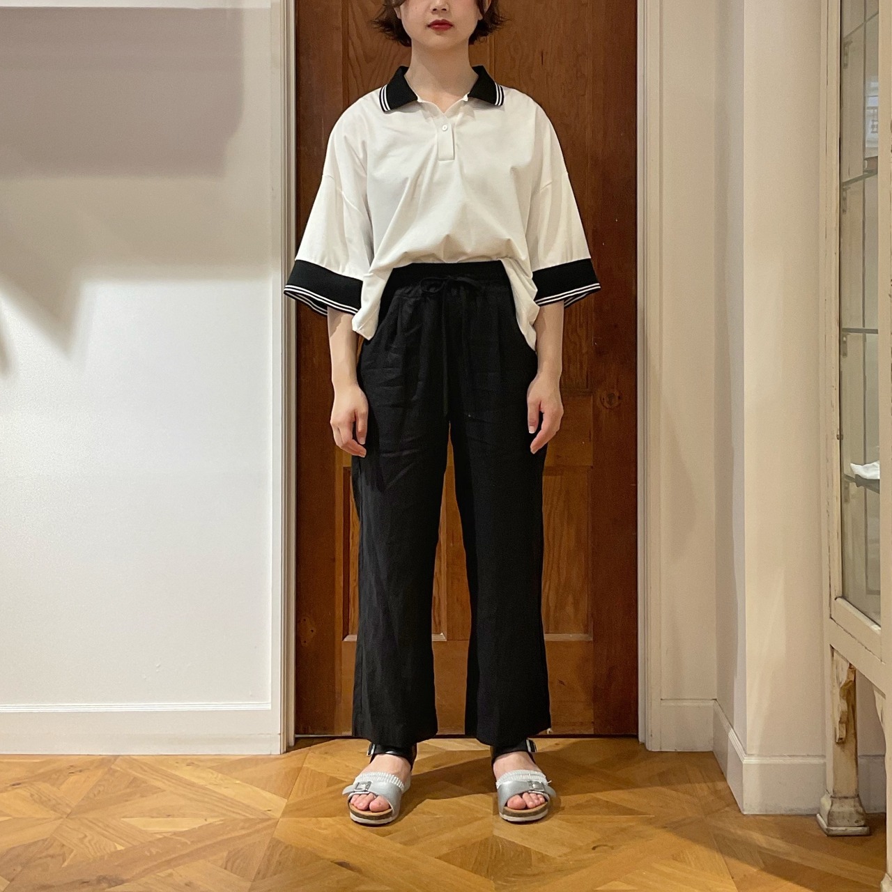 幅広シルエットですが、小柄な方は前をちょっとインして、長身の方はアウトでフレアスカートやワイドパンツとのコーデが楽しめます。