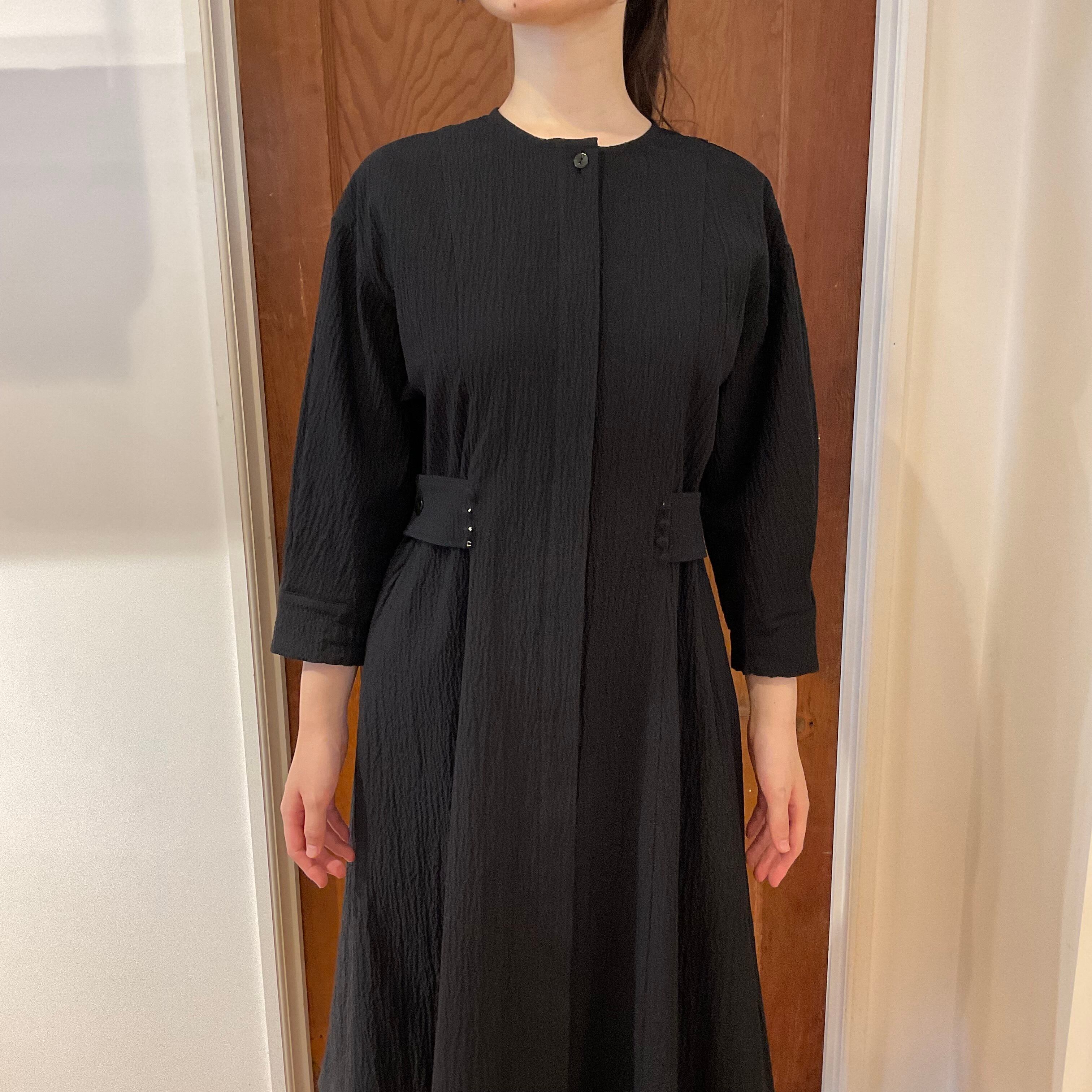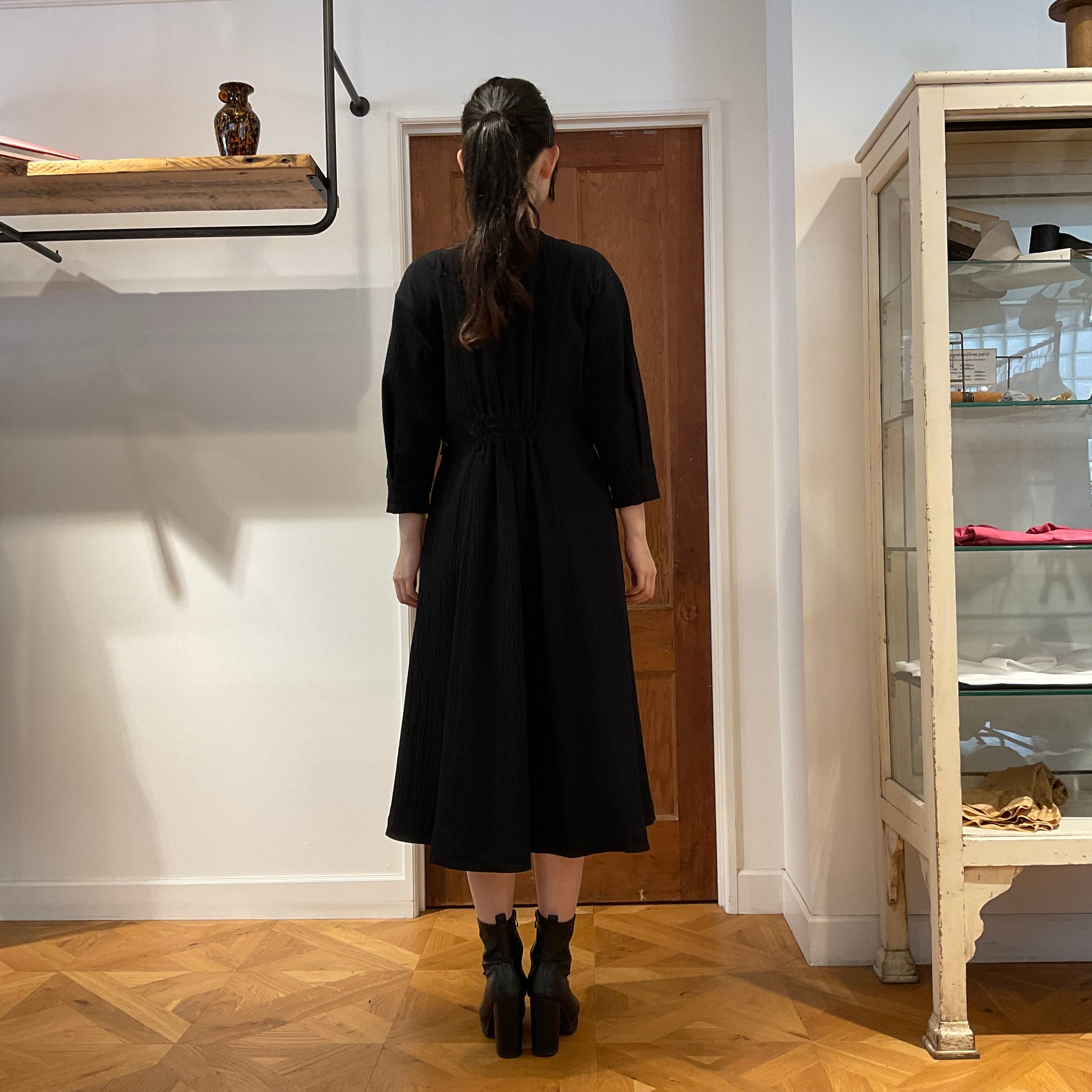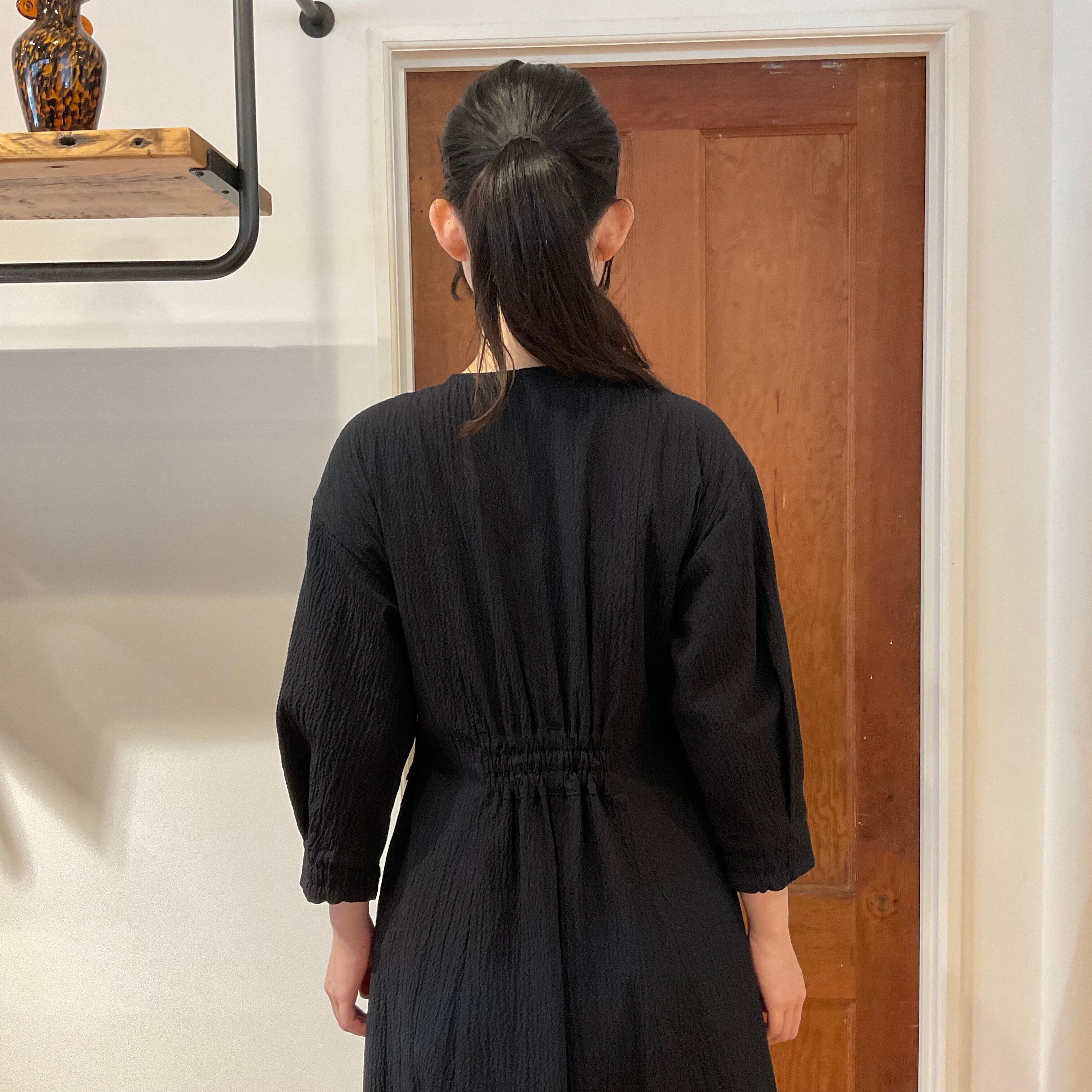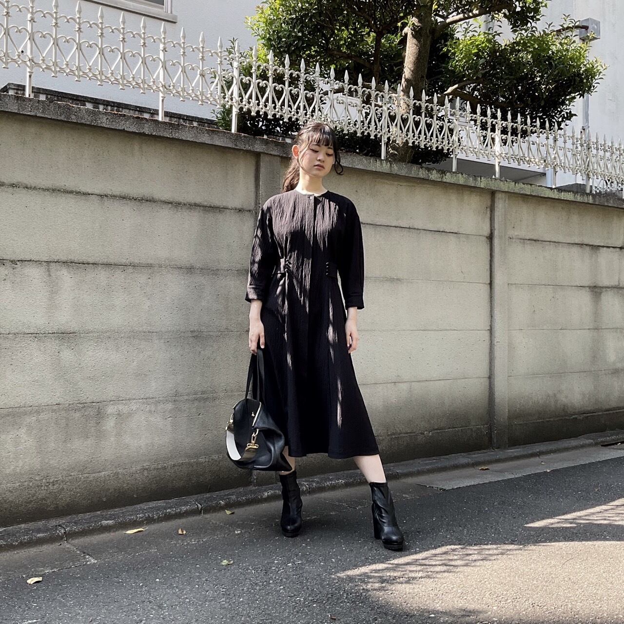 一見した形や色使いは、とても日本人的な雰囲気を感じるのですが、実際に着ると思いのほか華奢に見せるテクニックに、パリの空気も感じます。
