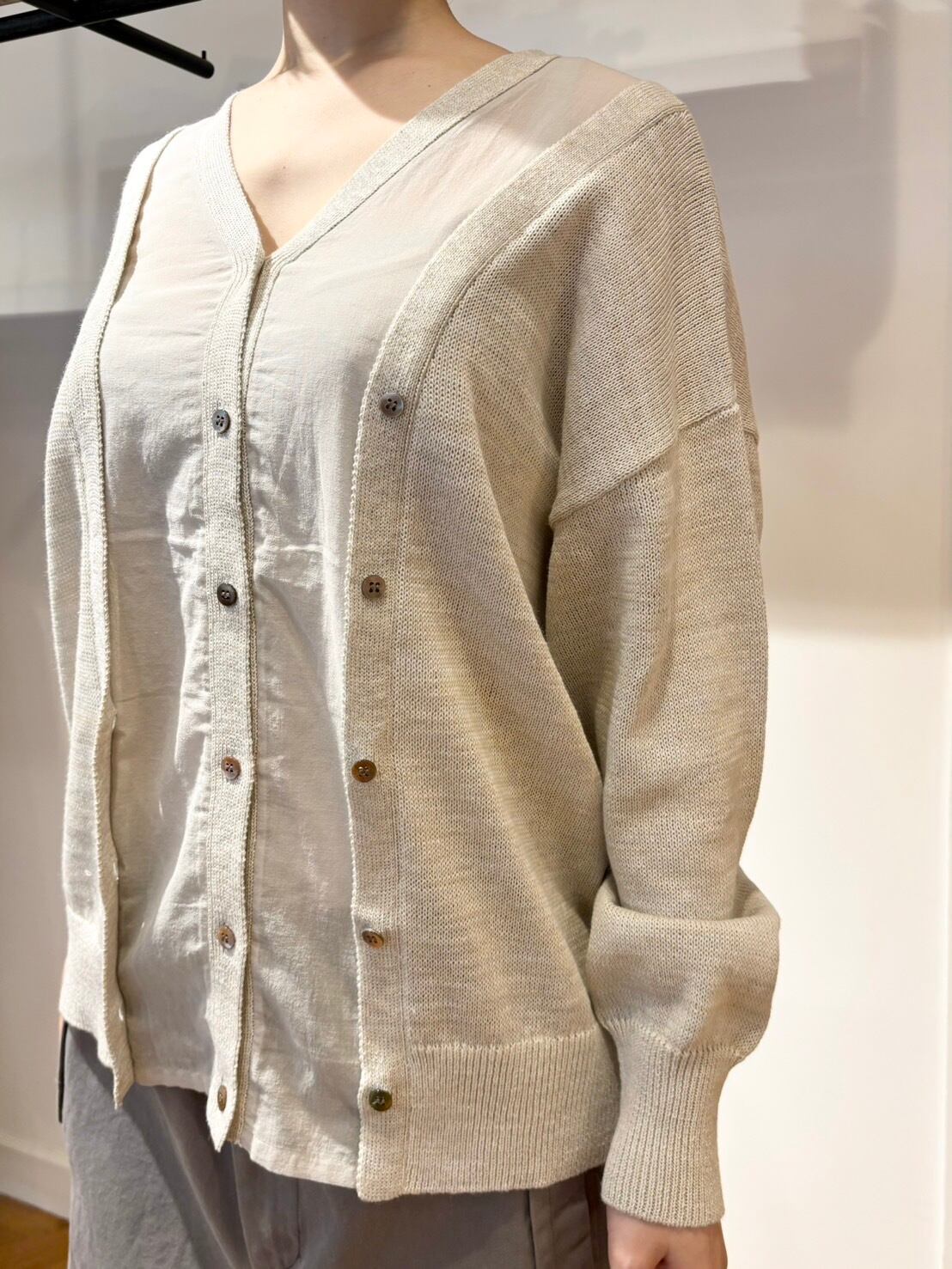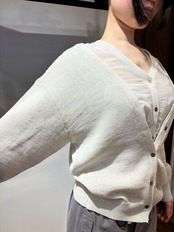 シフォンの透け感と、少し甘めに編まれ麻のシャリシャリ感を持つニット地が、コーデに清涼感をプラス。