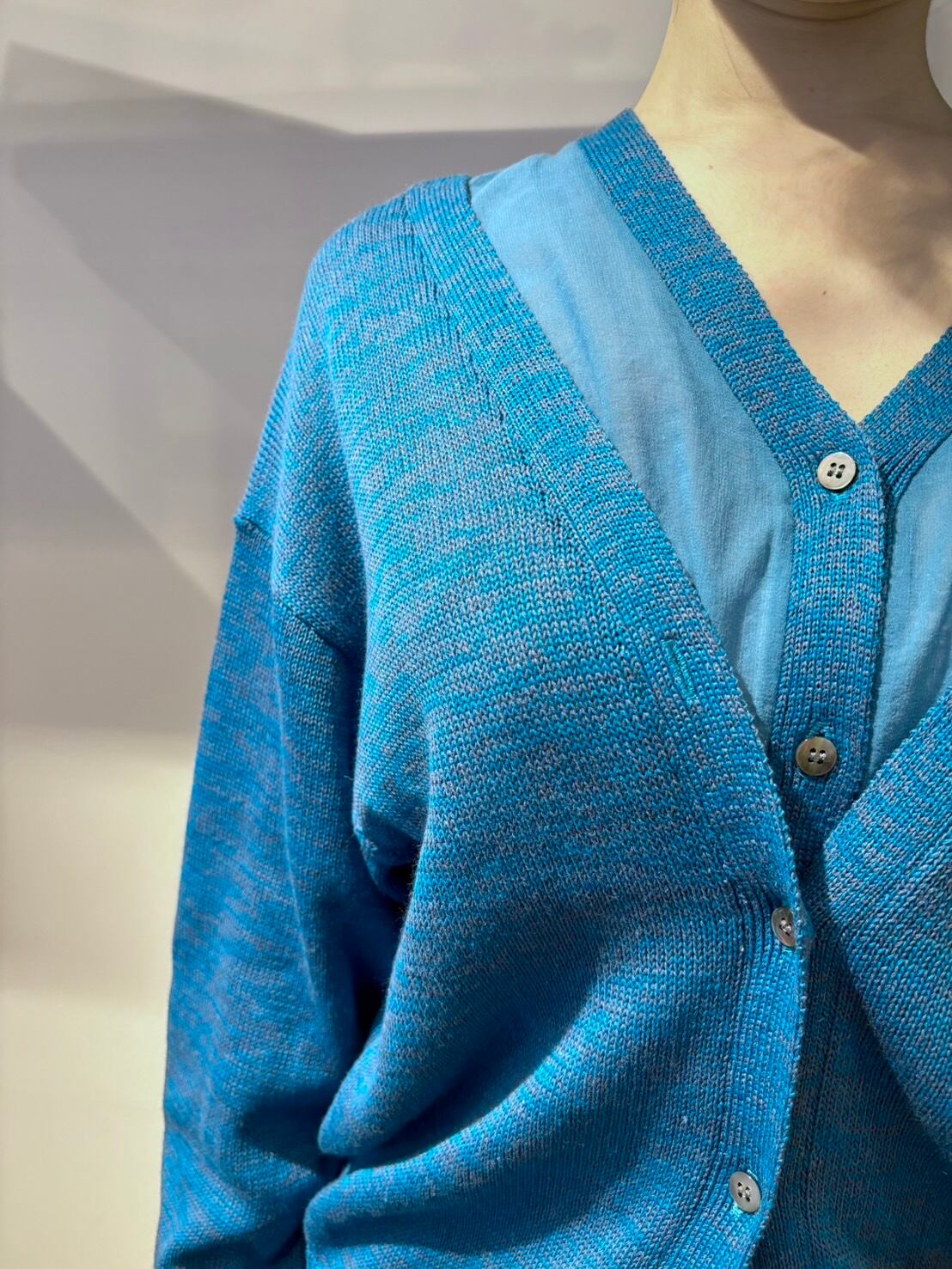 薄手のシフォンにニットカーデをレイヤードしたかの様なデザインで、前立てが2列あるダブルの仕様が特徴.